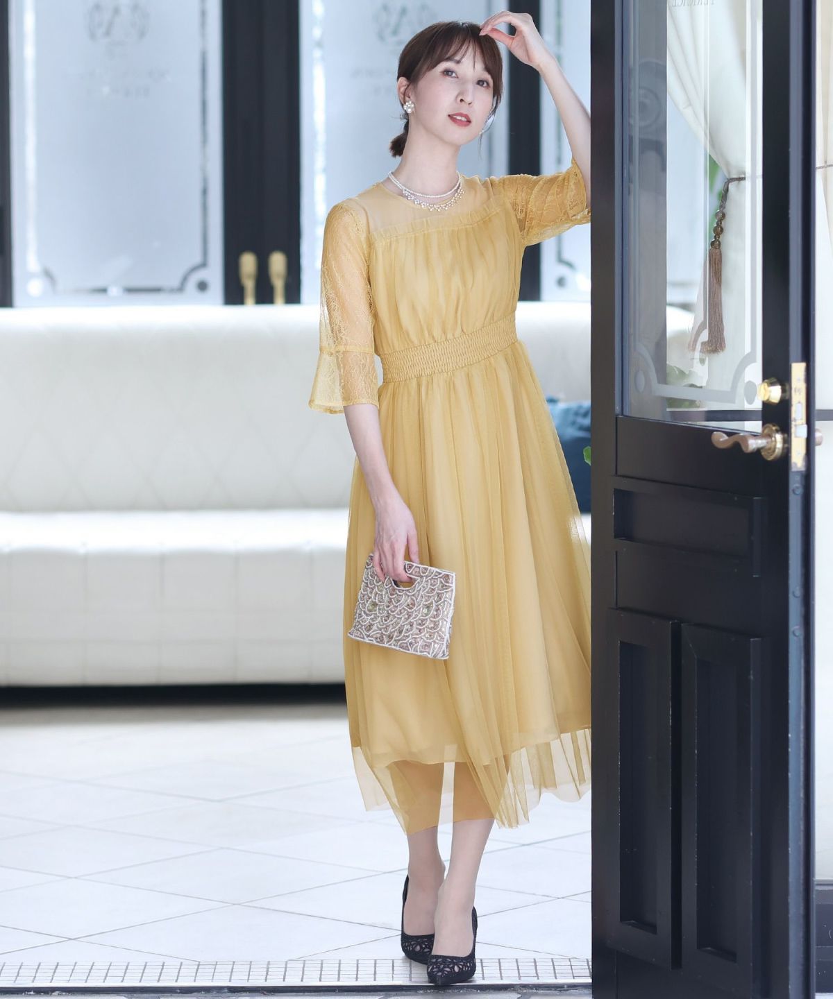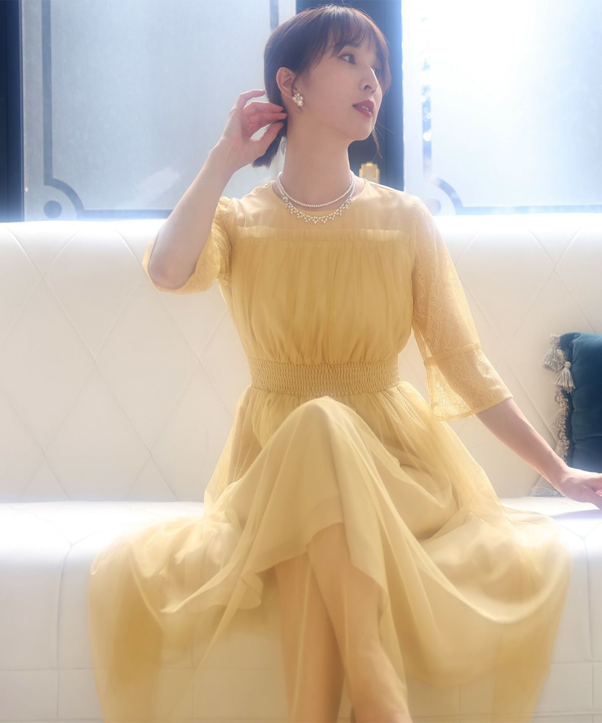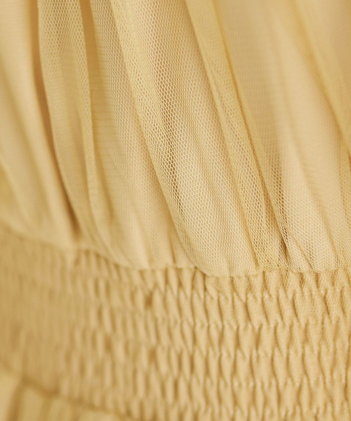チュール生地とシフォン生地で上品な透け感がありながら、柔らかくストレスフリーで着心地抜群です。
