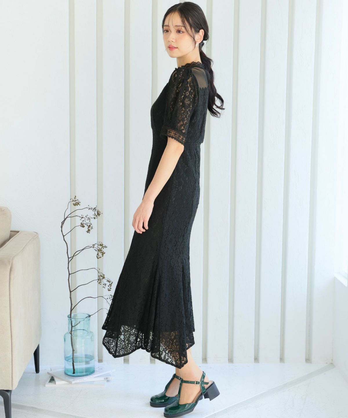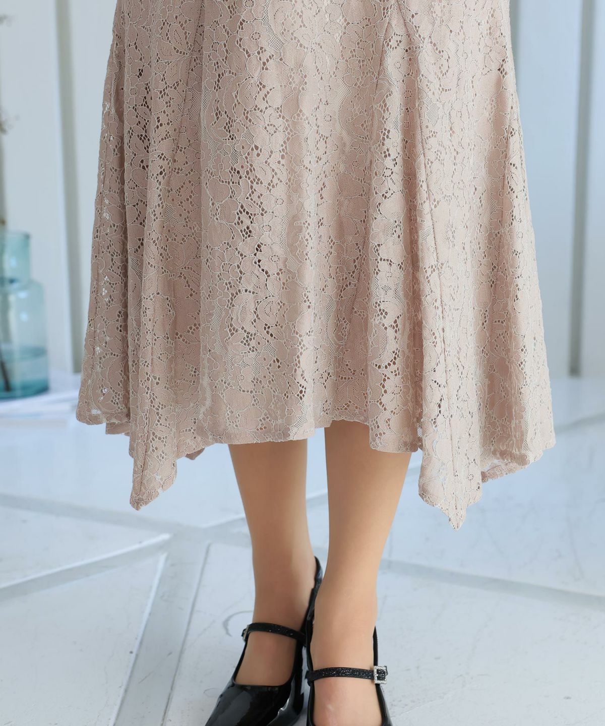 歩くたびに裾のレースがひらりと美しく揺れてくれます