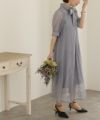 ■素材総レースなドレスとリボンが華やかなハイネックワンピース。
