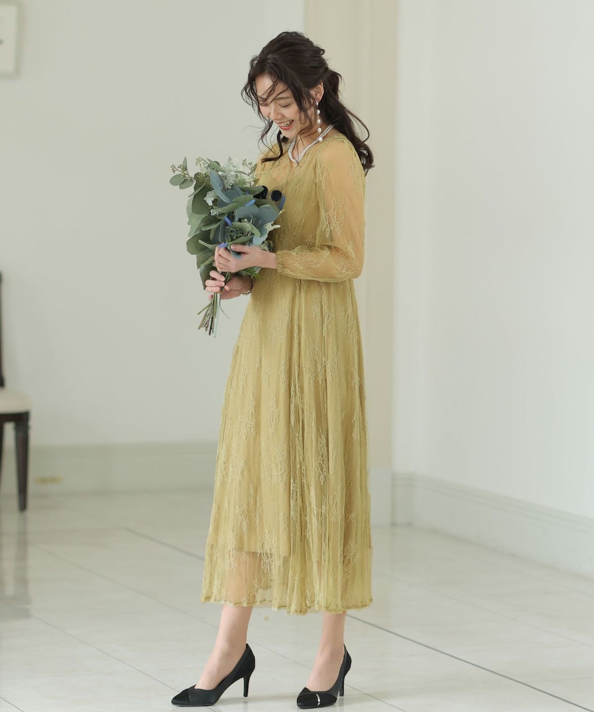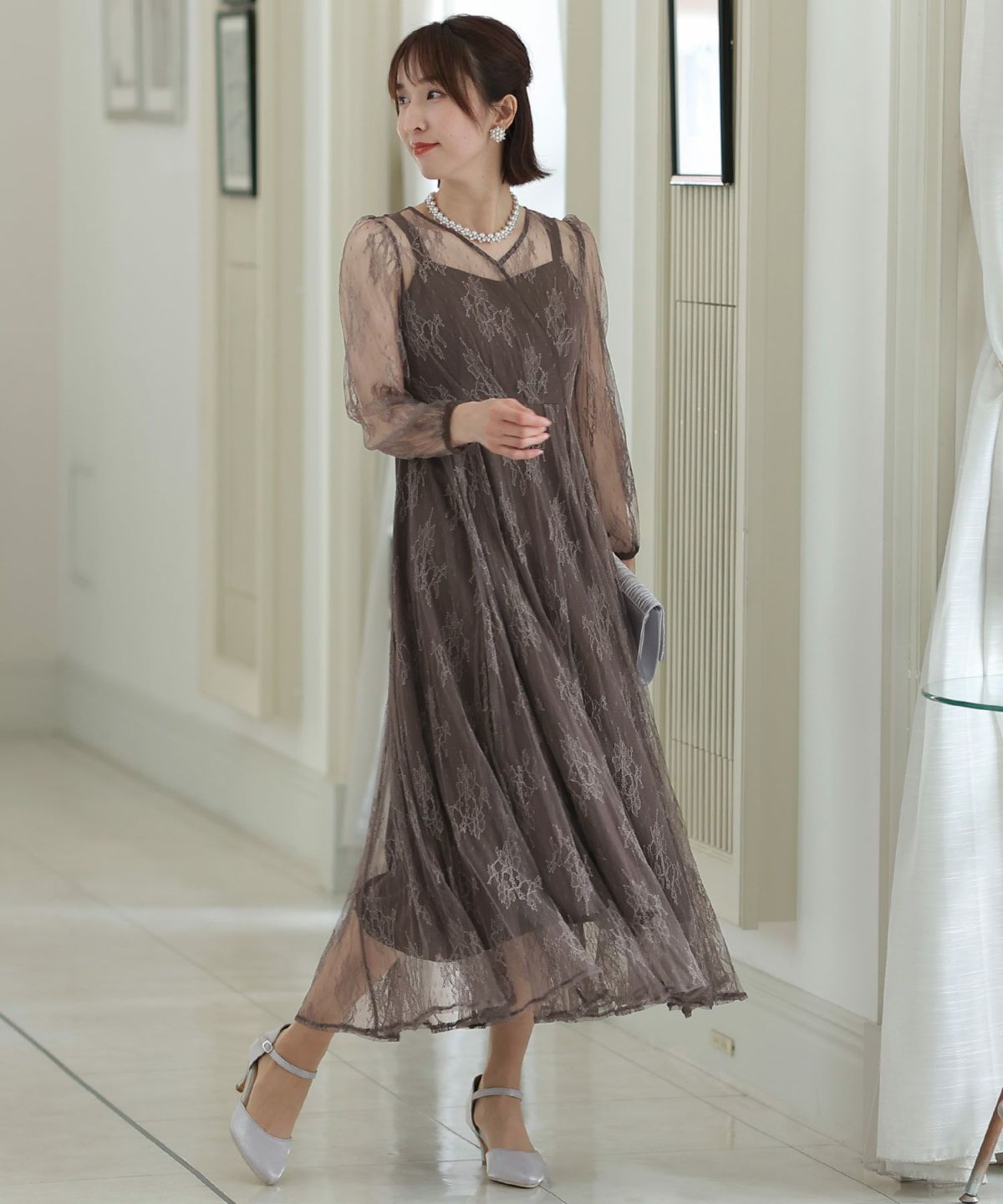 繊細に靡くレースが透明感引き出すシアーワンピース。