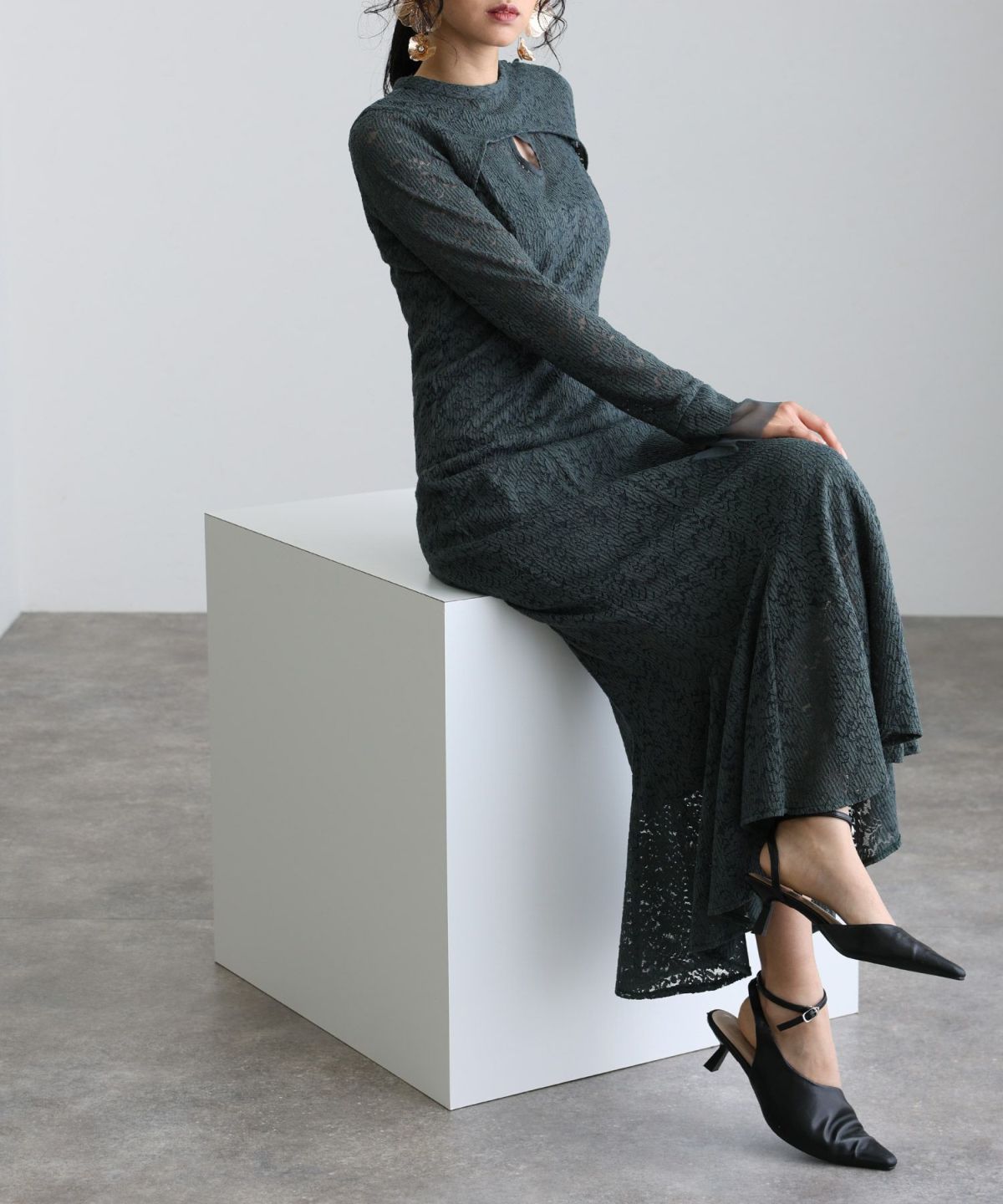 ワンピース裏地にはストレッチのないサテン生地を採用。