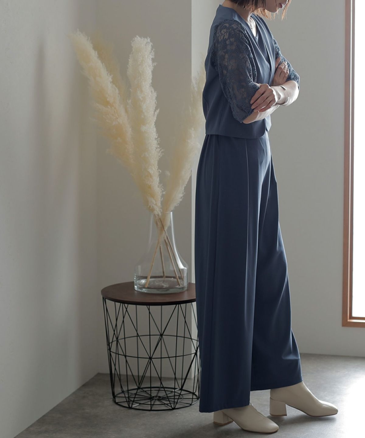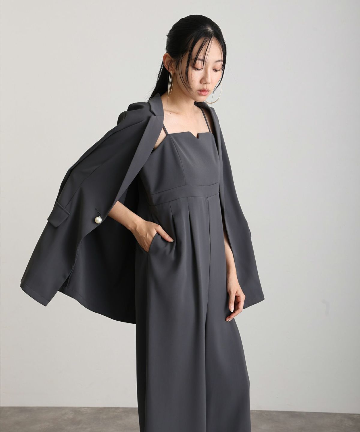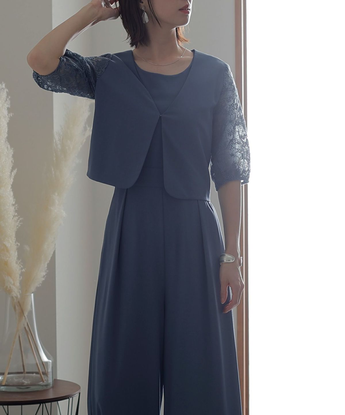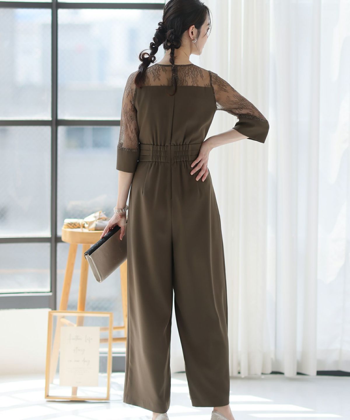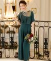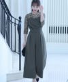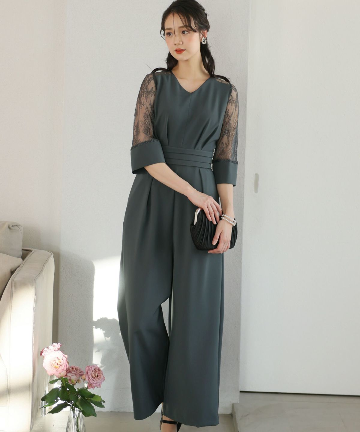 パンツドレスならではのモダンな雰囲気と、フォーマルにふさわしい上品さを兼ね備え、結婚式や披露宴、季節を問わないお呼ばれシーンに最適です。