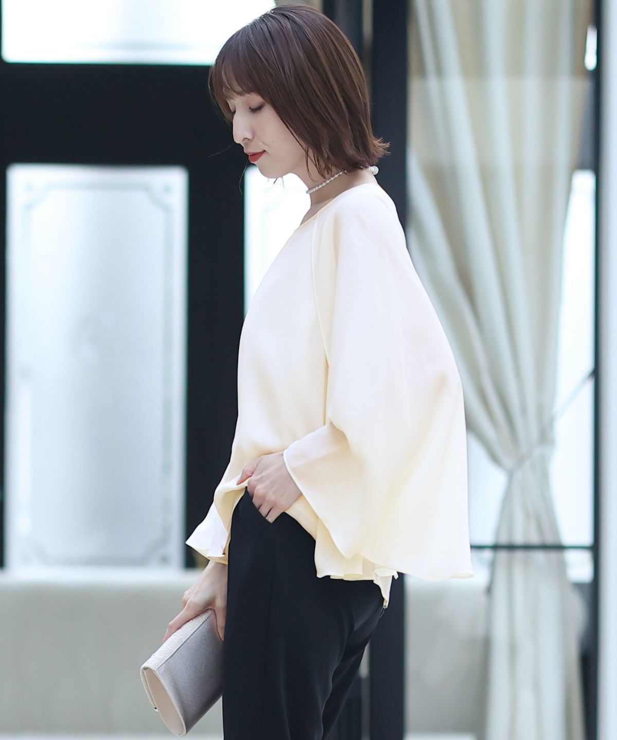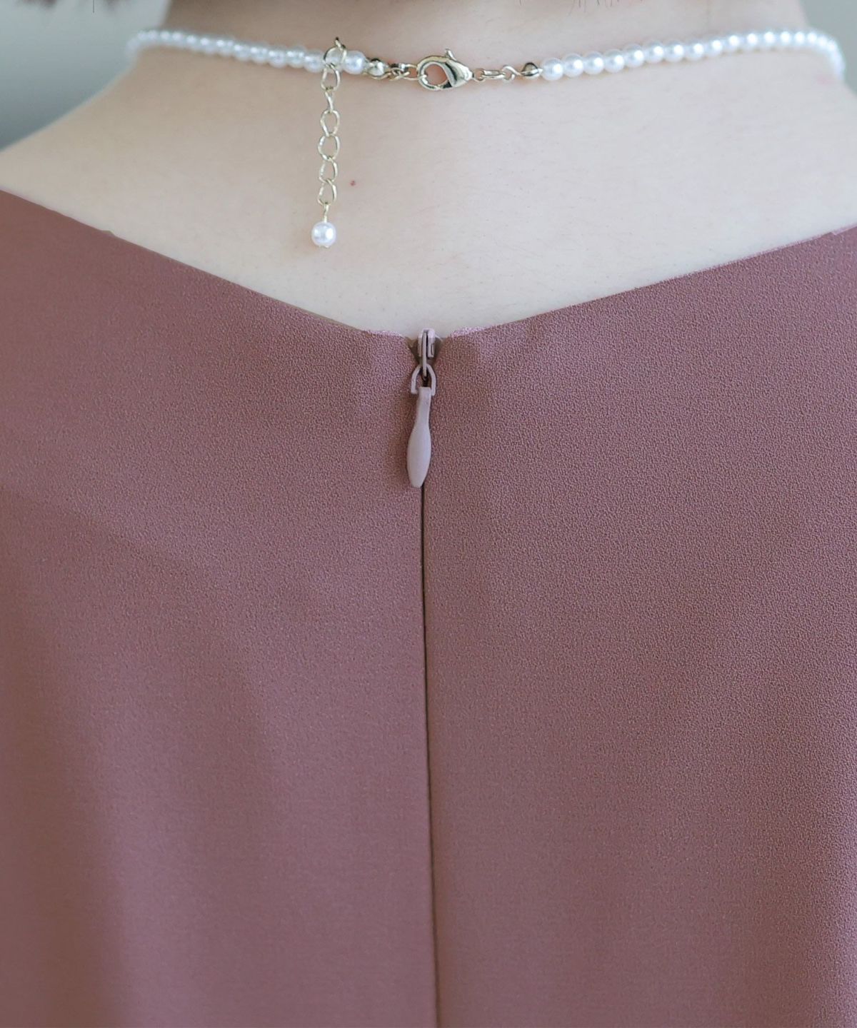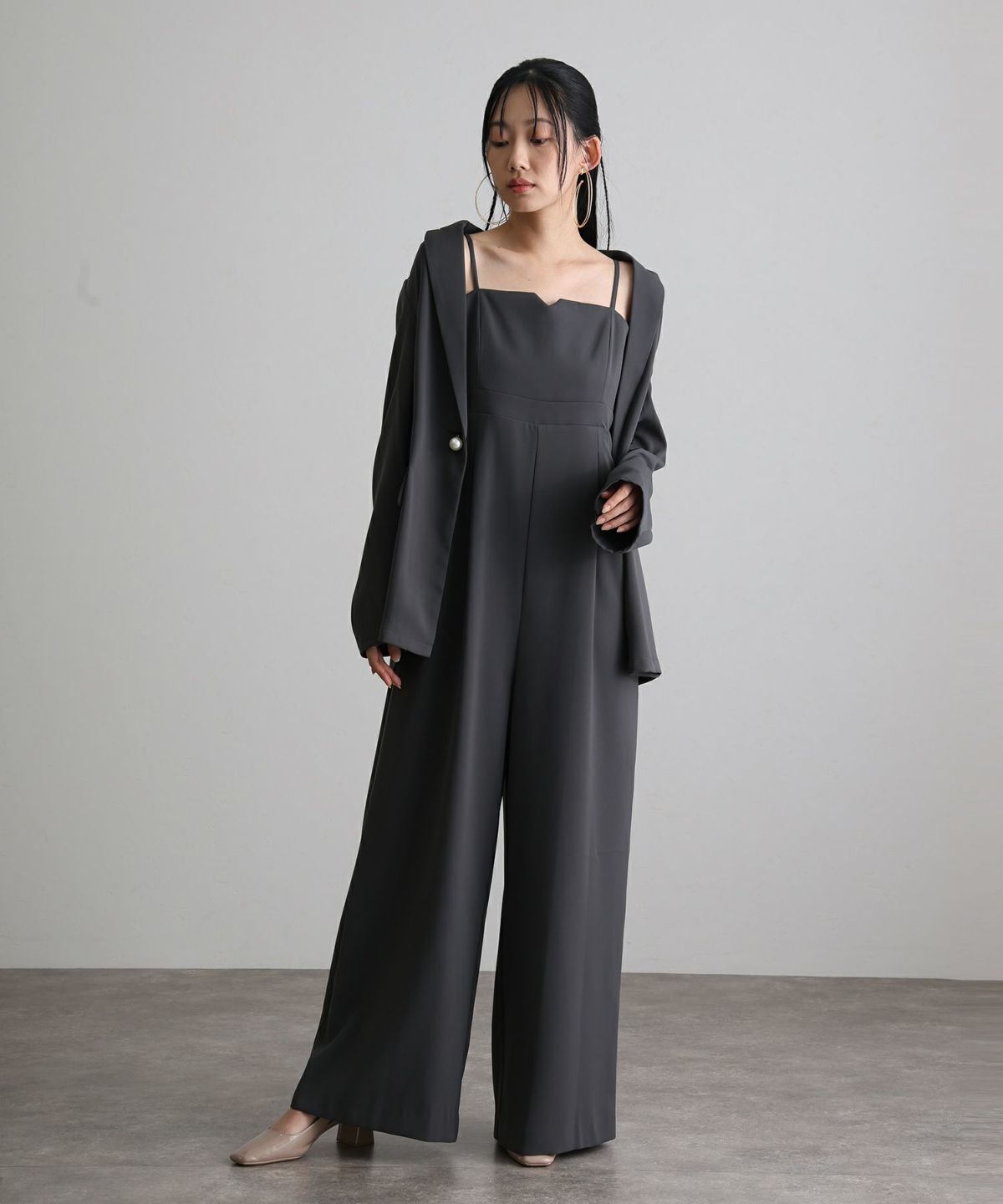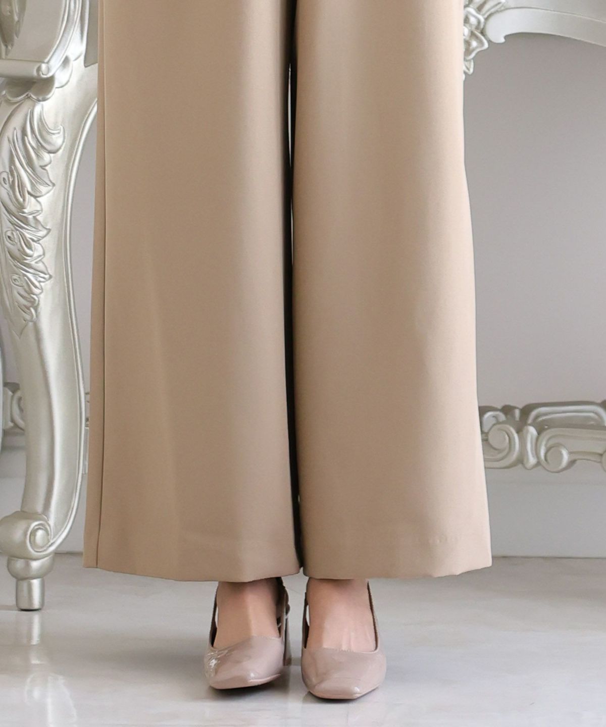 パンツドレスならではのモダンな雰囲気と、フォーマルにふさわしい上品さを兼ね備え、結婚式や披露宴、季節を問わないお呼ばれシーンに最適です。