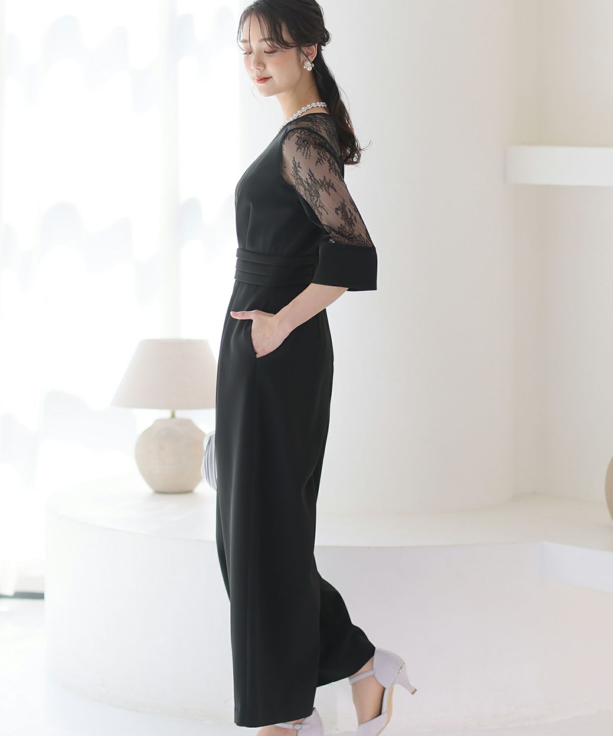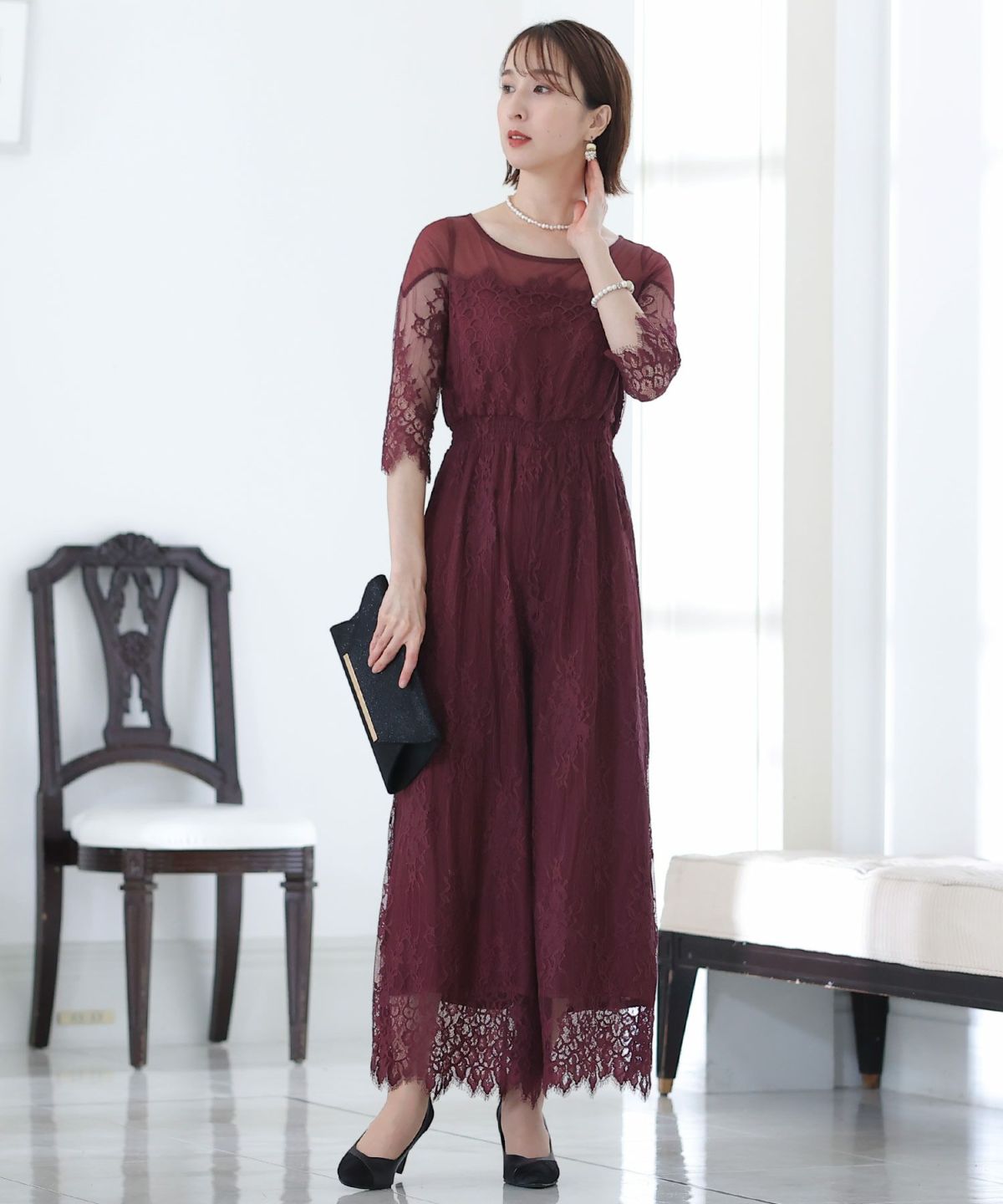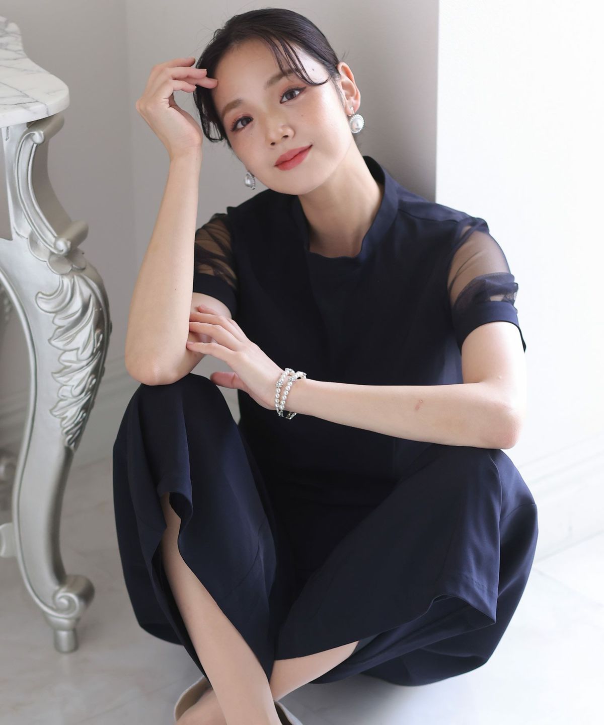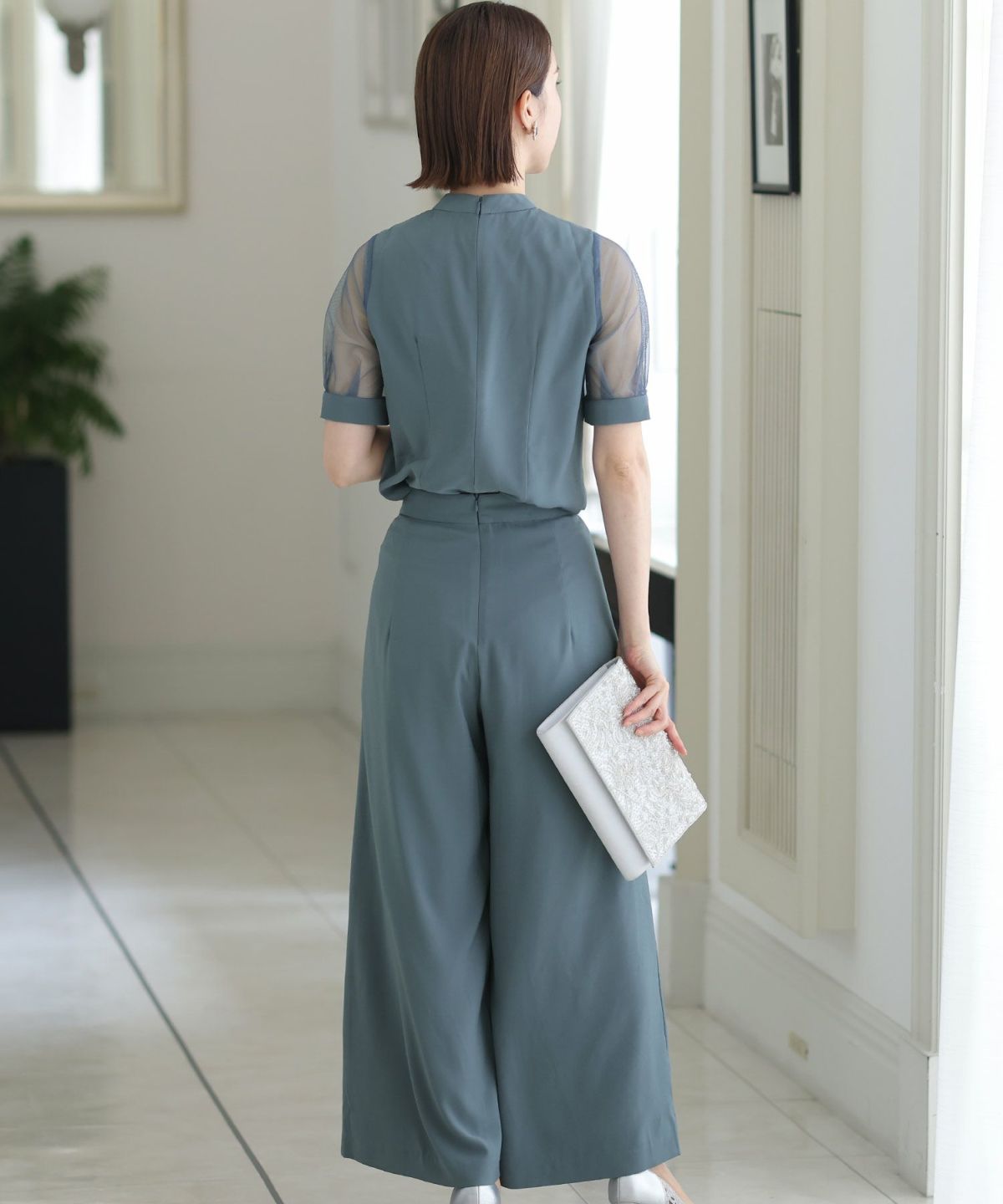 PourVous・atloのパンツドレスは、パーティードレスとしての華やかさと、上品なきちんと感を兼ね備えた一着。