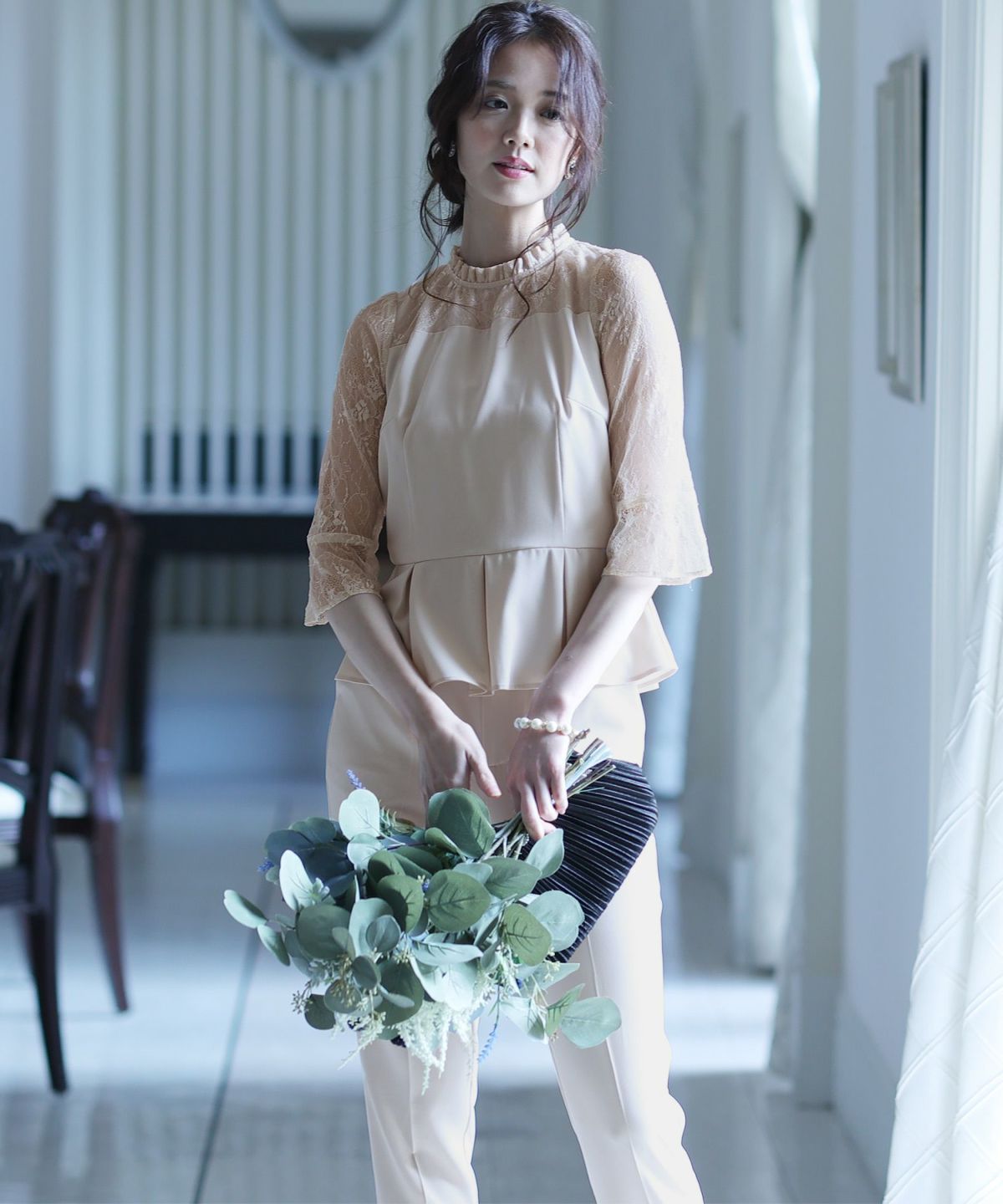 結婚式のパンツドレスならPourVous。上品な華やかさを纏(まと)うデザインから、セレモニースーツ風の洗練された