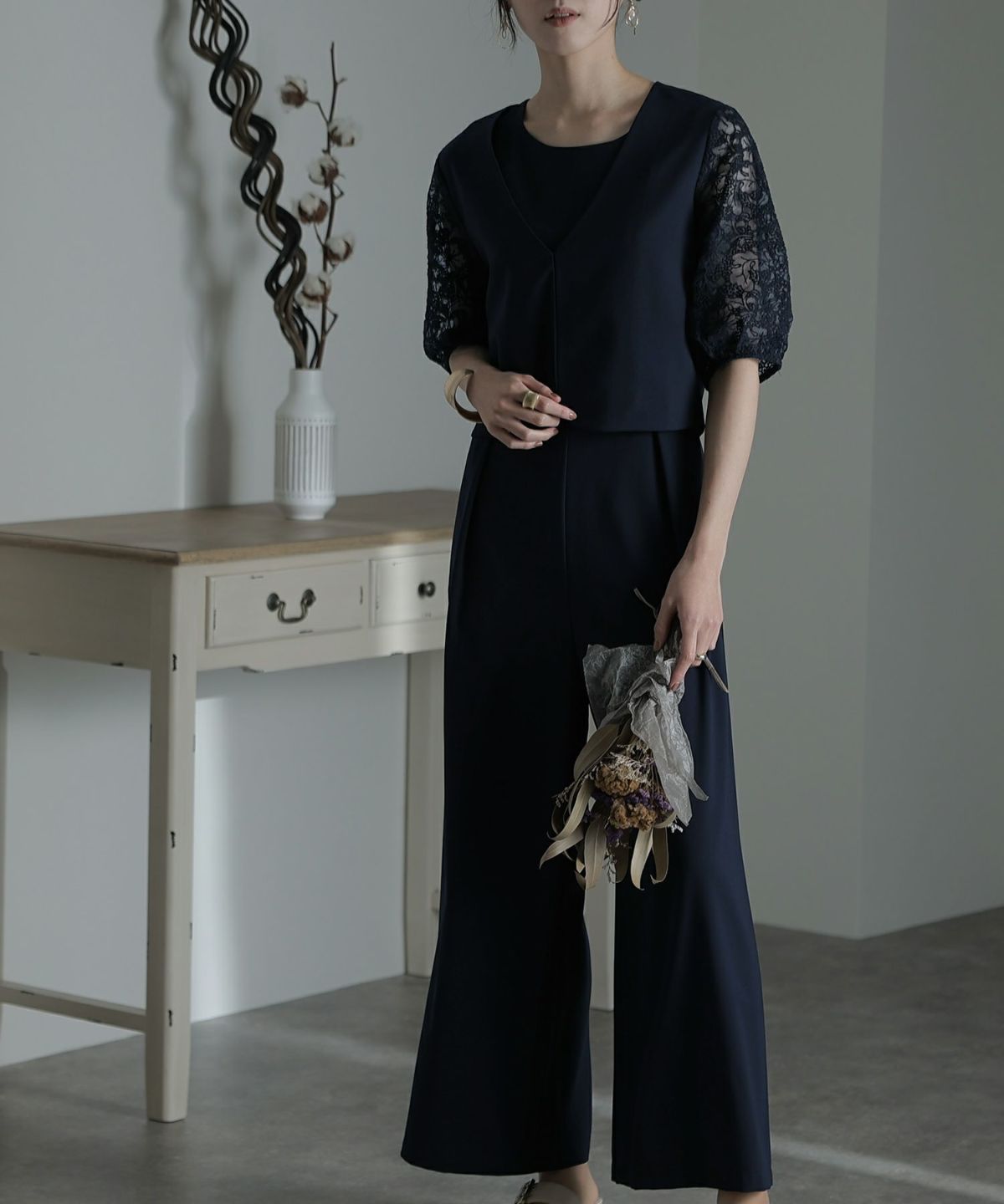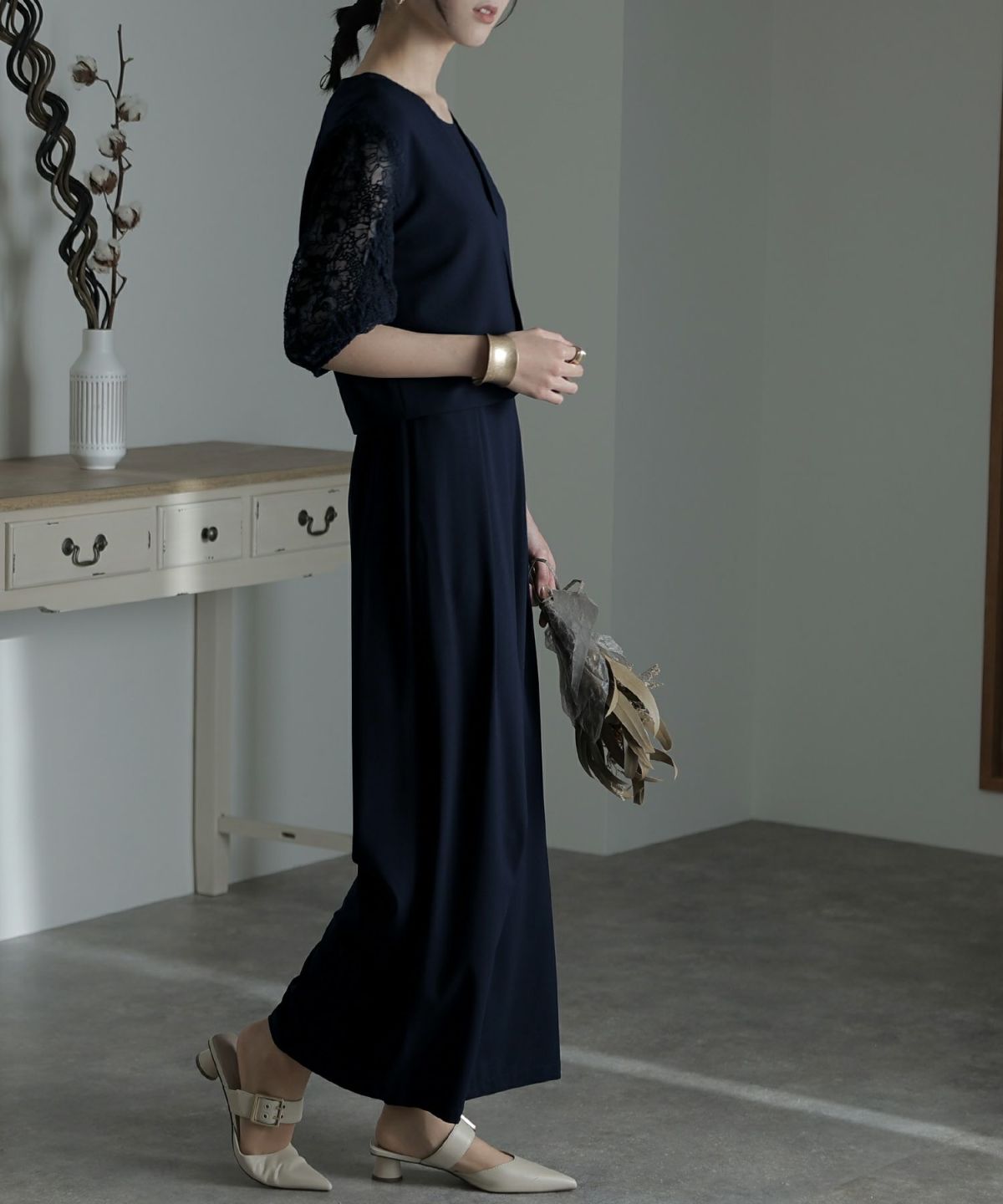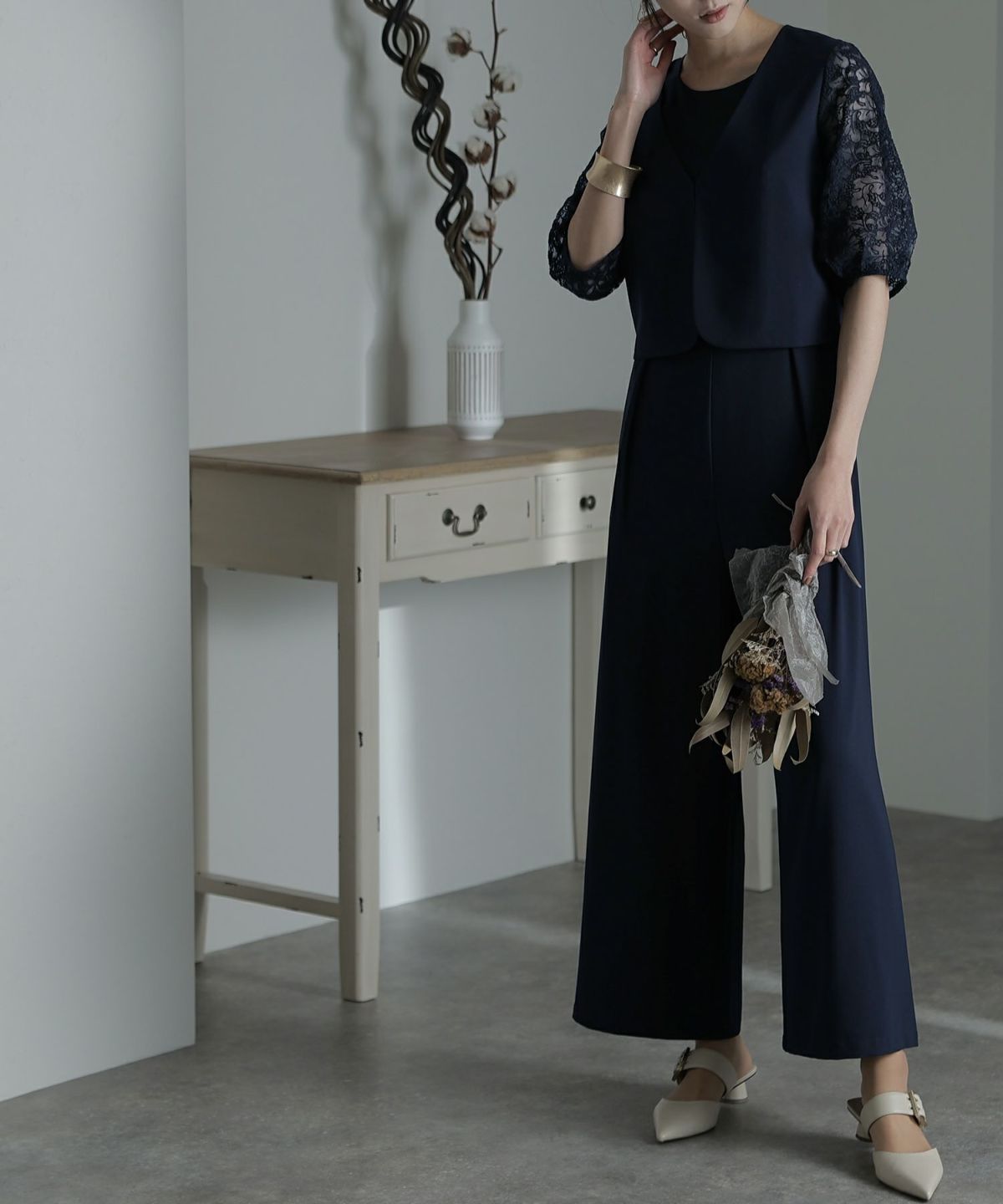 PourVous・atlo 人気パンツドレス。上品に華やぐ、結婚式でもパーティーでも映える、動きやすさと美しさを両立。