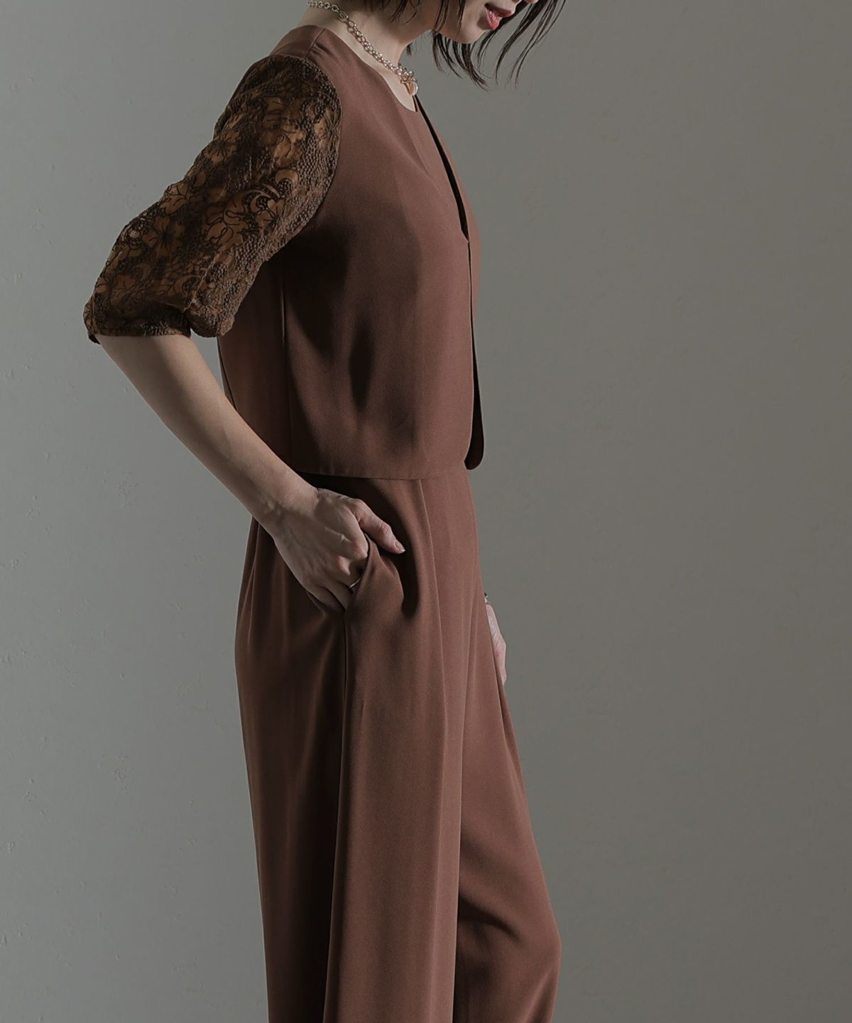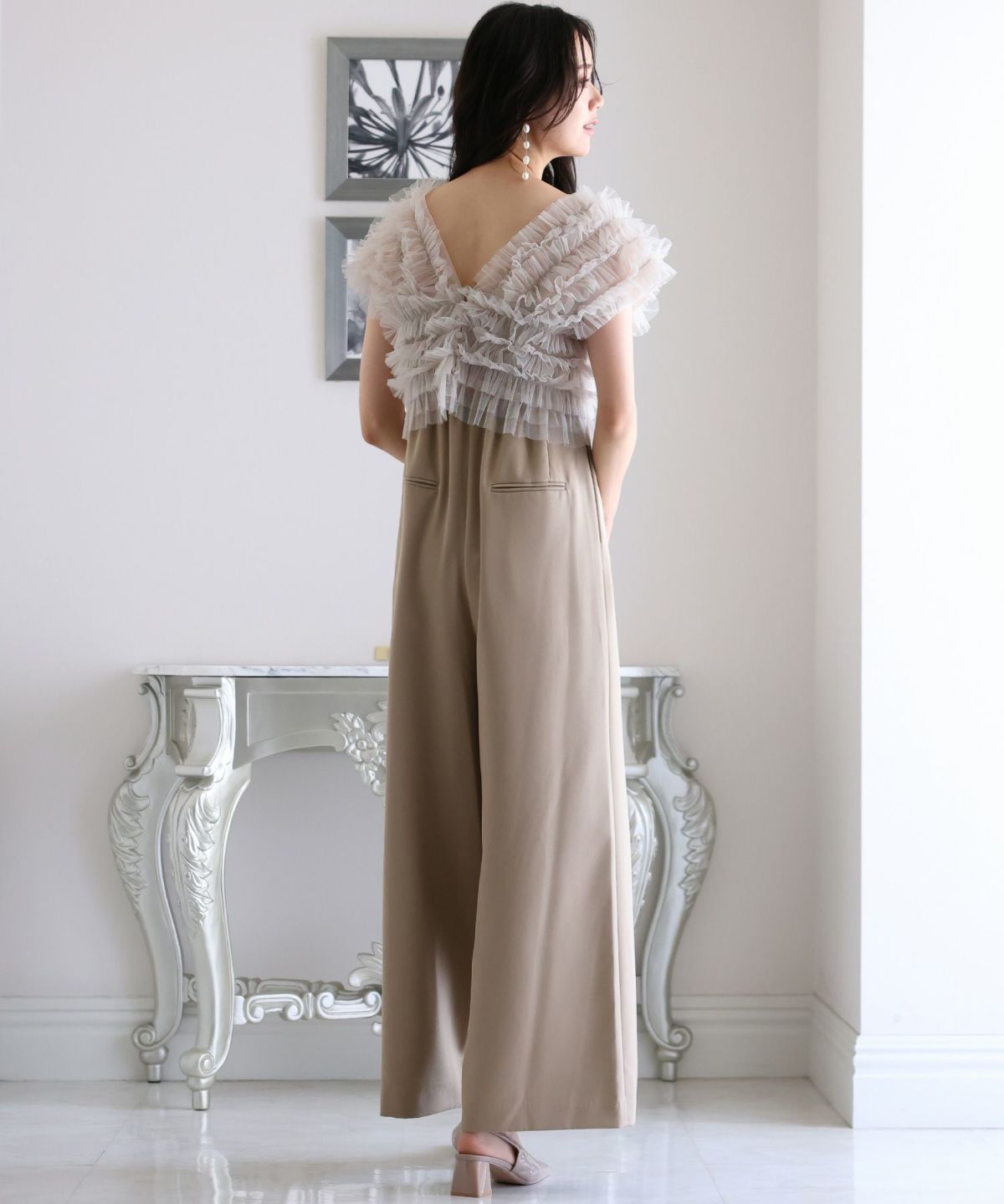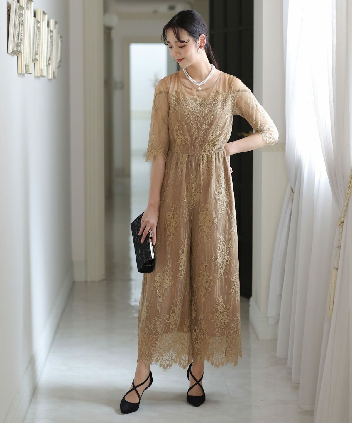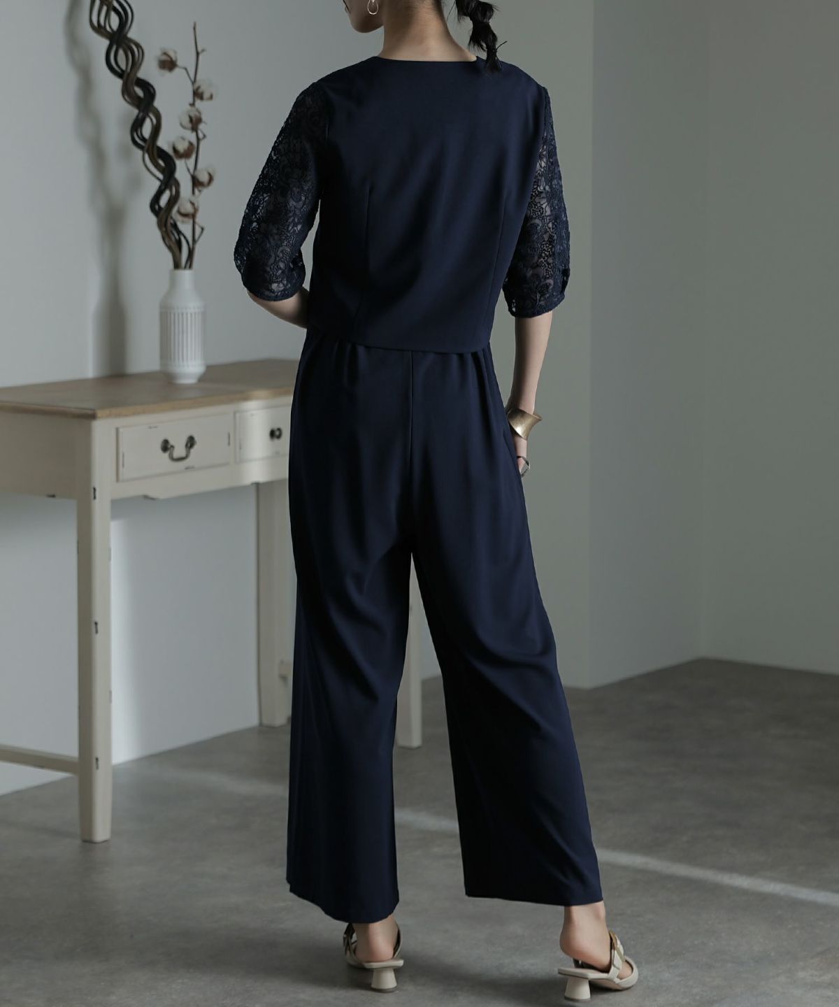 PourVous・atlo 人気パンツドレス。上品に華やぐ、結婚式でもパーティーでも映える、動きやすさと美しさを両立。