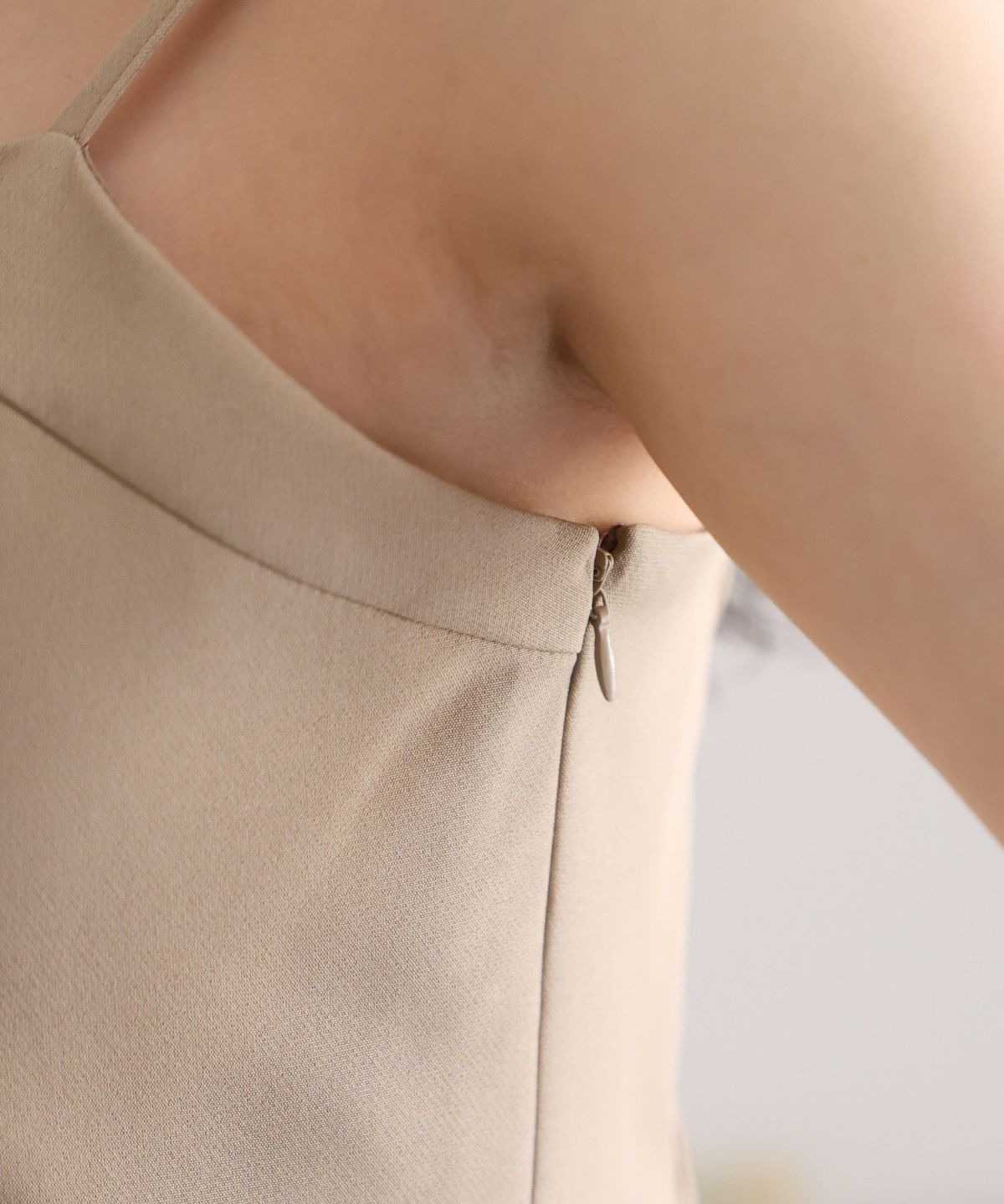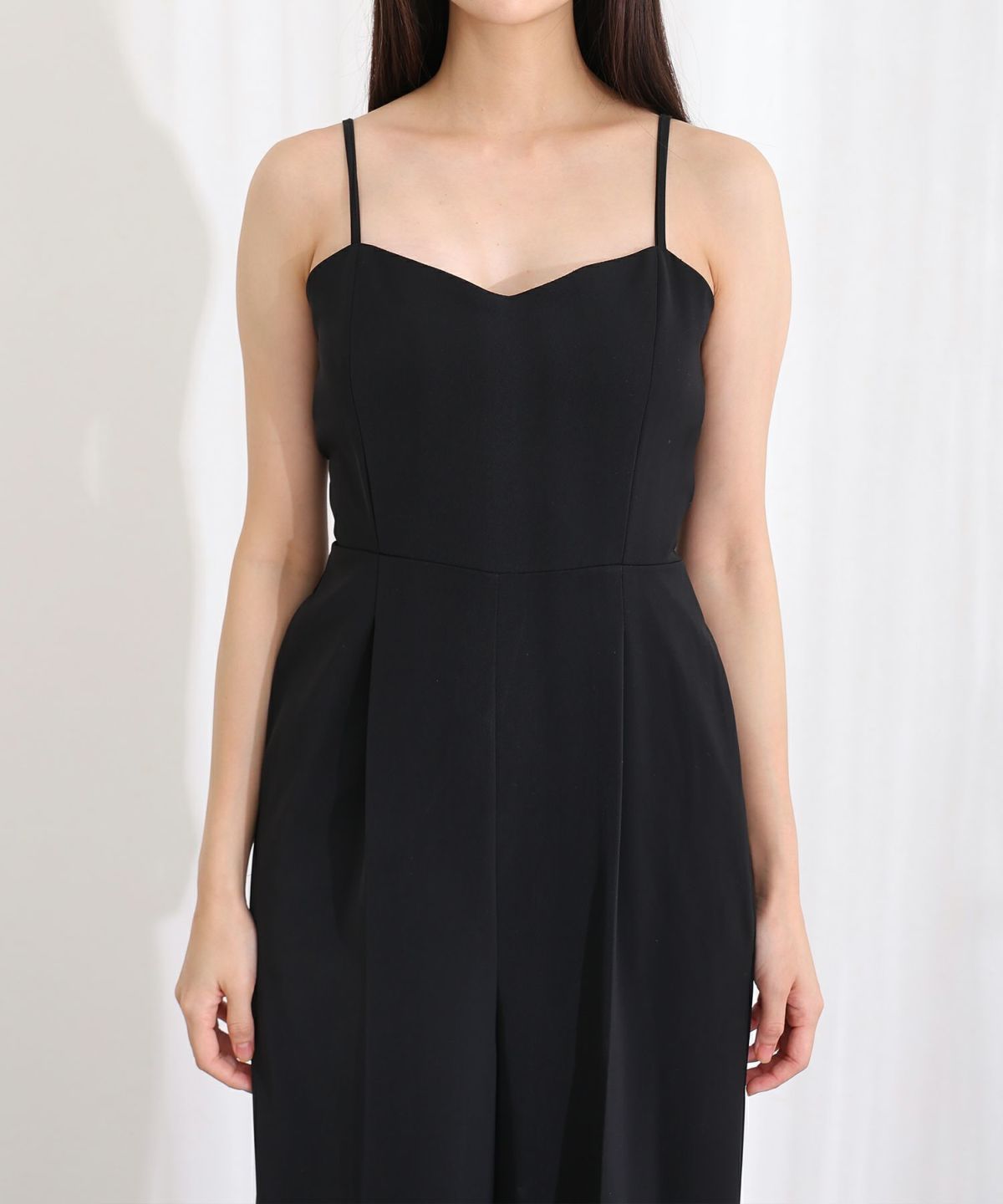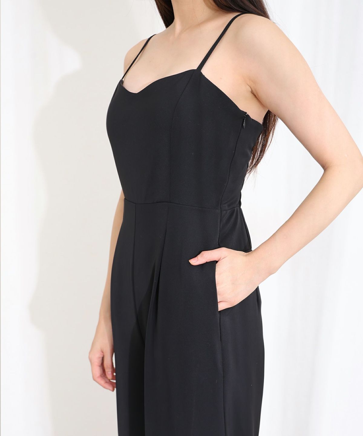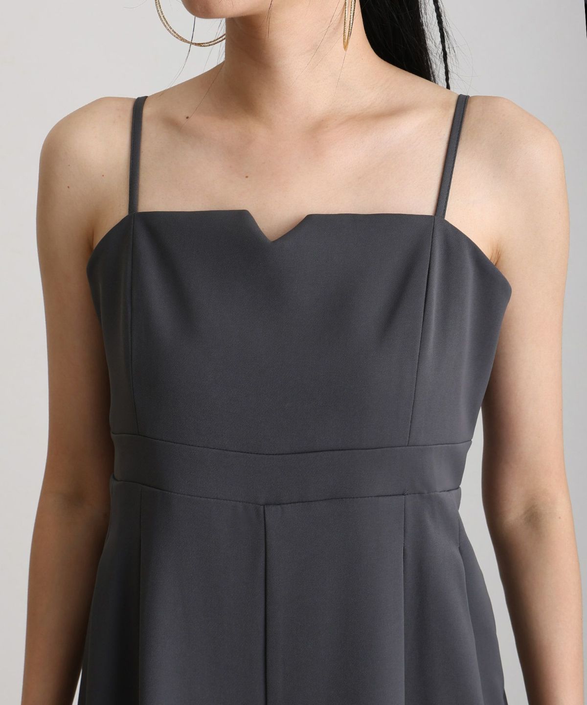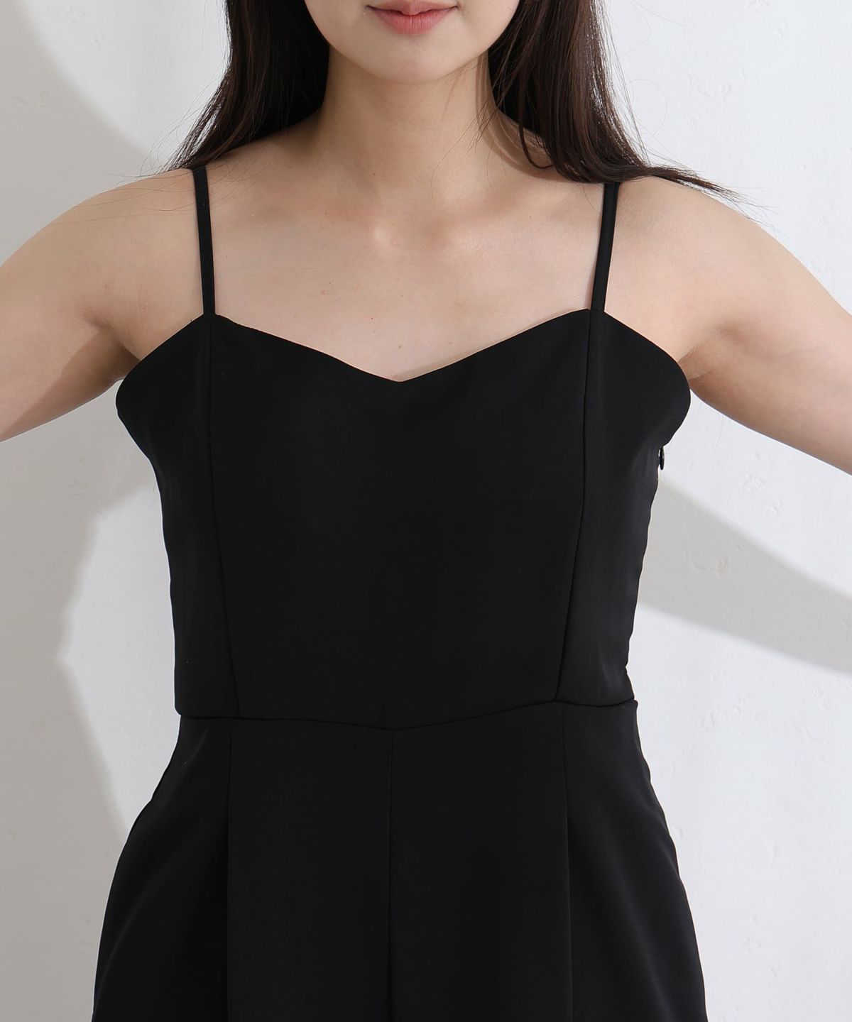 PourVous・atloのノースリーブパンツドレスは、パンツドレスならではの洗練されたシルエットに、肩まわりをすっきり魅せる美しさをプラス。