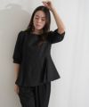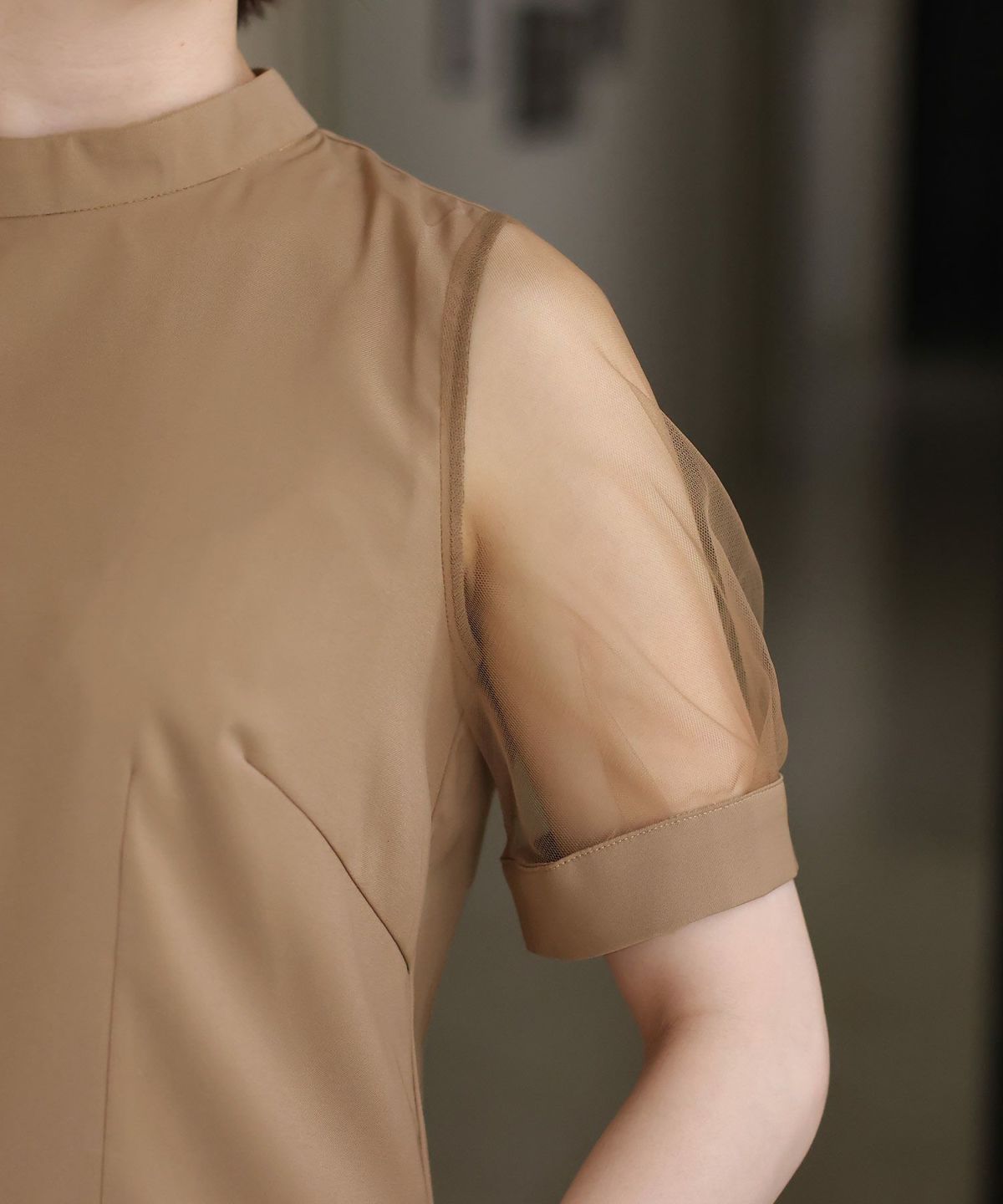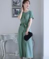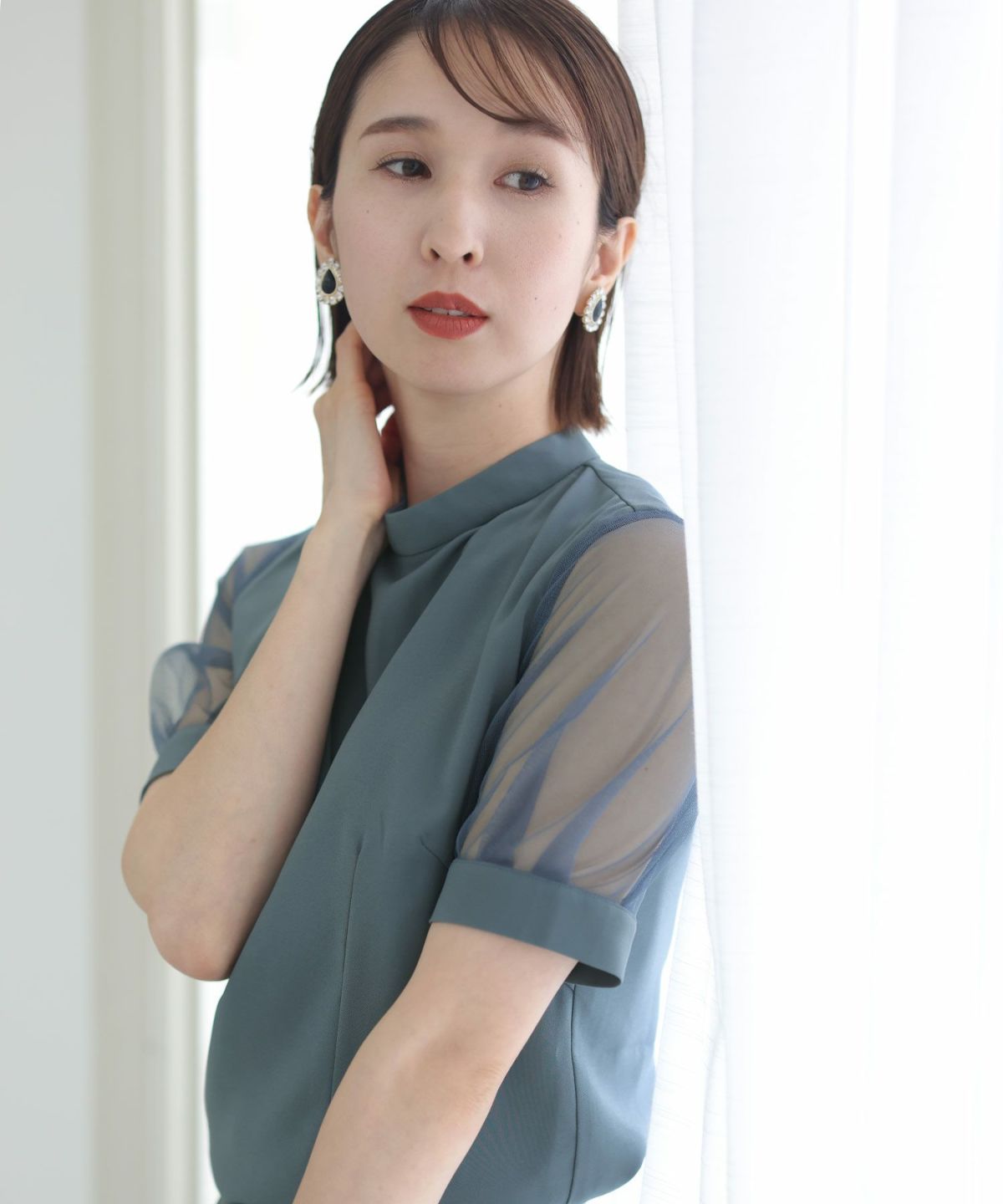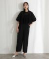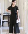PourVous・atloの半袖パンツドレスは、気になる二の腕を程よくカバーしつつ、パンツドレス特有のスタイリッシュさと上品さを両立した一着。