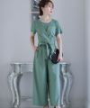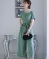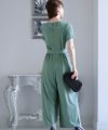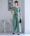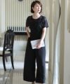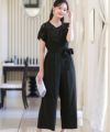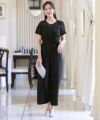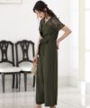 ■レース×ワイドパンツがエレガントなパンツドレスワイドパンツでスマートでオシャレなパンツドレスです。切り替えのレースが華やかでエレガントな女性の印象をプラス。付属リボンで自分スタイルにアレンジできます。披露宴や二次会にはもちろん、通勤着として着て頂ける1枚です。