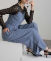 フィット感のあるパンツドレスで、長時間着ても疲れない。