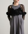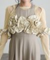 フリルビスチェは、オーガンジーの土台に異素材のボリュームフリルを施し、華やかさと立体感を演出。