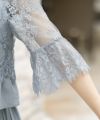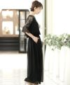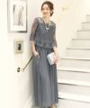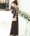 レース袖で気になる二の腕をカバー♪短めトップスとハイウエストパンツで脚長効果もある優秀ドレスです。