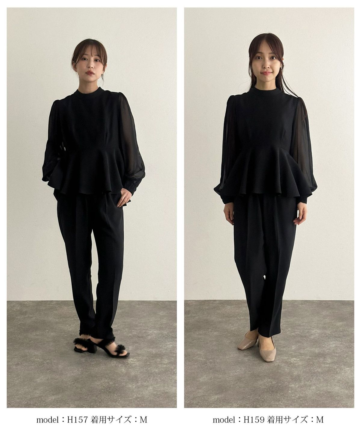 ウエストをマークしたペプラムデザインで、スタイルアップ効果が抜群。