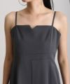 オールインワンのウエスト部分にベルト風の切り替えを施し、体型を選ばずスッキリ見えを実現。