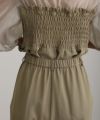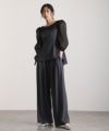 ウエストゴム仕様とゆったりとしたシルエットで快適さと上品さを両立。