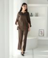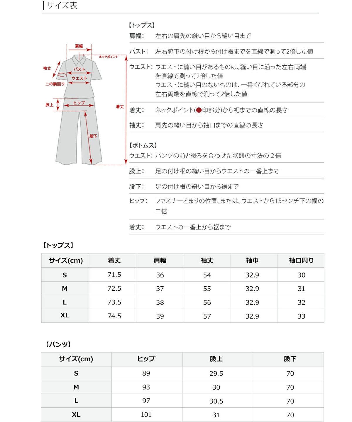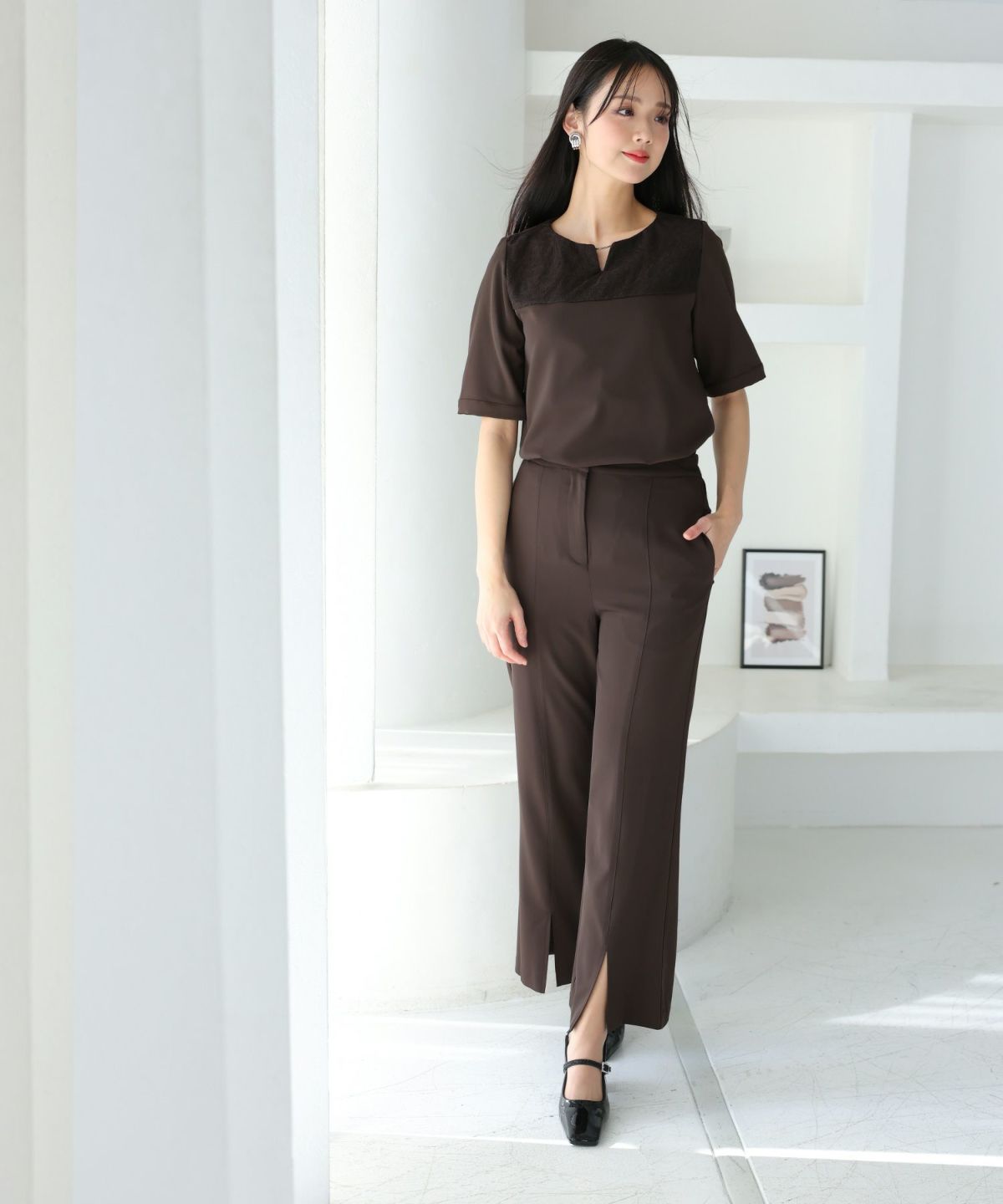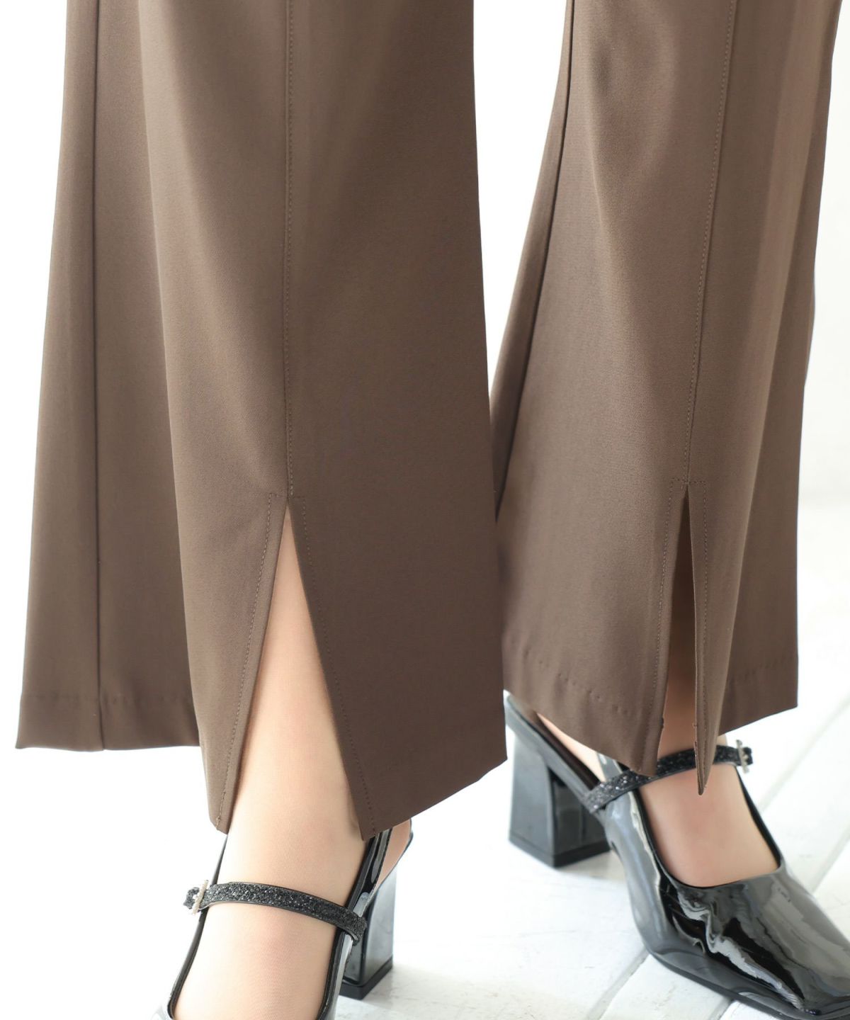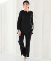 トップスは程よい長さなので、気になるヒップラインをカバーしてくれますパンツのフロントスリットで自然な脚長効果も◎