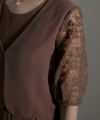 ■素材ジャケットの袖は、程よい透け感が上品。パンツはジョーゼットでシワになりにくい素材となっております。