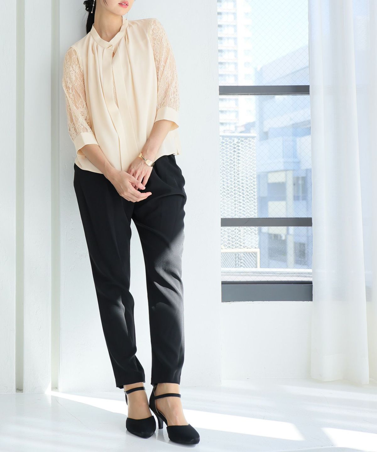 袖部分のレースが、フェミニンな雰囲気を演出。