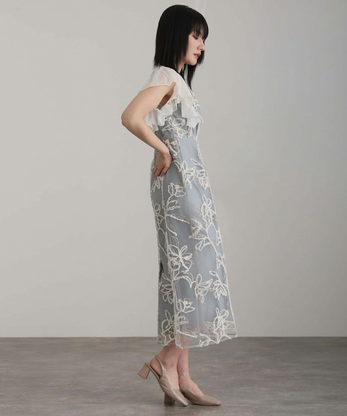 軽やかなフレアが動くたびにふんわりと揺れ、優雅さを演出。