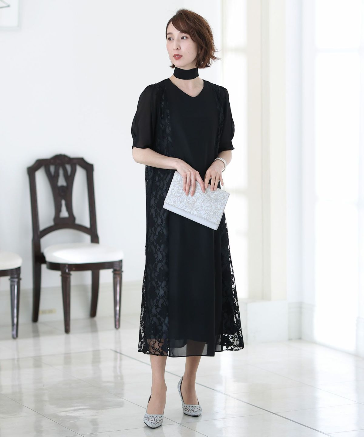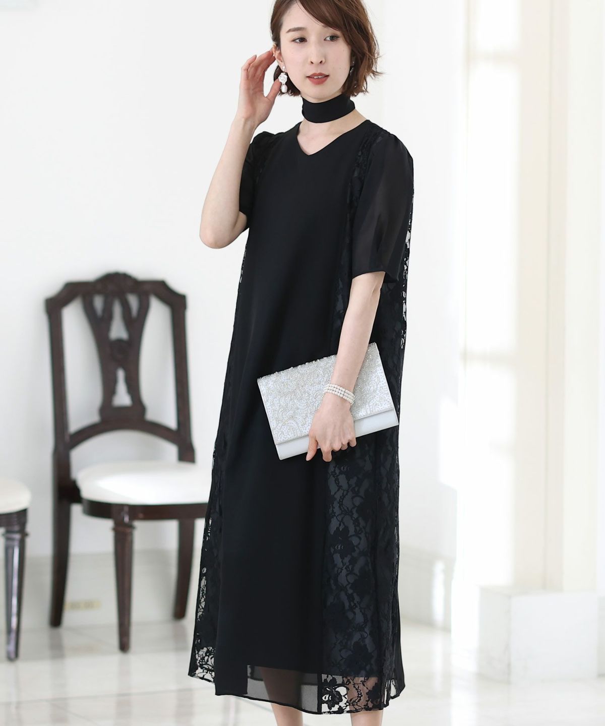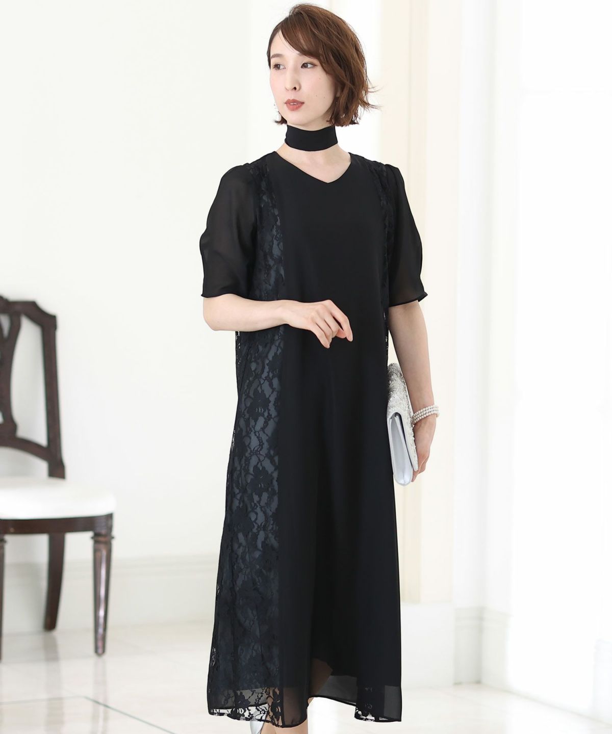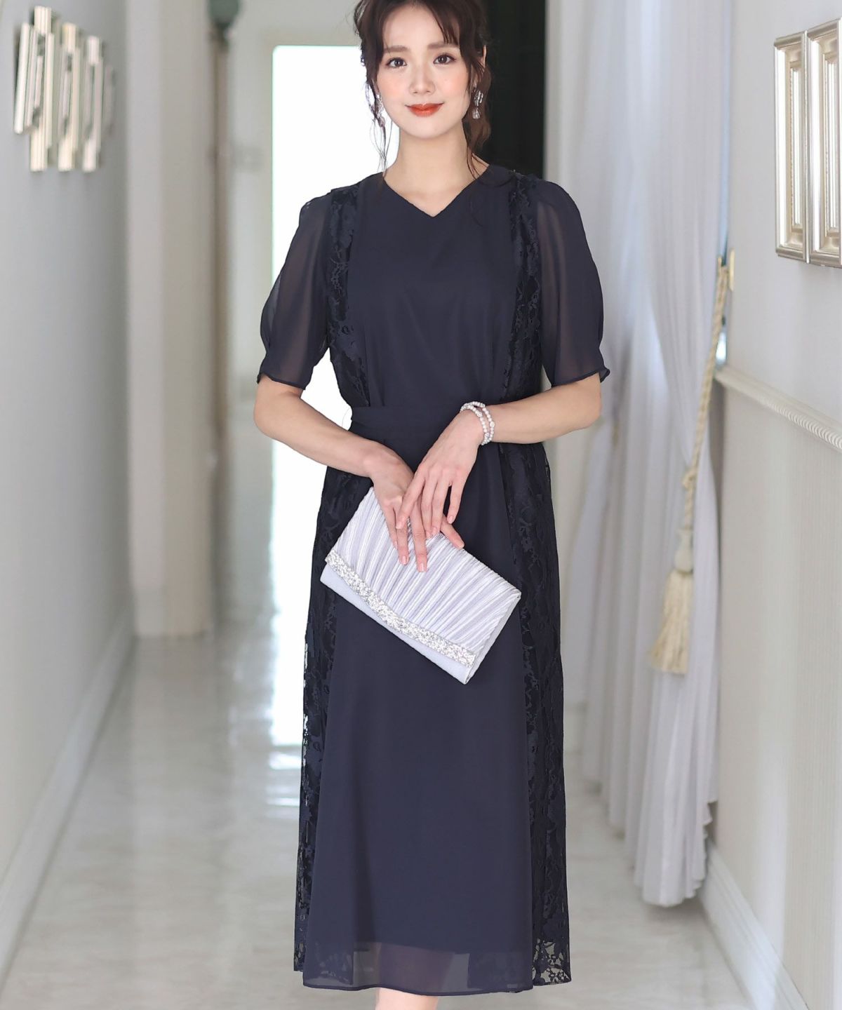 ■エレガント×女性らしいシフォンワンピースシフォンとレースが切り替えられたデザイン性のあるドレスです。エレガントなドレスなので、ジャケットなどと合わせて様々なオケージョンシーンにおすすめです。付属のリボンは取外し可能で2WAY仕様のワンピースです。切替レースで華やかですが、落ち着いたカラーバリエーションで甘すぎないワンピースに仕上がっています。