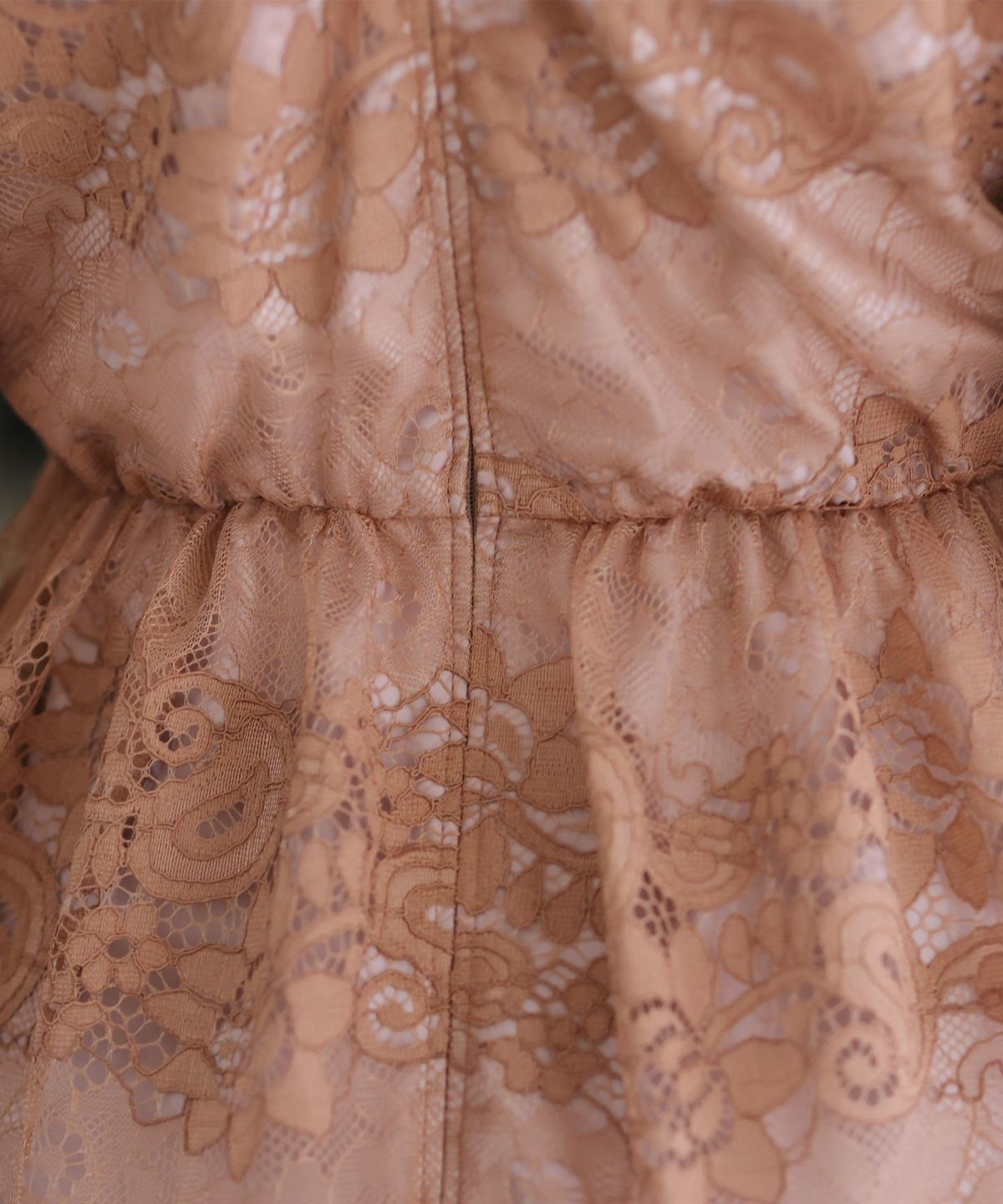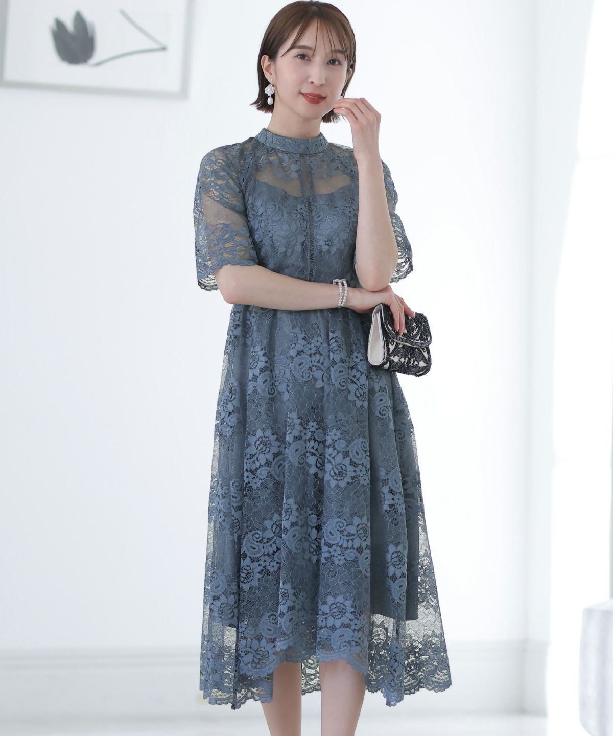 ■総レース×スカラップスカラップデザインが可愛い総レースワンピース。高めのウエストとふんわり広がるスカートで綺麗なAラインシルエットに。ウエスト背面がゴムになっているので着脱も楽ちん。オケージョンシーンはもちろん、特別なお食事会などにもピッタリです。