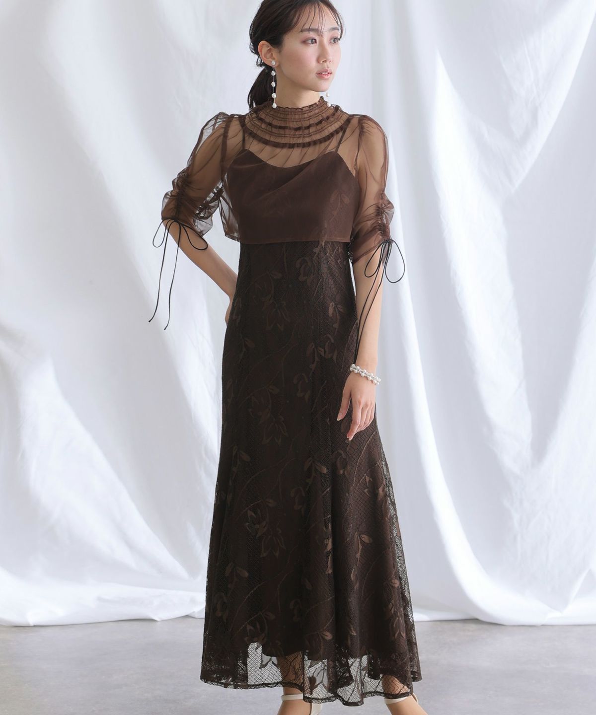 立体感のあるコードレースが高級感漂うデザインワンピース。