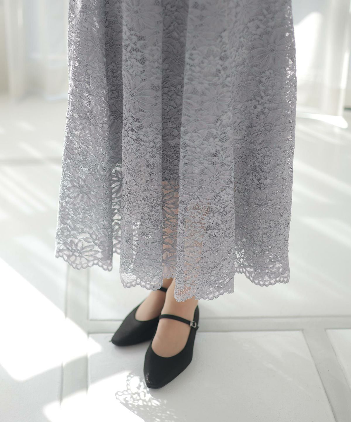 ■レースとシフォン生地で柔らかい雰囲気に生地をたっぷりと使用したスカートは歩くと揺れ感がきれいで、華やかさをプラスします。