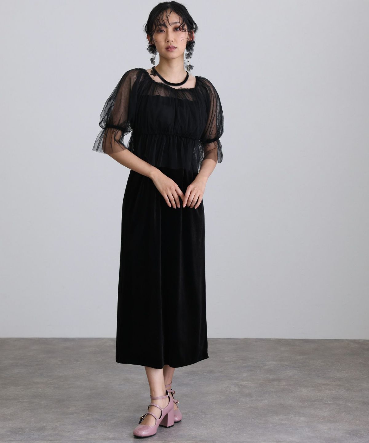 チュール素材のギャザーが、ふんわりとした華やかさを