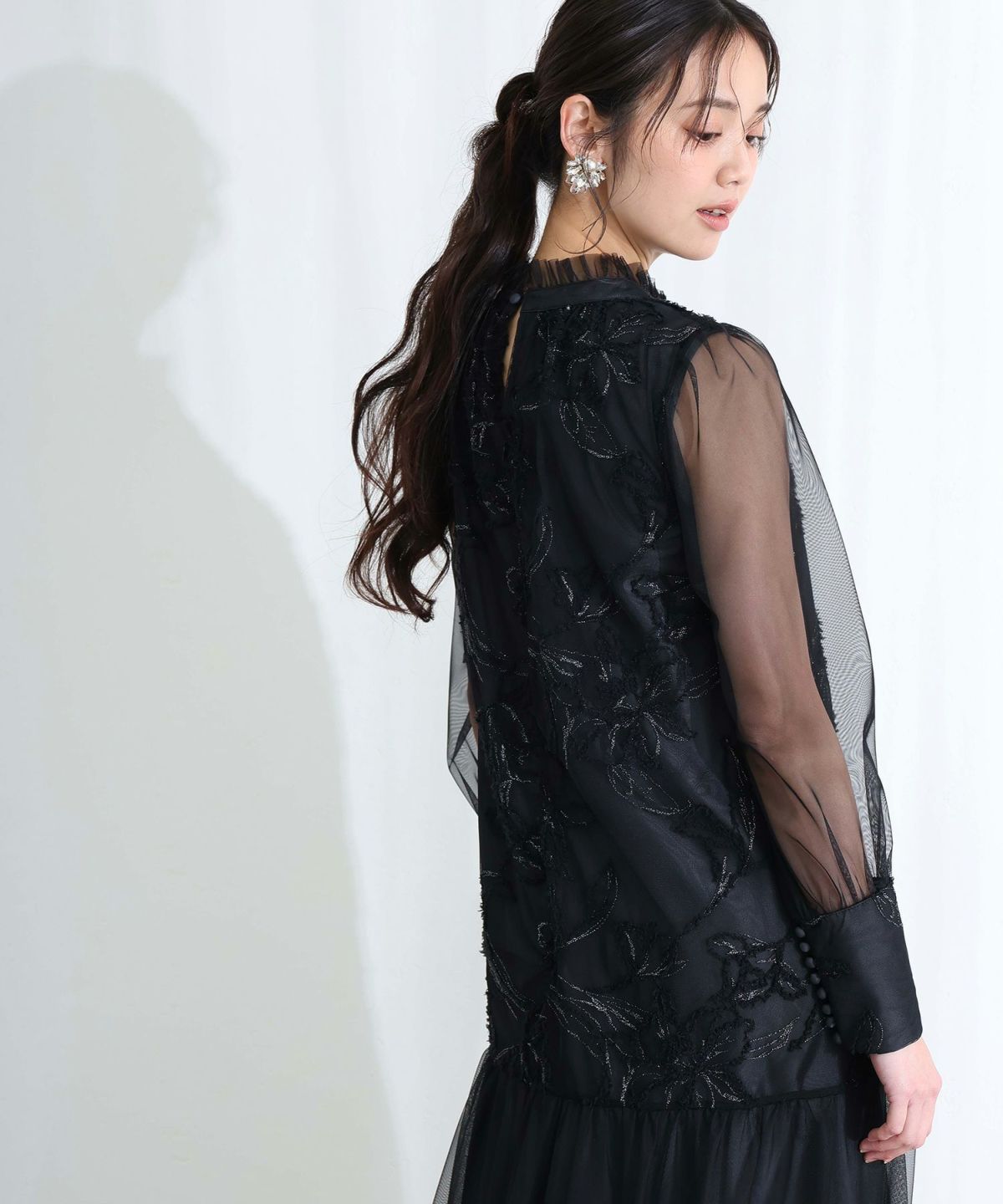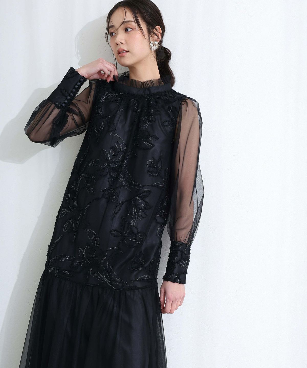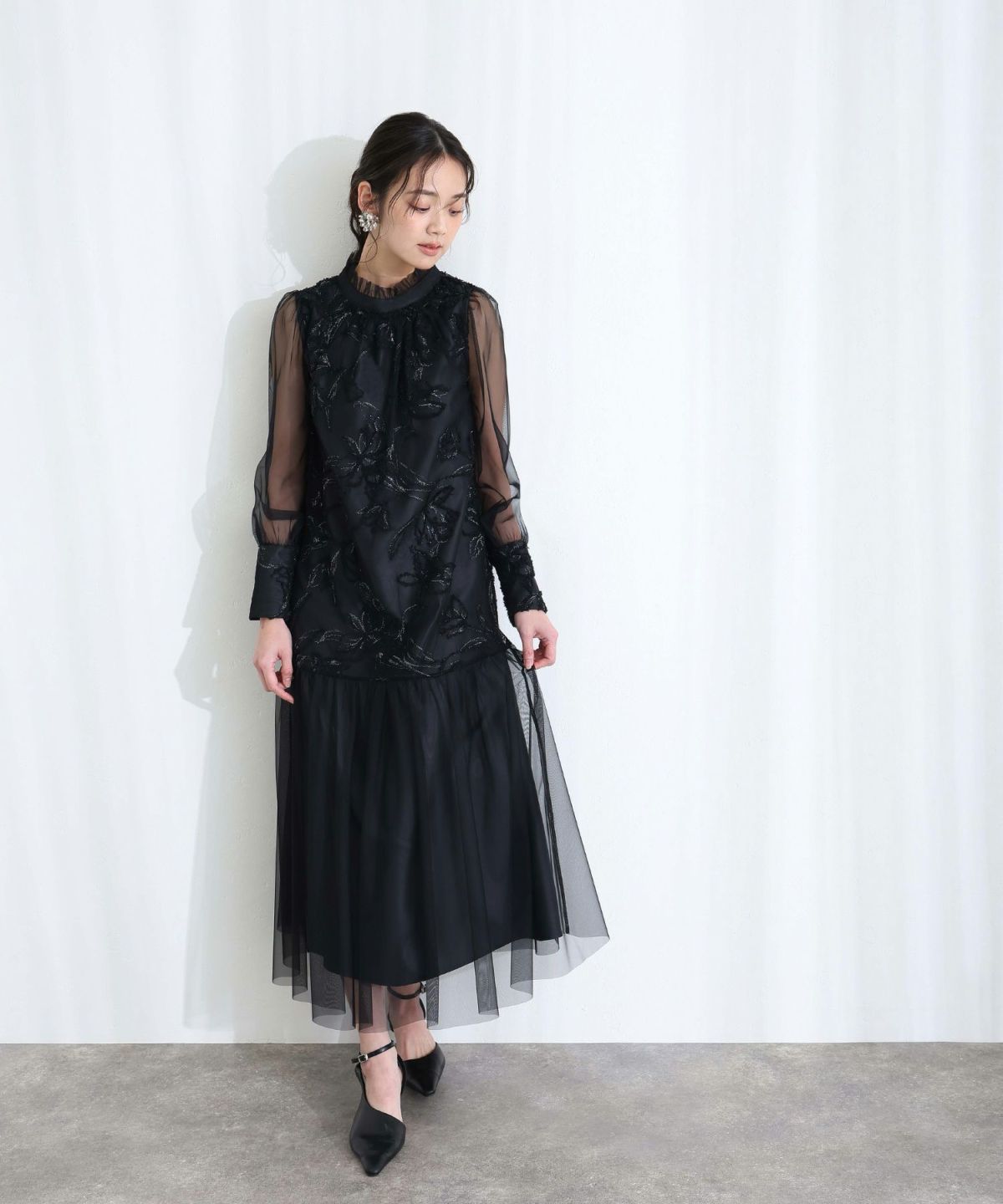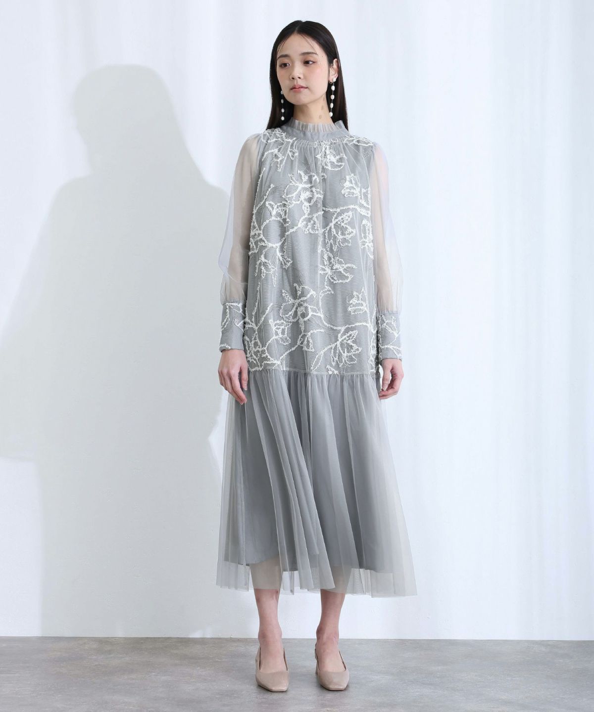 チュールレースが煌びやか ビーズ刺繍ワンピース
