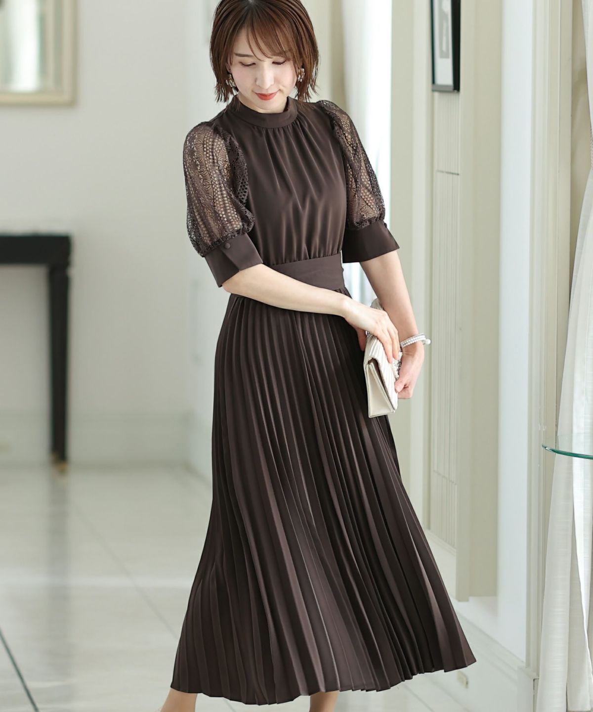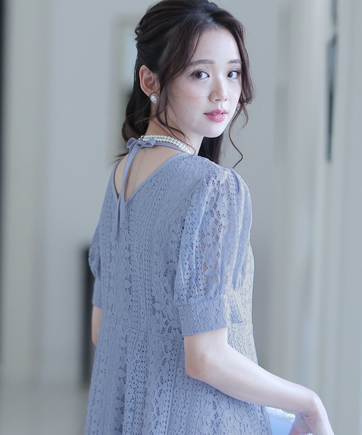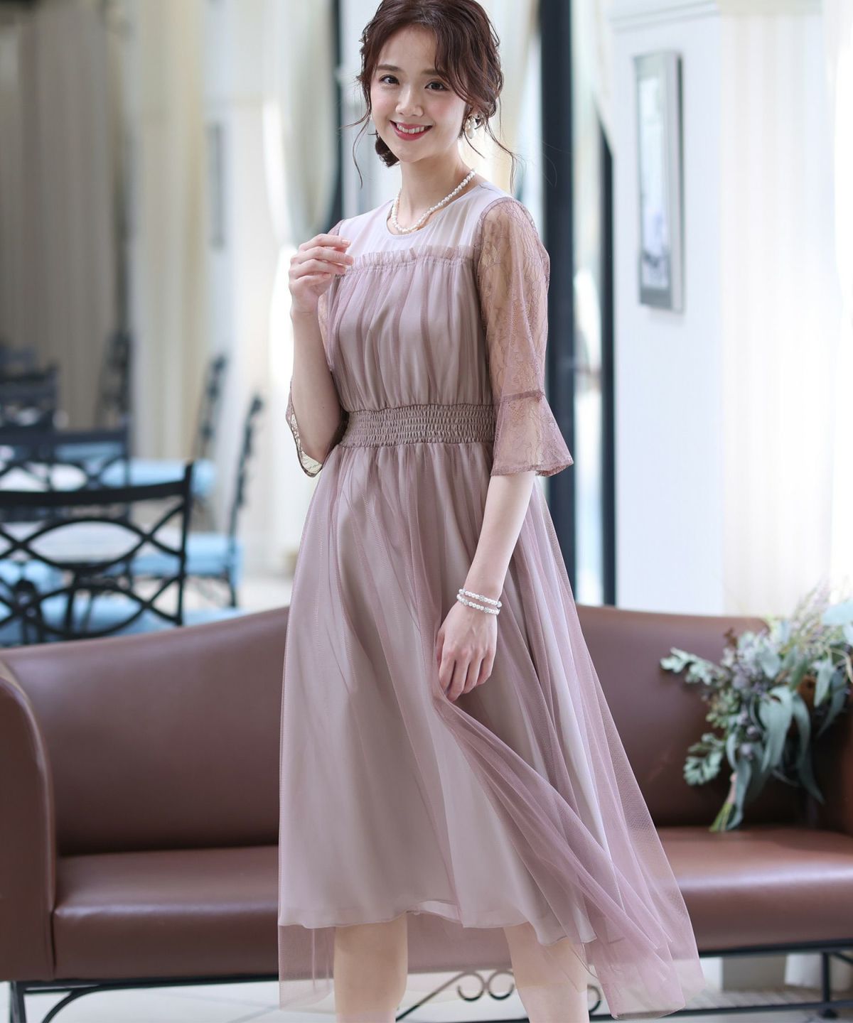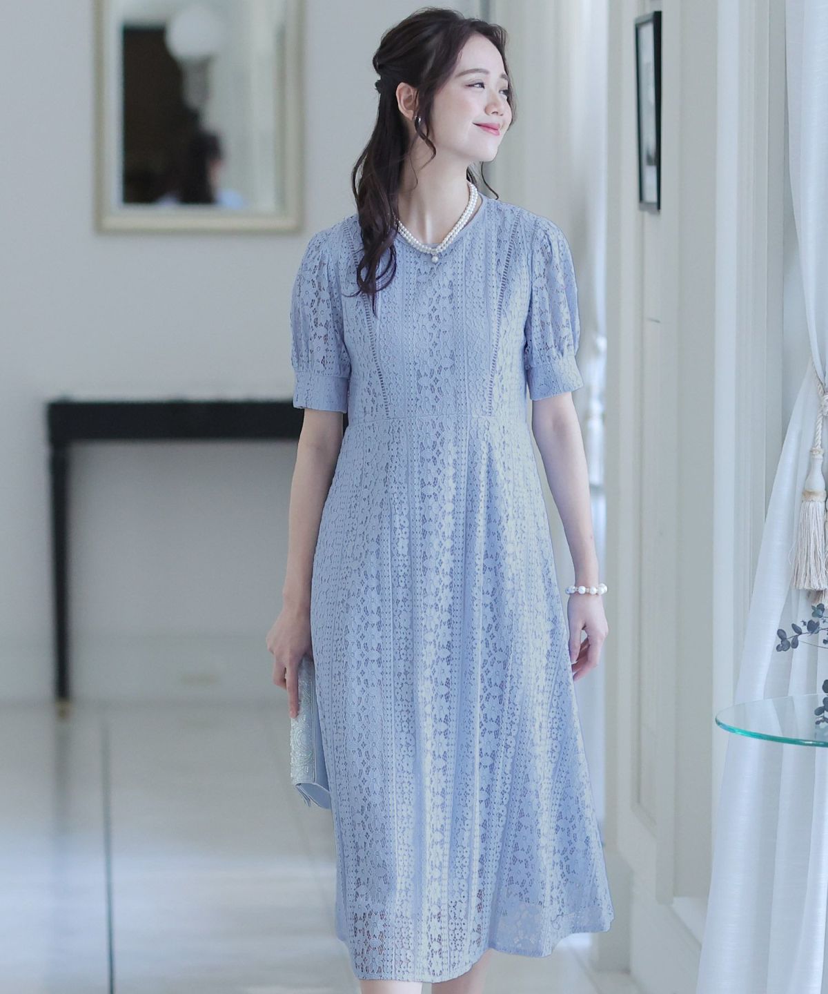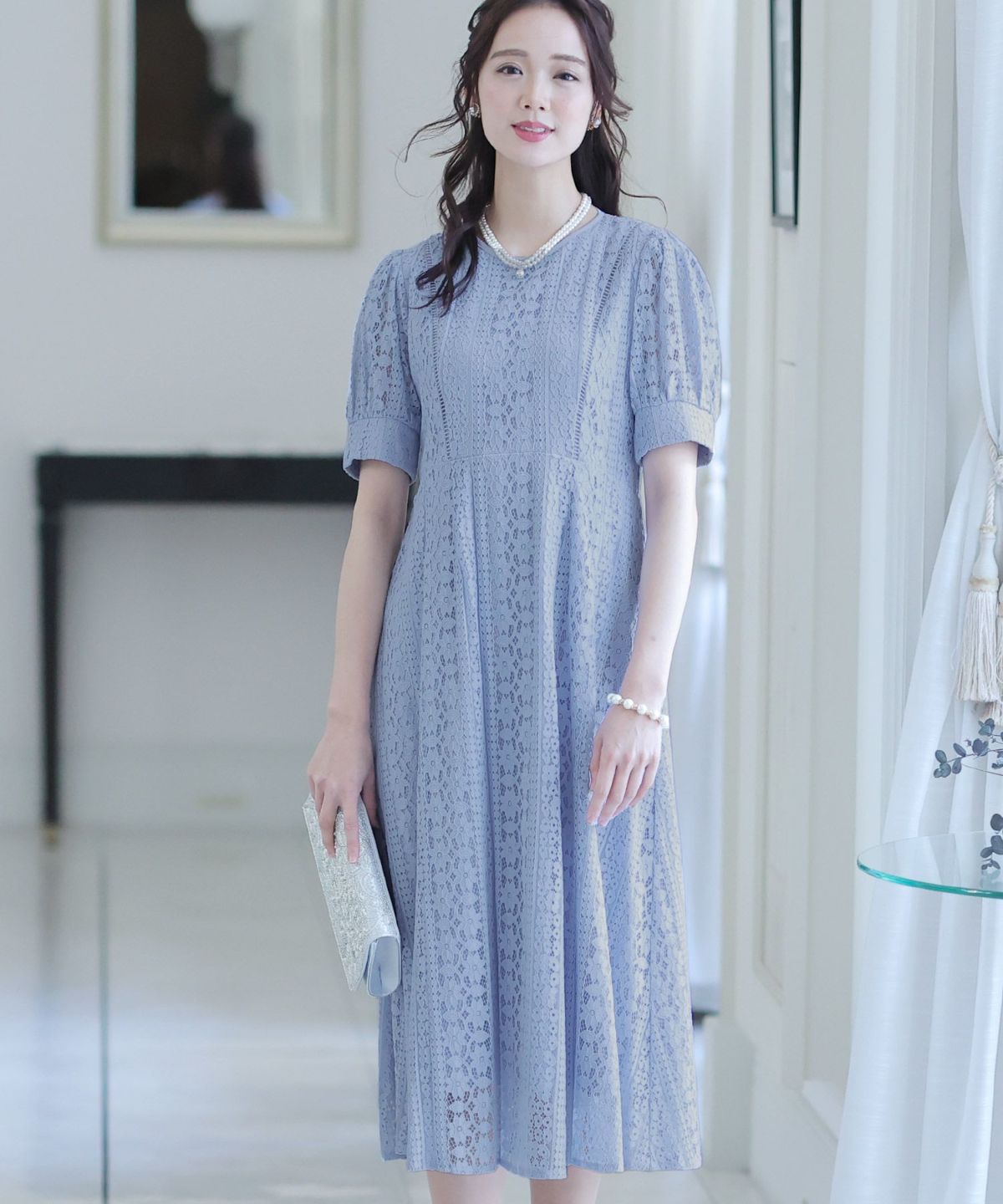 繊細なレースを忍ばせたエレガントなドレス。