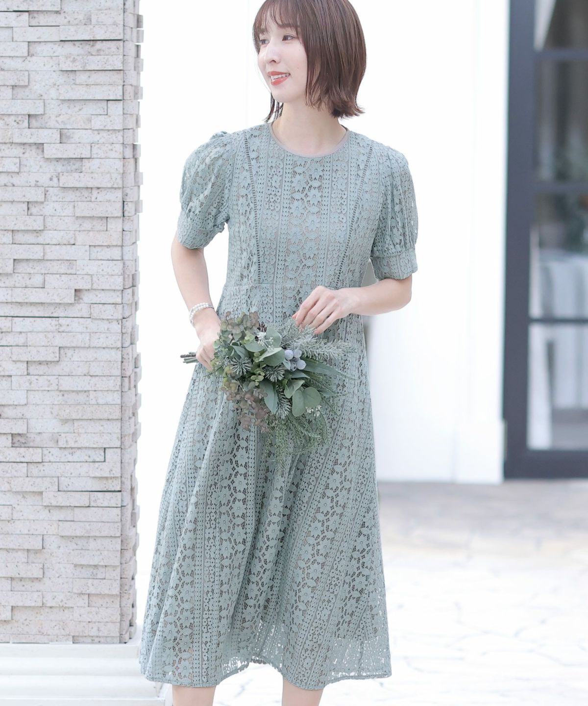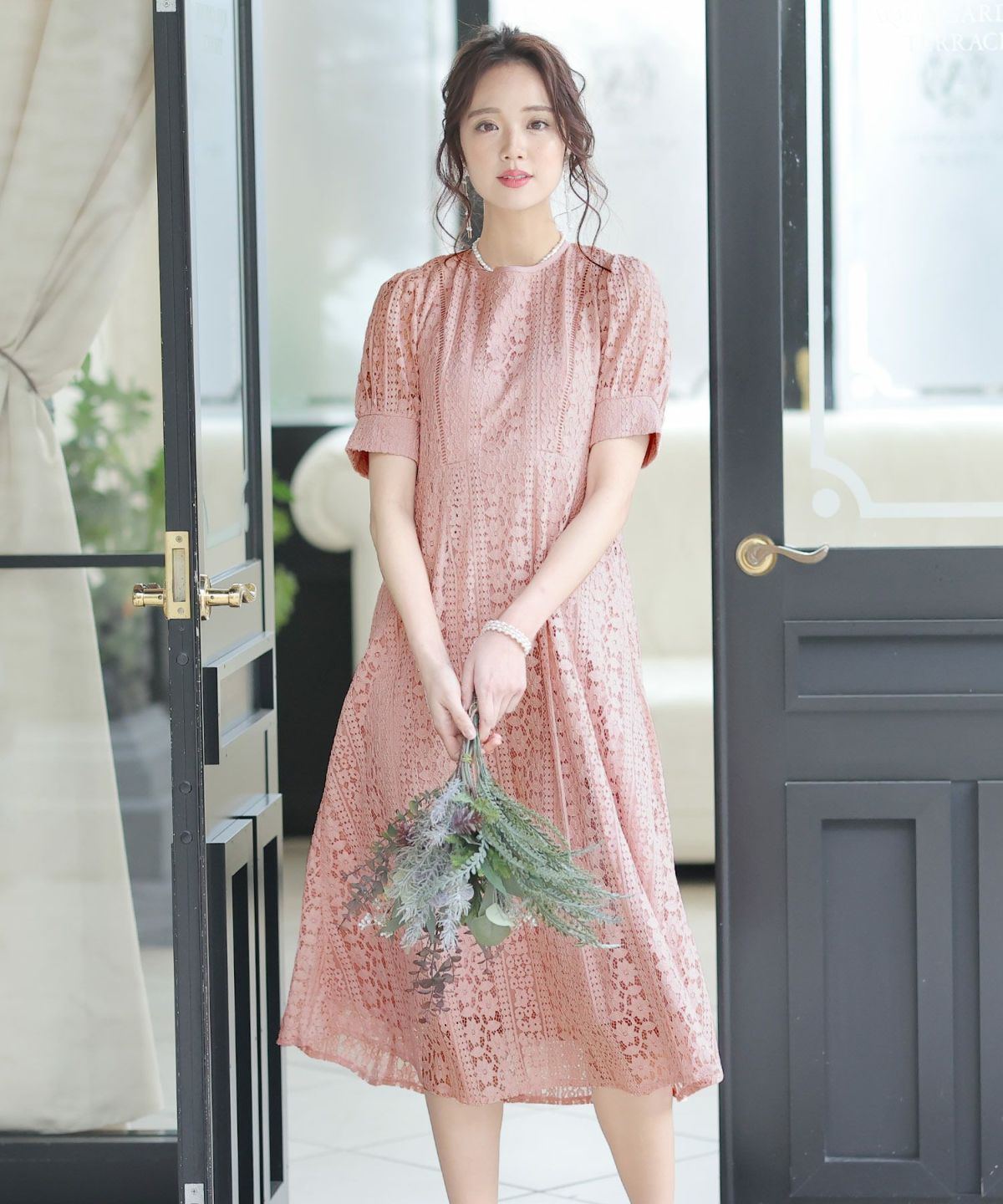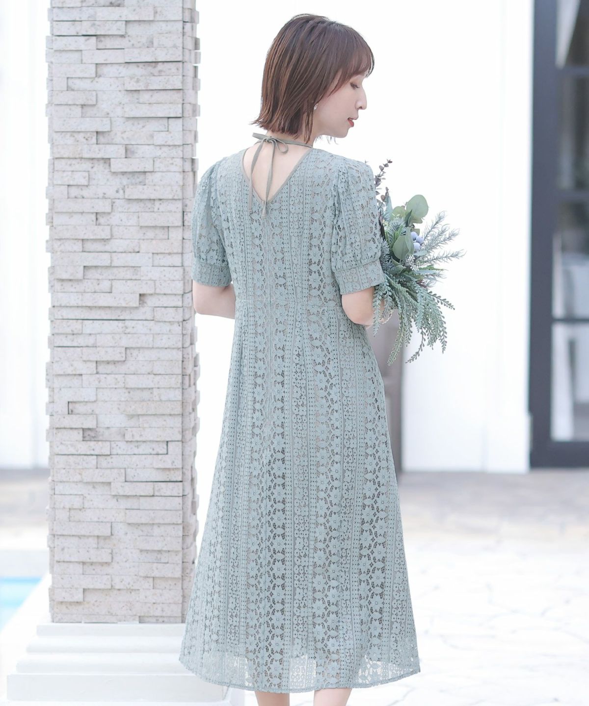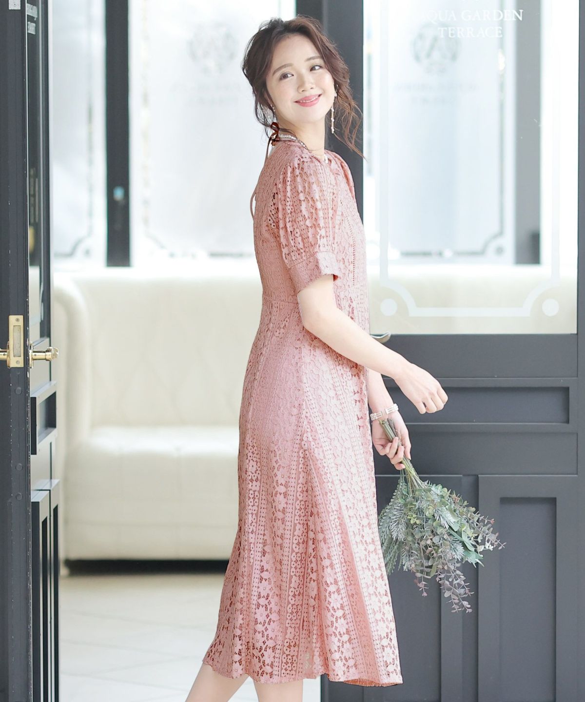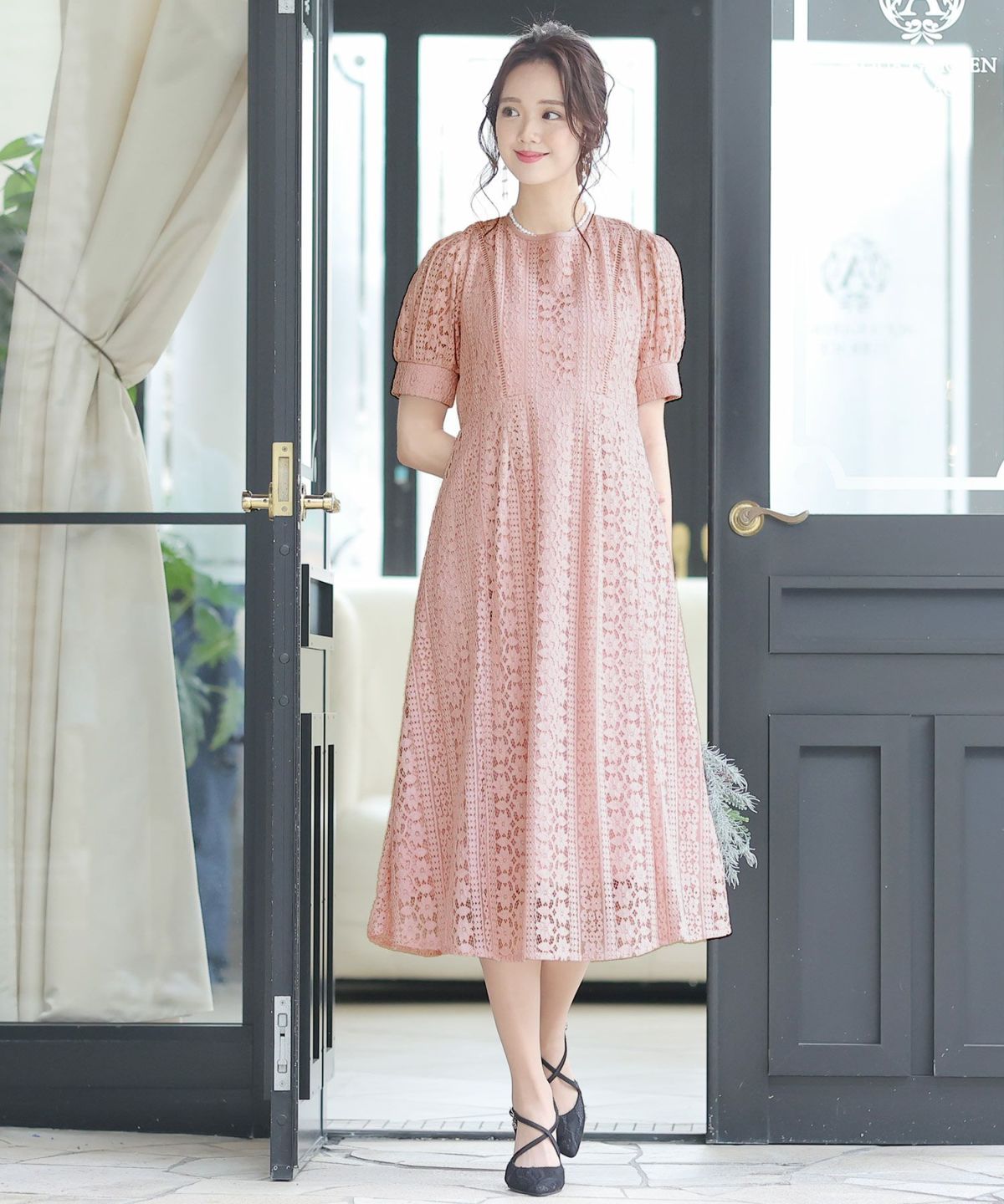 一見シンプルなドレスに見えますが、計算されたレース使いは女性らしさを際立て、大人っぽい雰囲気を演出します。