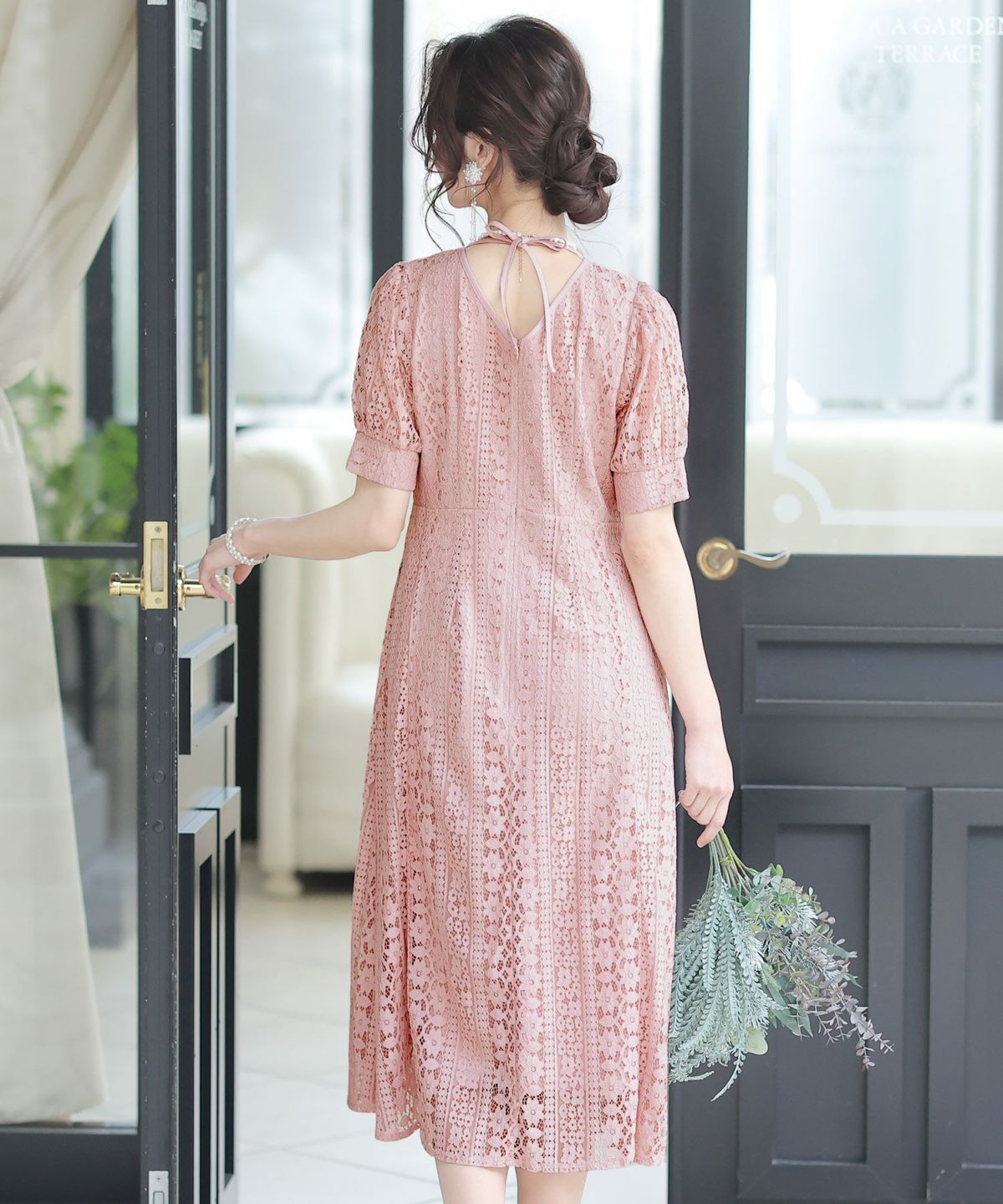 バックプリーツ&レースリボンドレス