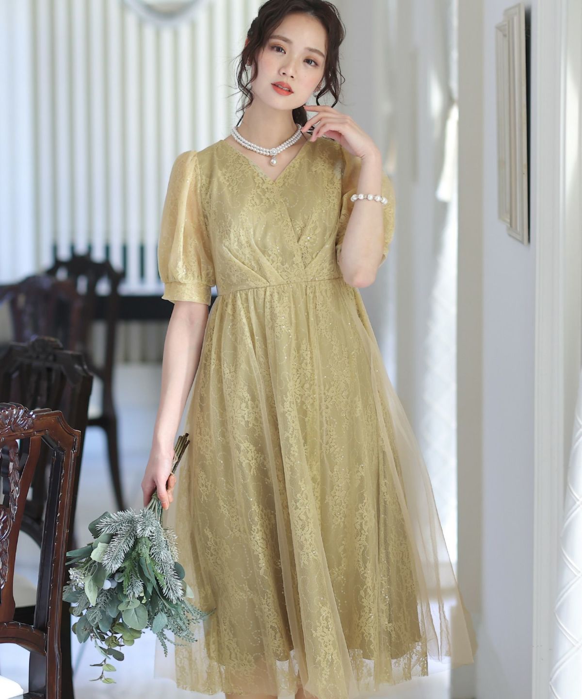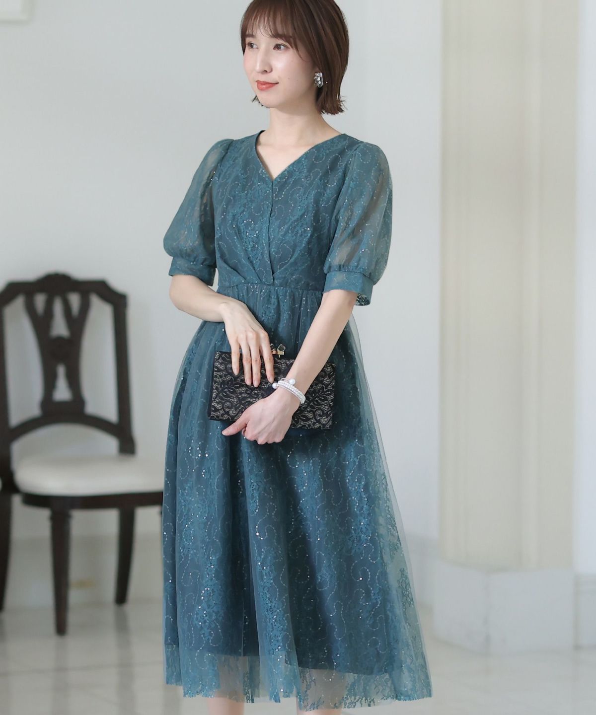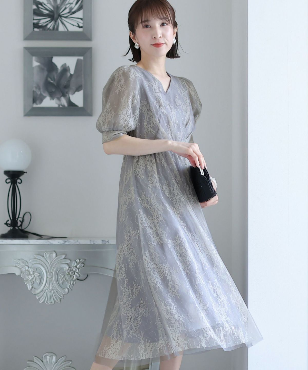 繊細なレースを忍ばせたエレガントなドレス。