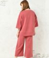 ゆったりしたシルエットなのでお部屋でくつろぐのにぴったりのセットアップ。ガウチョパンツなので窮屈なく着ていただけます♪