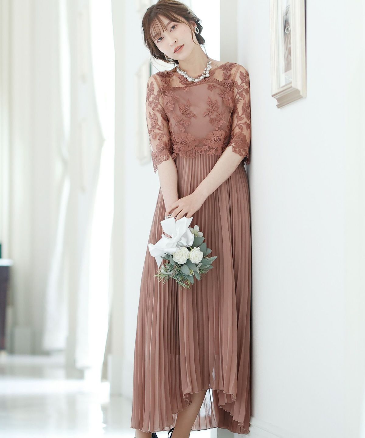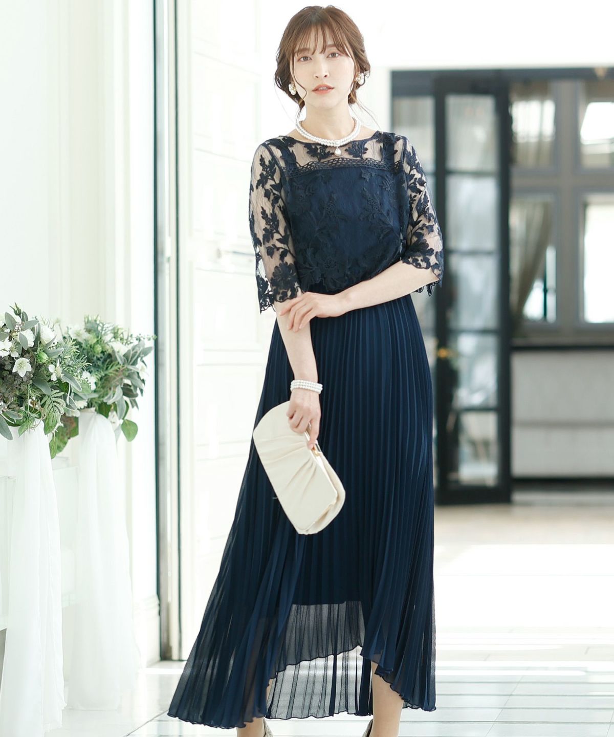 ■ジョーゼットのイレヘムが可愛いプリーツドレス