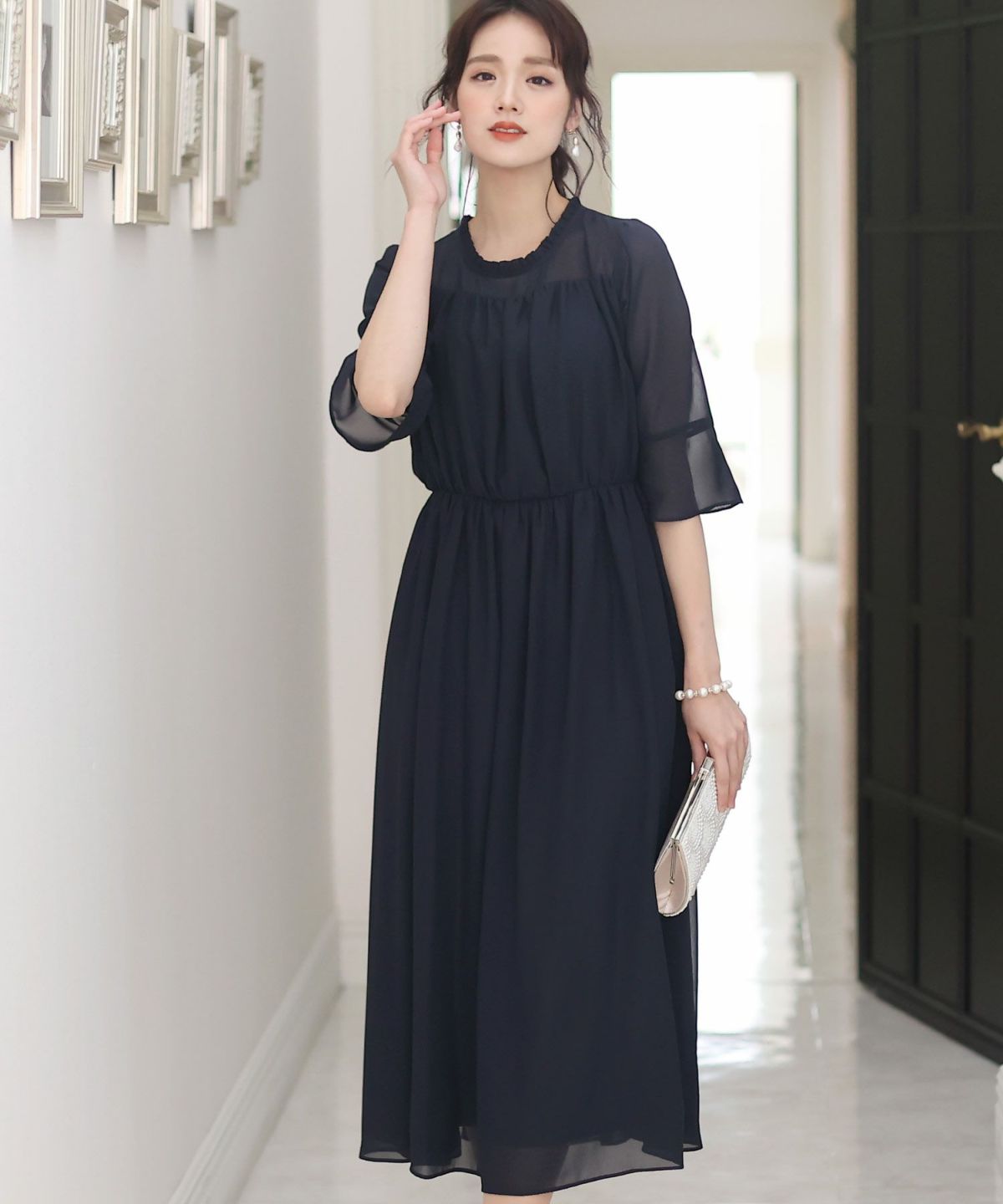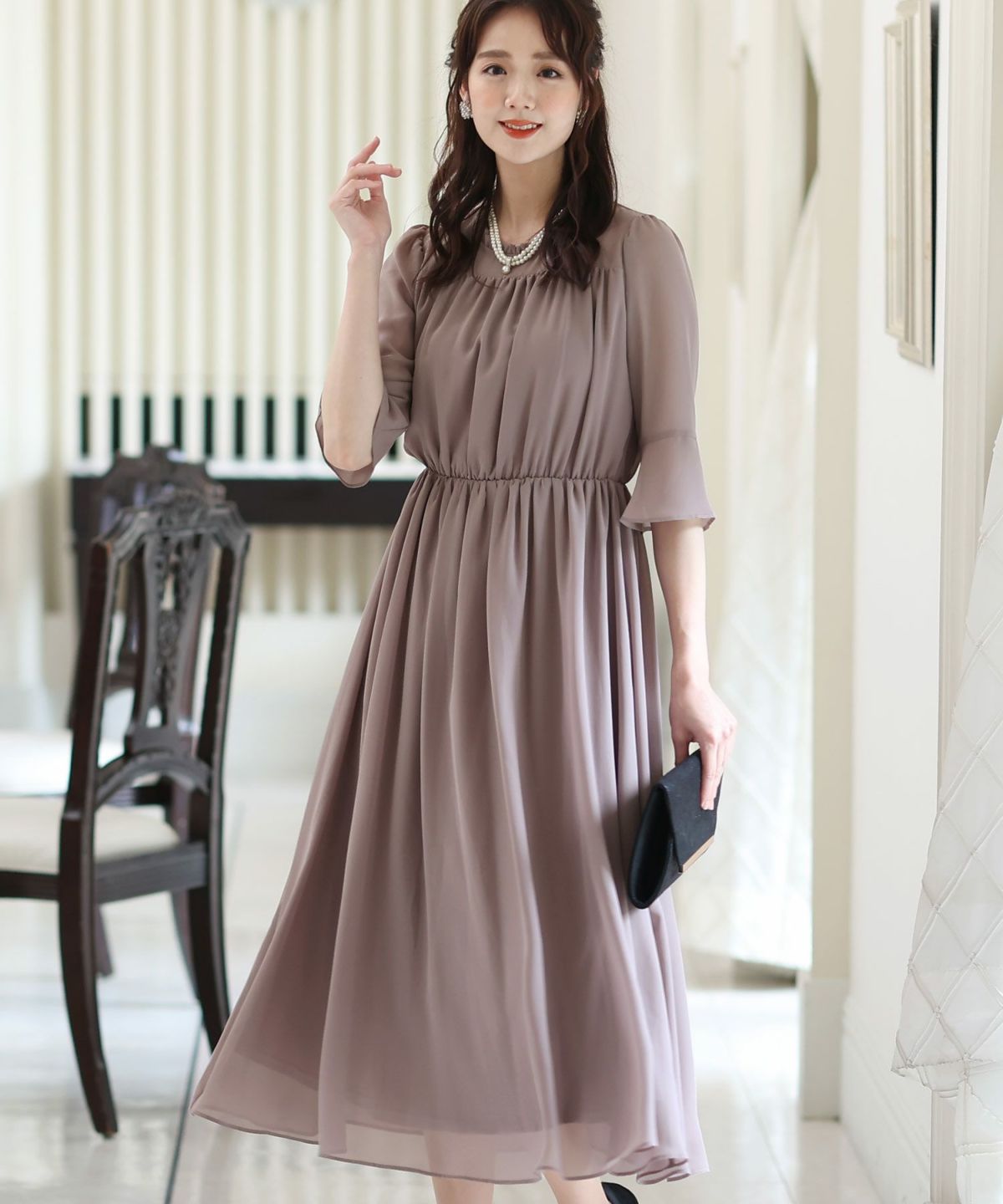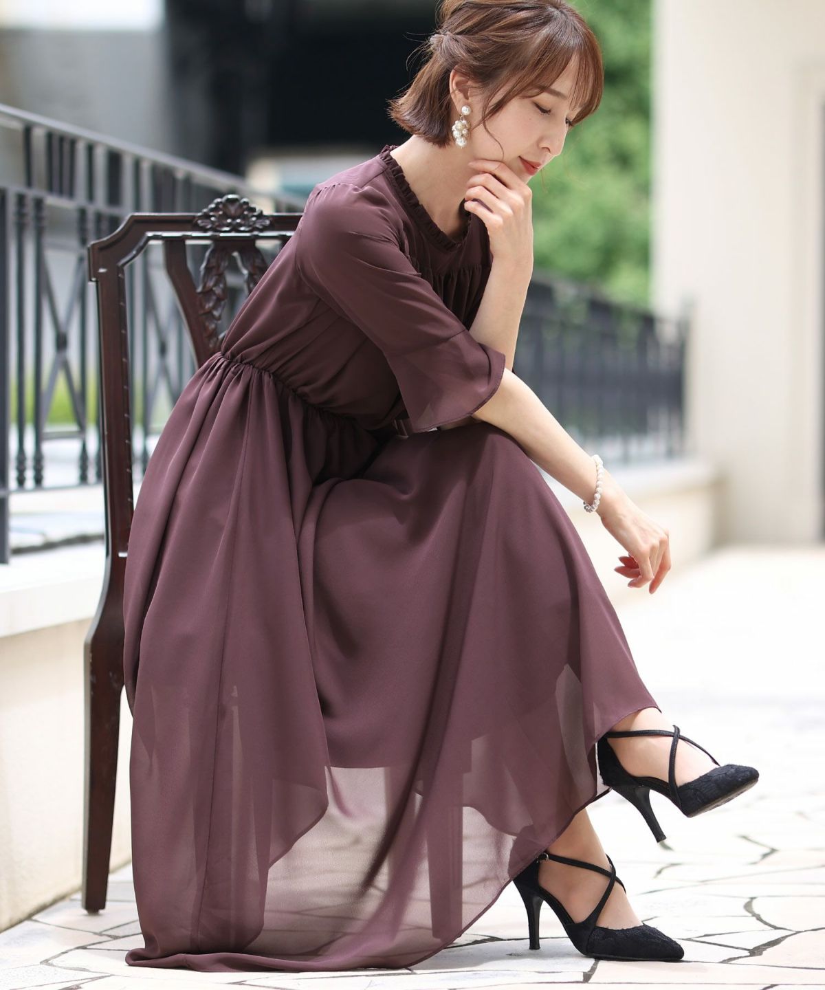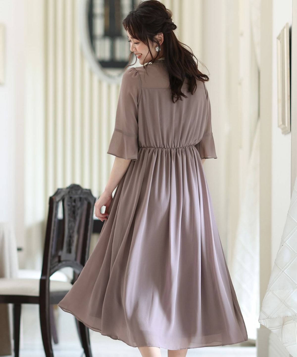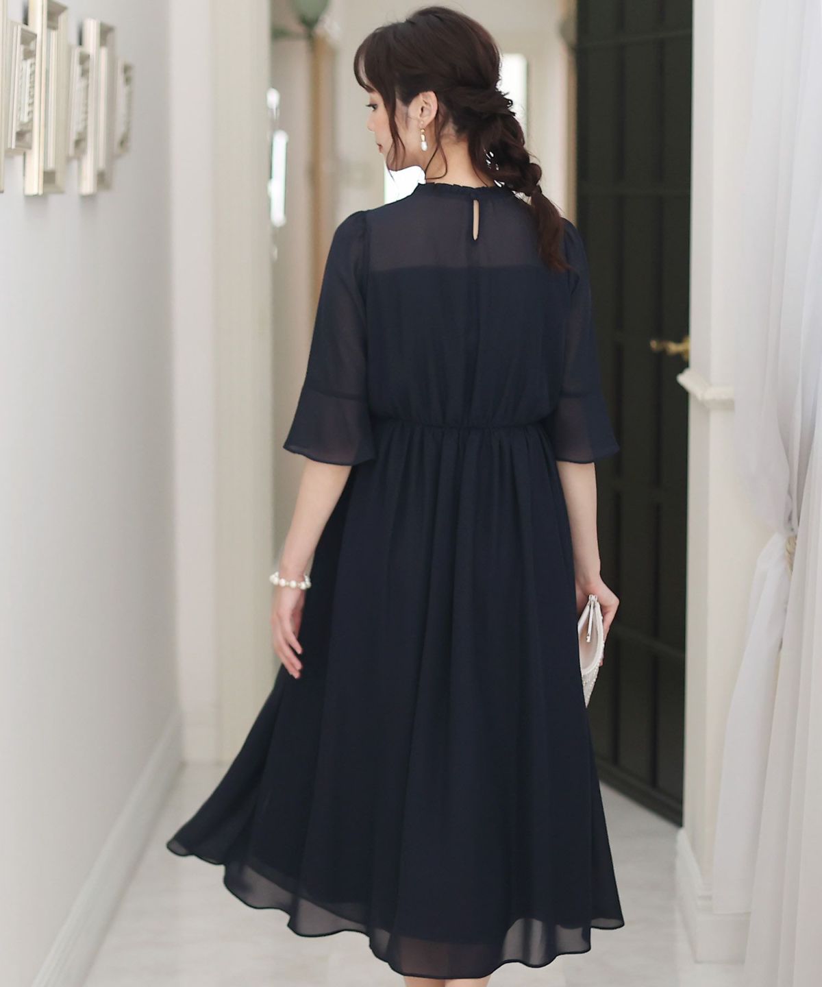 ■ベルスリーブ×シフォンのフェミニンなワンピース袖のベルスリーブスタイルがポイントになるワンピースです。フェミニンなデザインに透け感が加わることで大人な女性の着こなしになるアイテムです。アウターや小物アイテムを合わせてデイリーでも着てい頂けます。首元と袖のフリルがポイントになりシンプルな中にデザイン性のあるワンピースです。