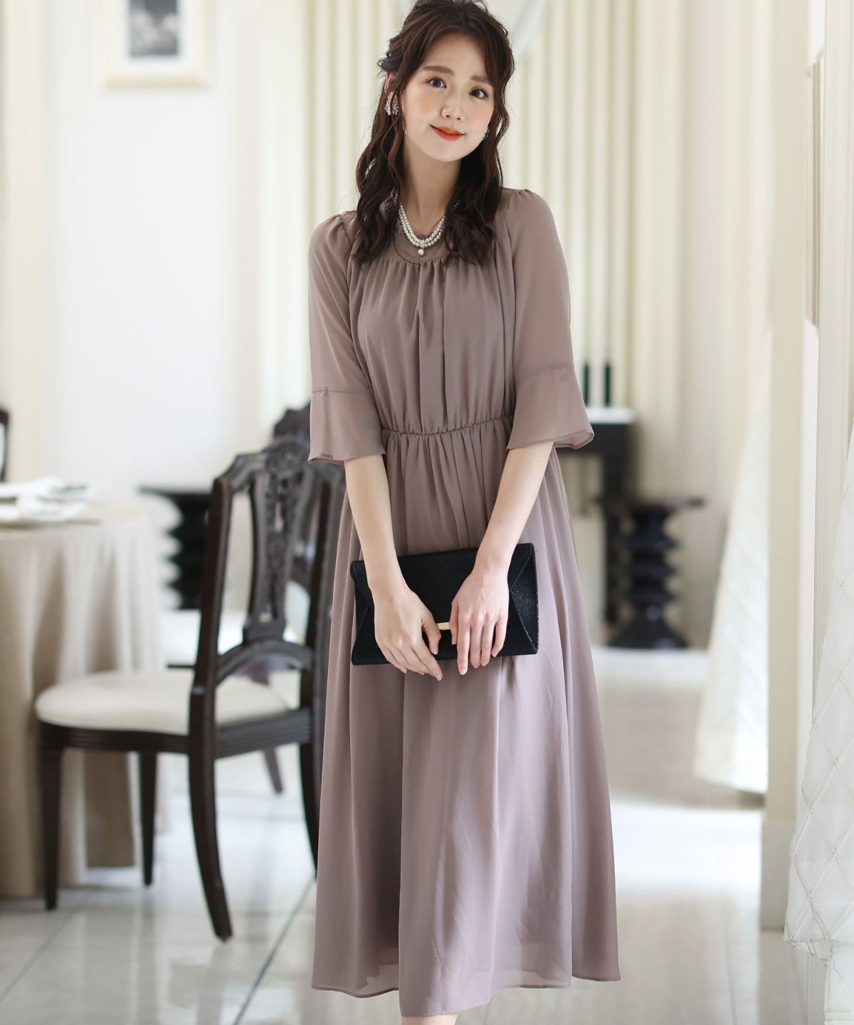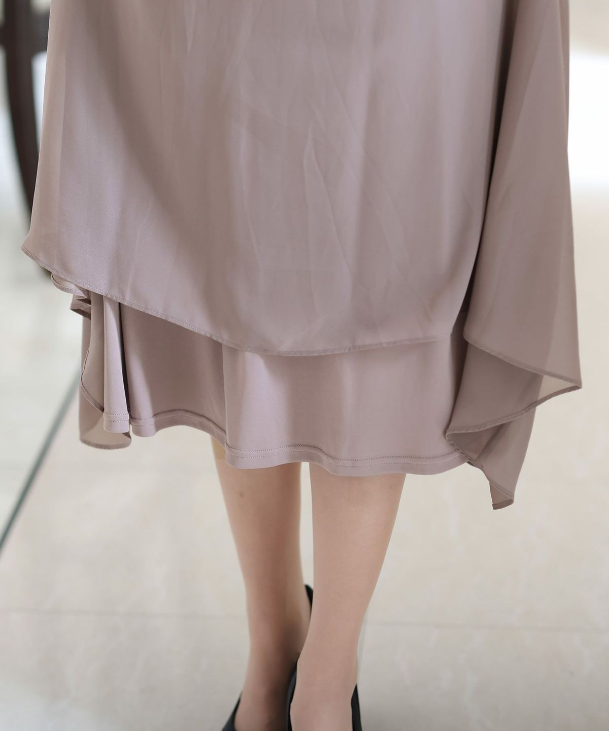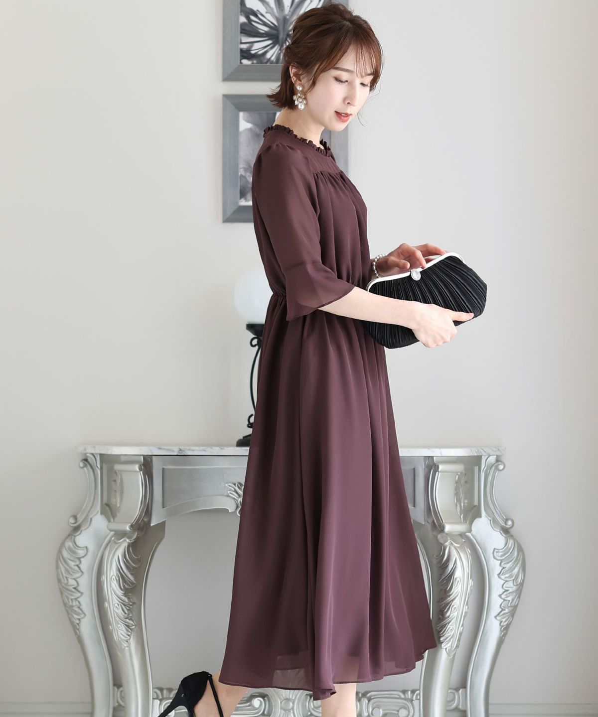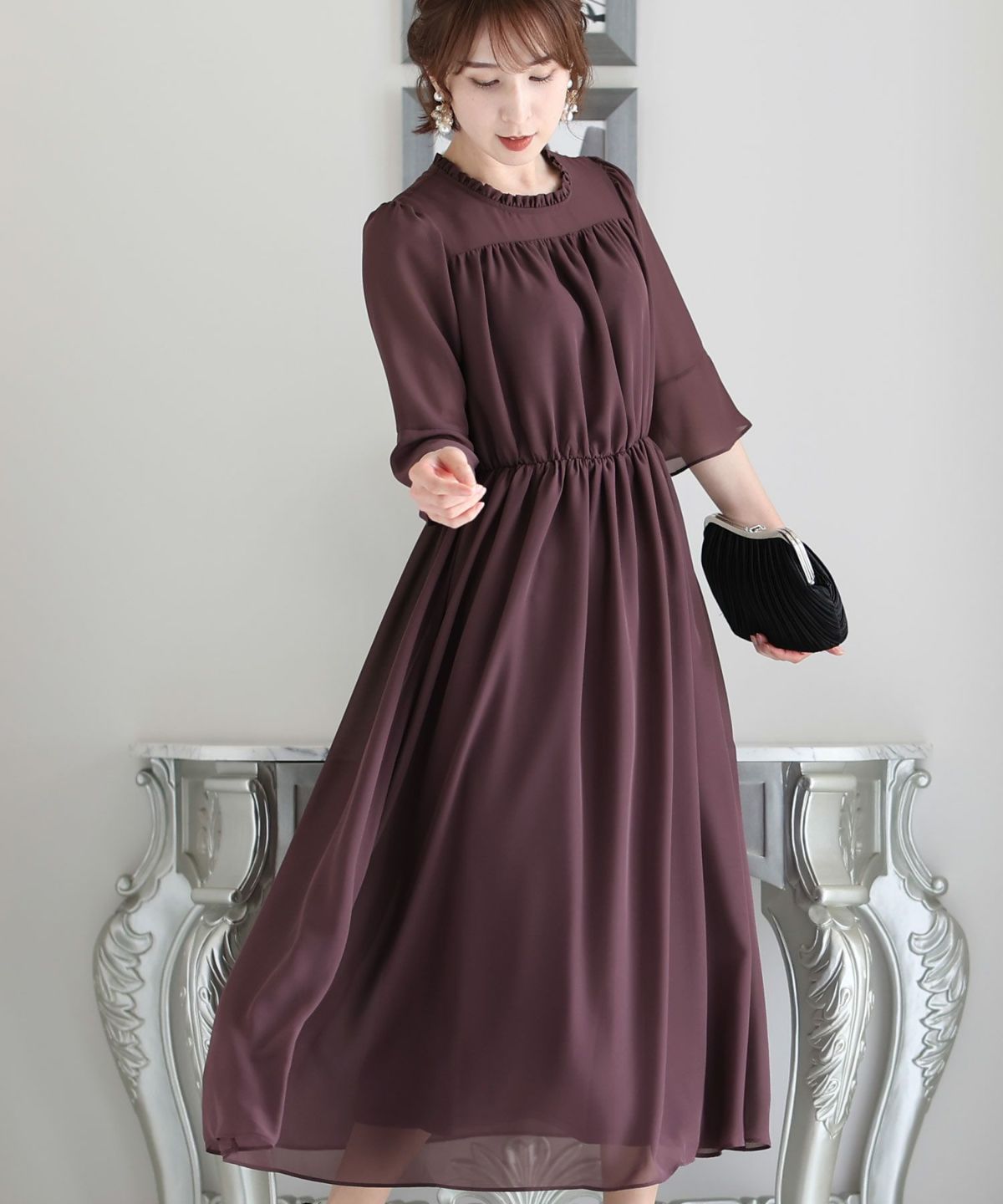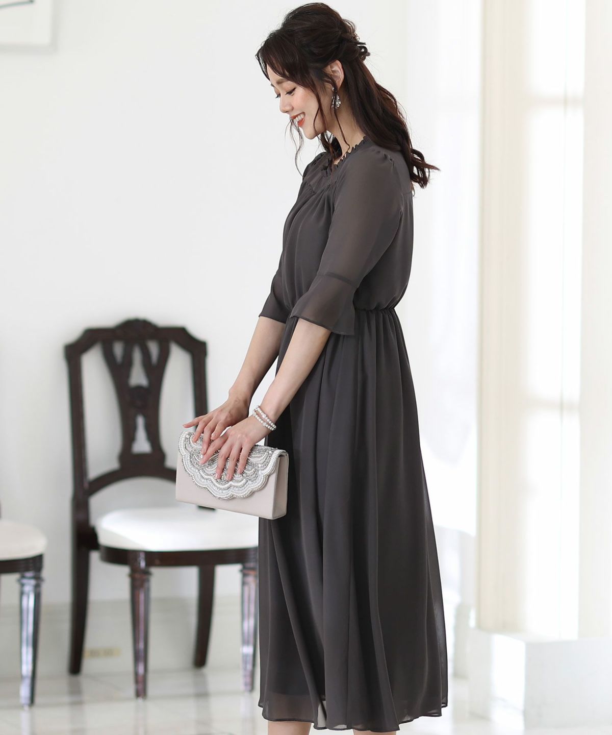 ■ベルスリーブ×シフォンのフェミニンなワンピース袖のベルスリーブスタイルがポイントになるワンピースです。フェミニンなデザインに透け感が加わることで大人な女性の着こなしになるアイテムです。アウターや小物アイテムを合わせてデイリーでも着てい頂けます。首元と袖のフリルがポイントになりシンプルな中にデザイン性のあるワンピースです。