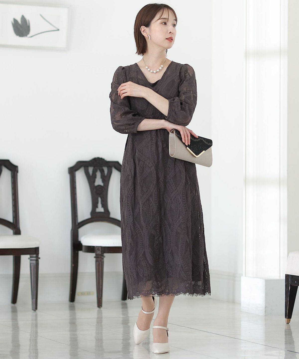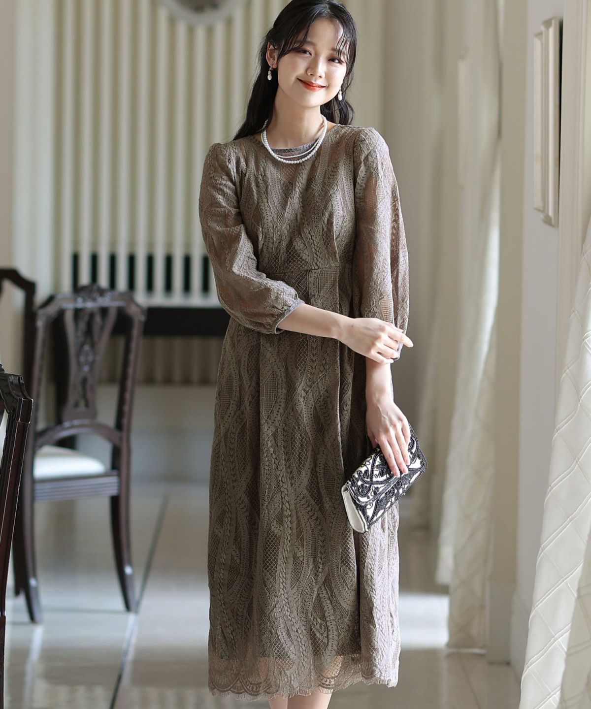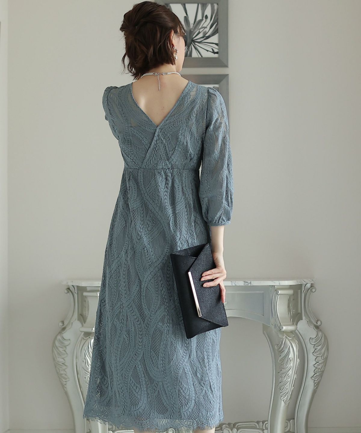 ■総レース×2WAY仕様前後ろで着れる2WAY仕様のレースワンピース。おしゃれなデザインと程よい透け感の総レースが美しいです。後ろのネックラインがカシュクール風になっており、フェミニンで大人っぽさが出ます。女子会やパーティーなど様々なシーンでお使いいただけます。