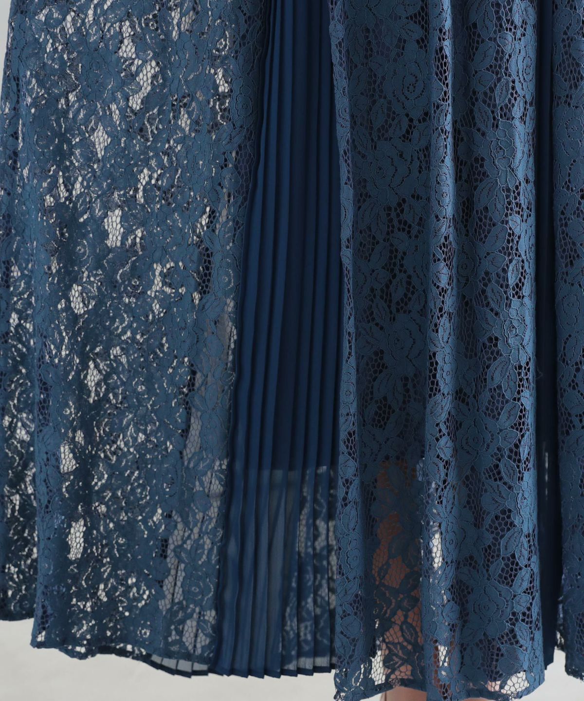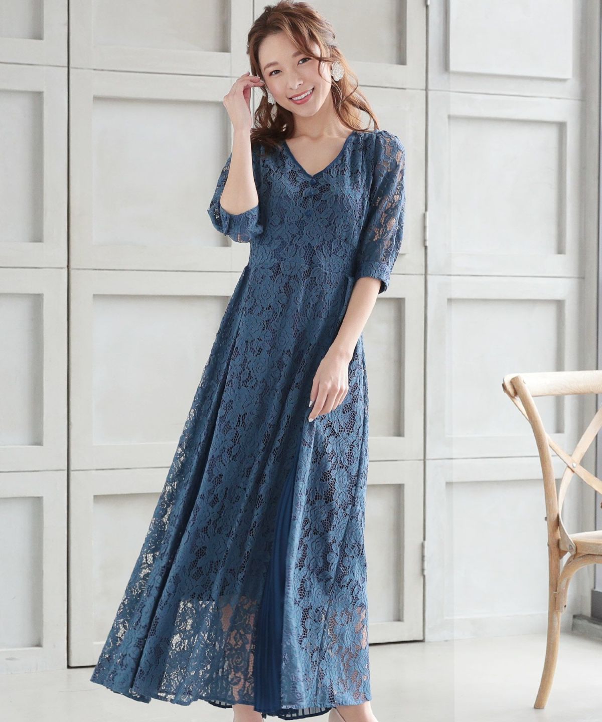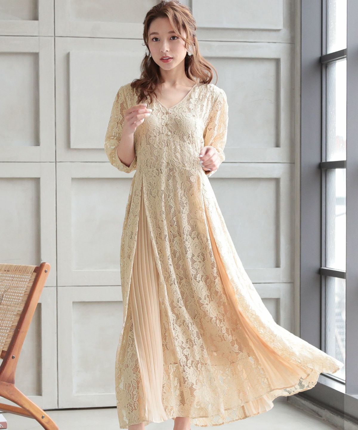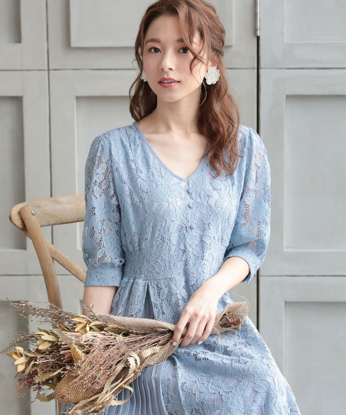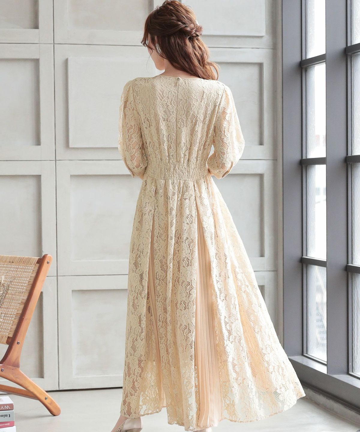 花咲くレースが可愛らしい レース&プリーツフラワードレス