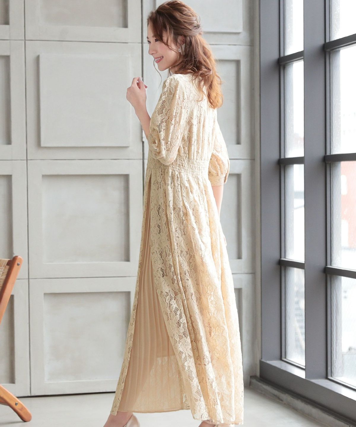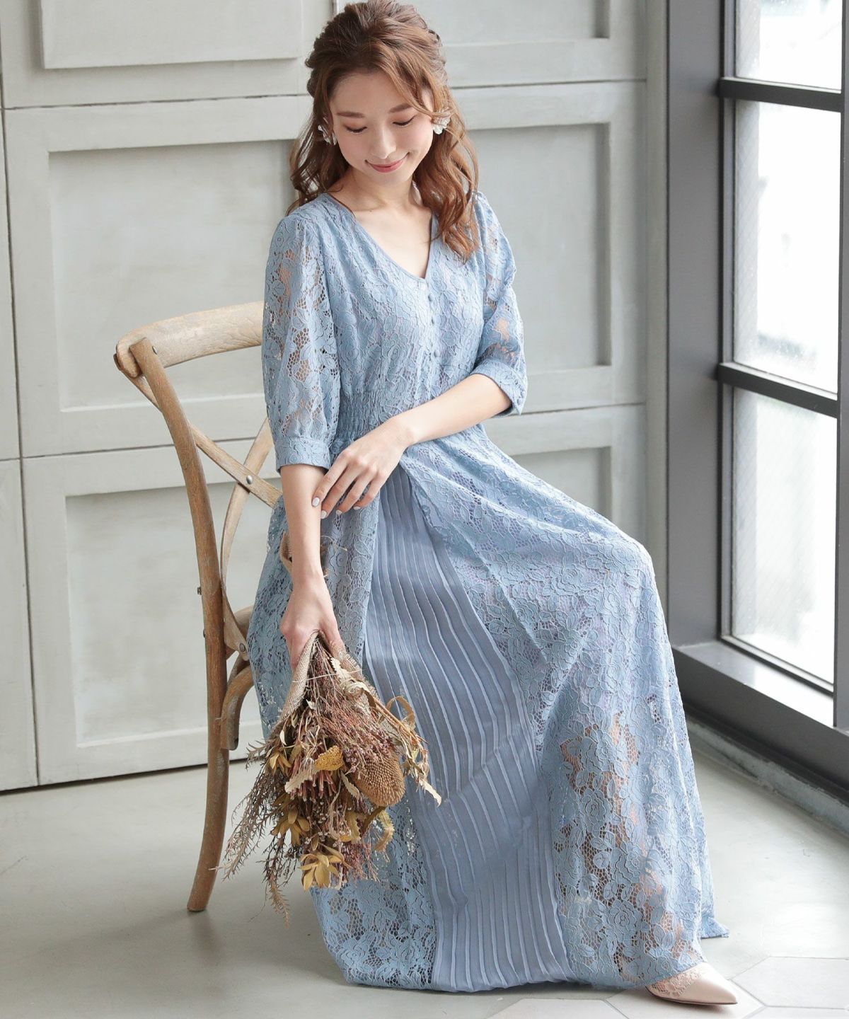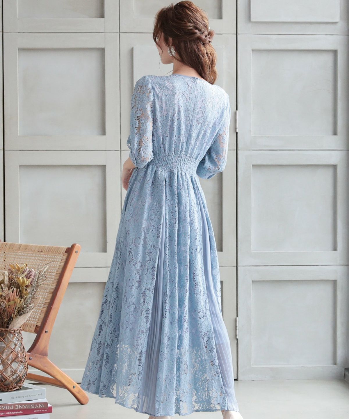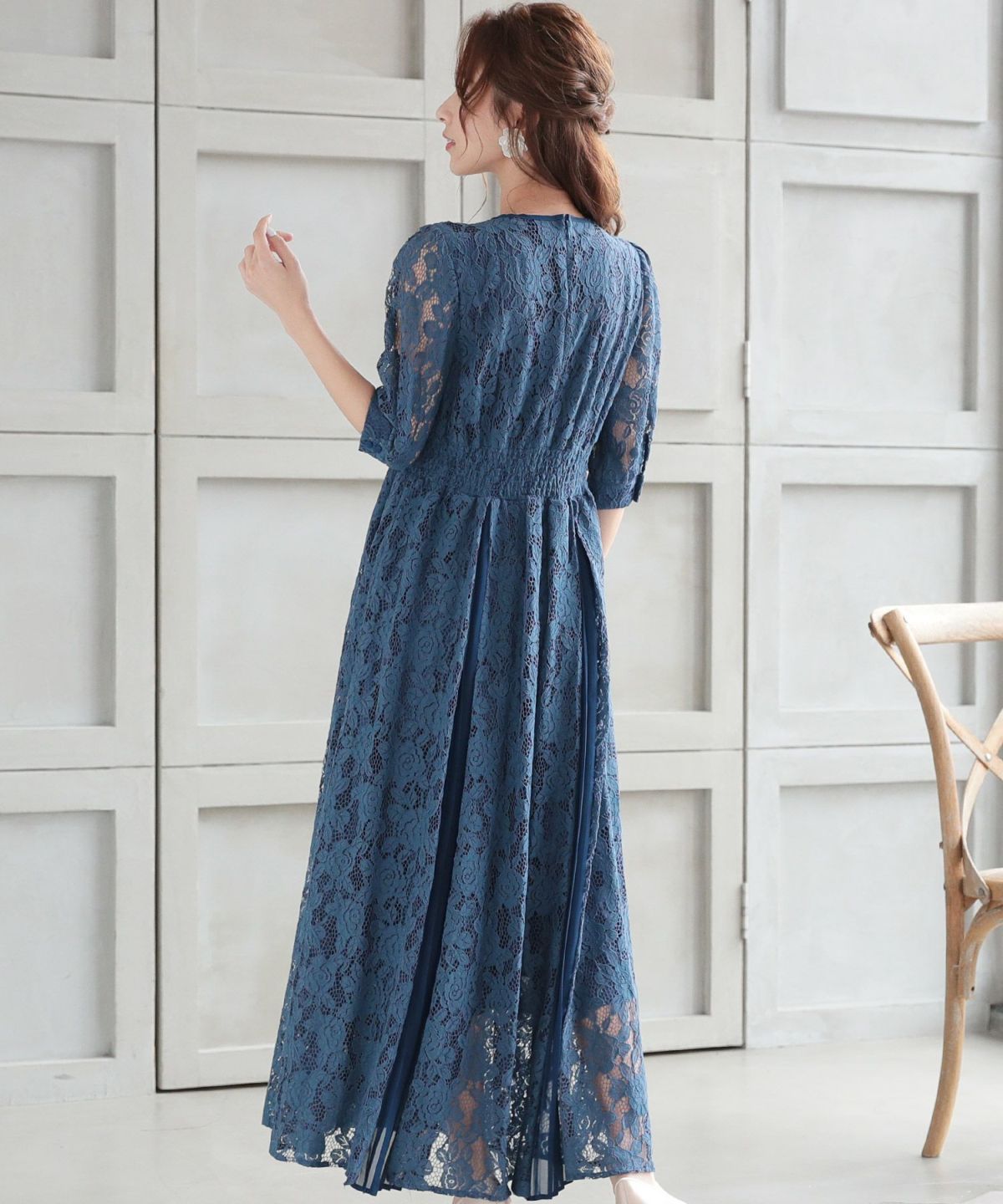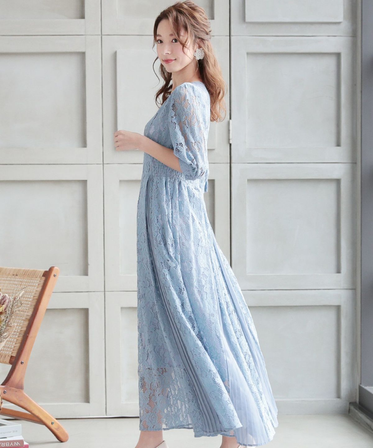 花咲くレースが可愛らしい レース&プリーツフラワードレス