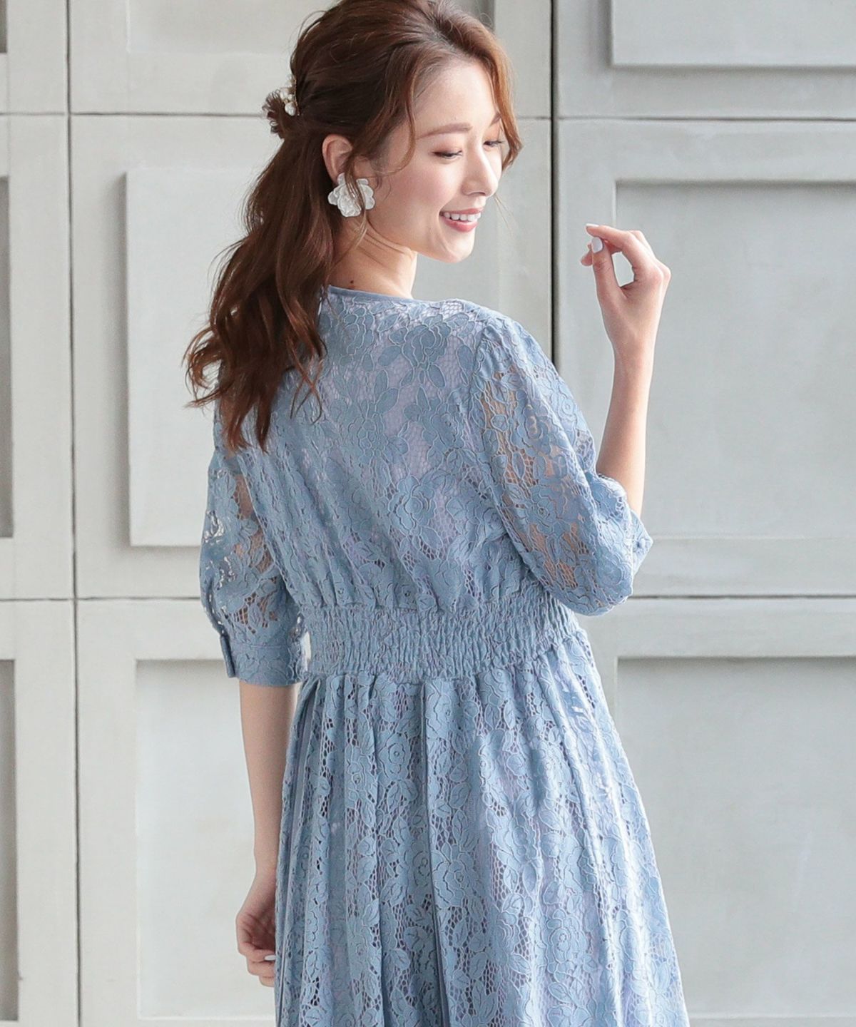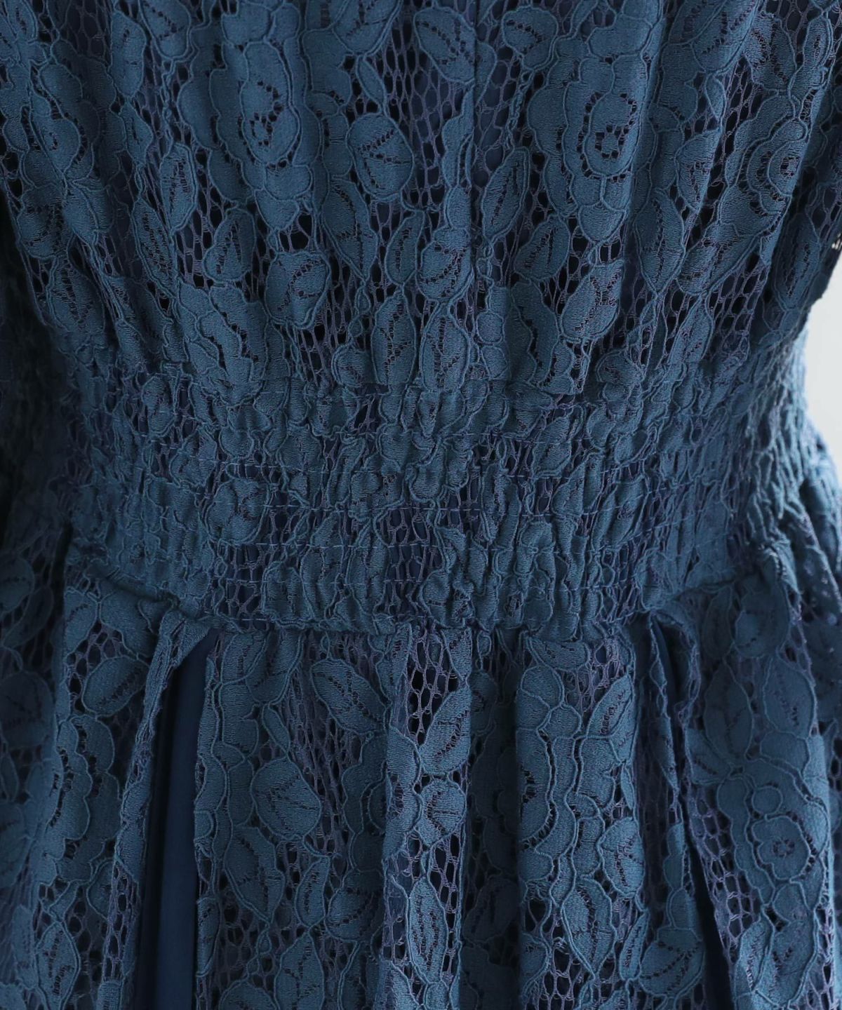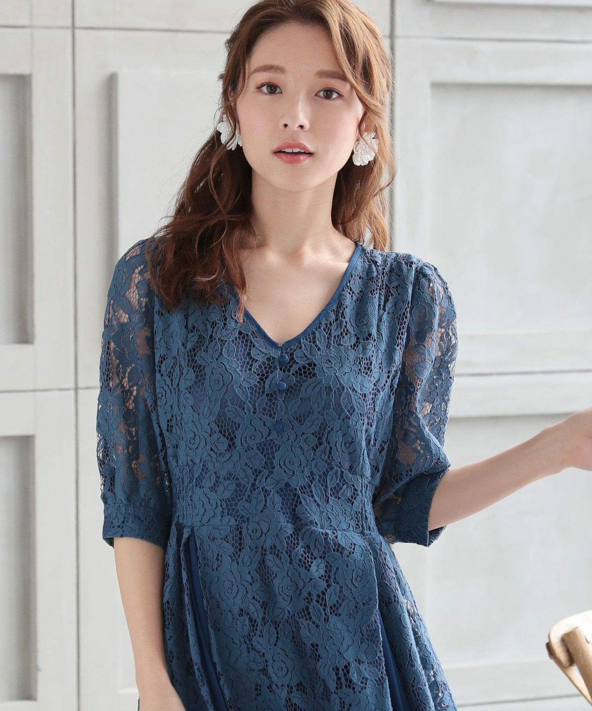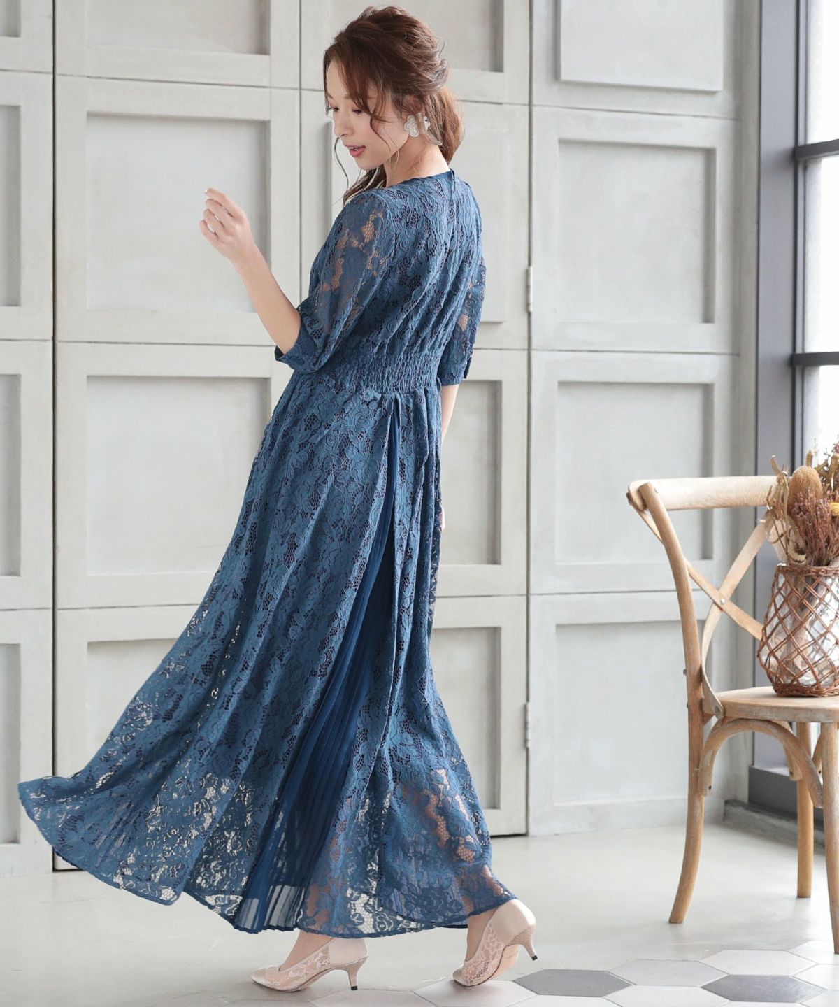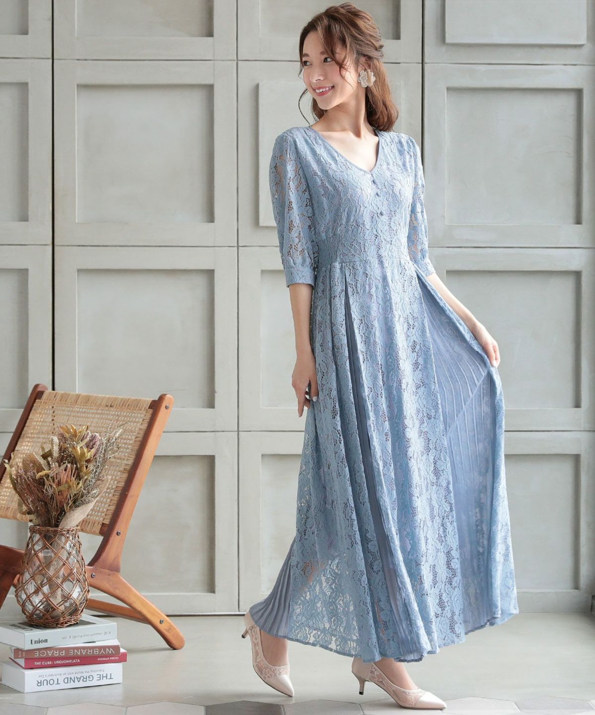 花咲くレースが可愛らしい レース&プリーツフラワードレス