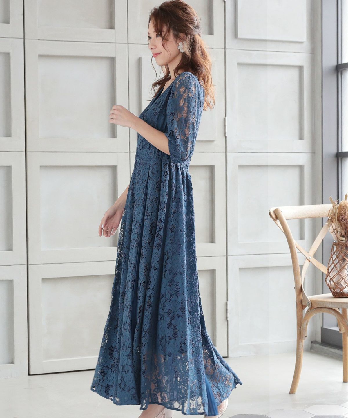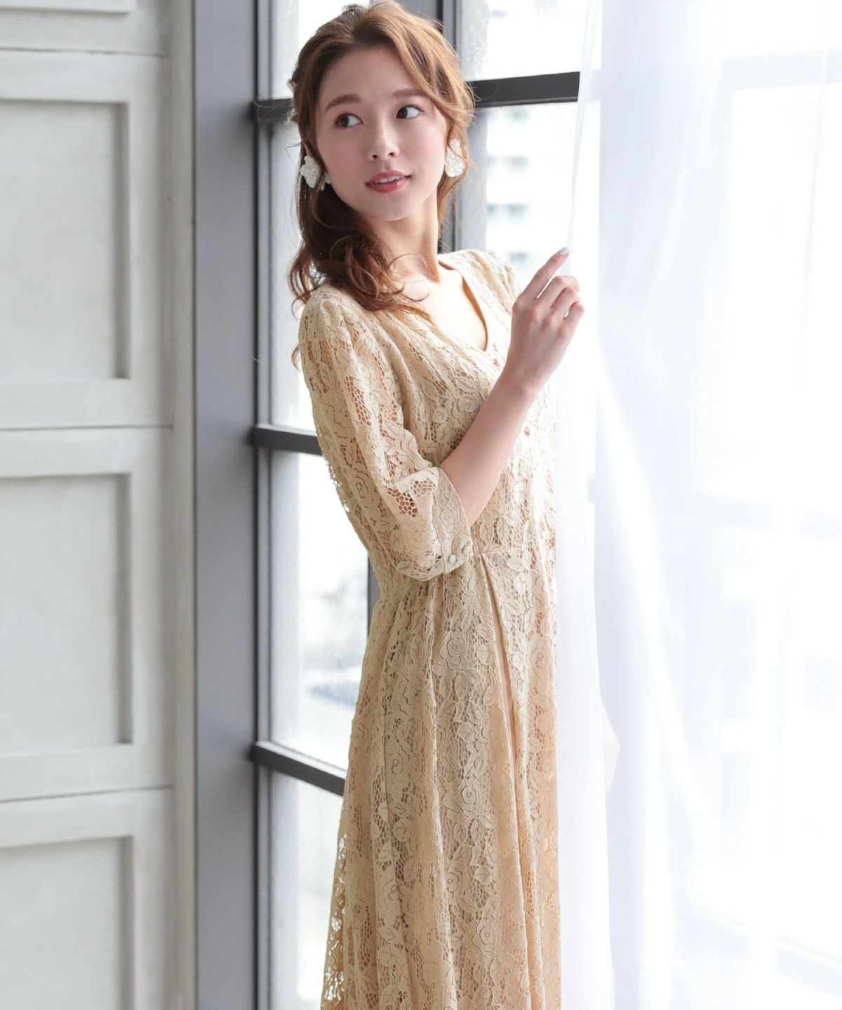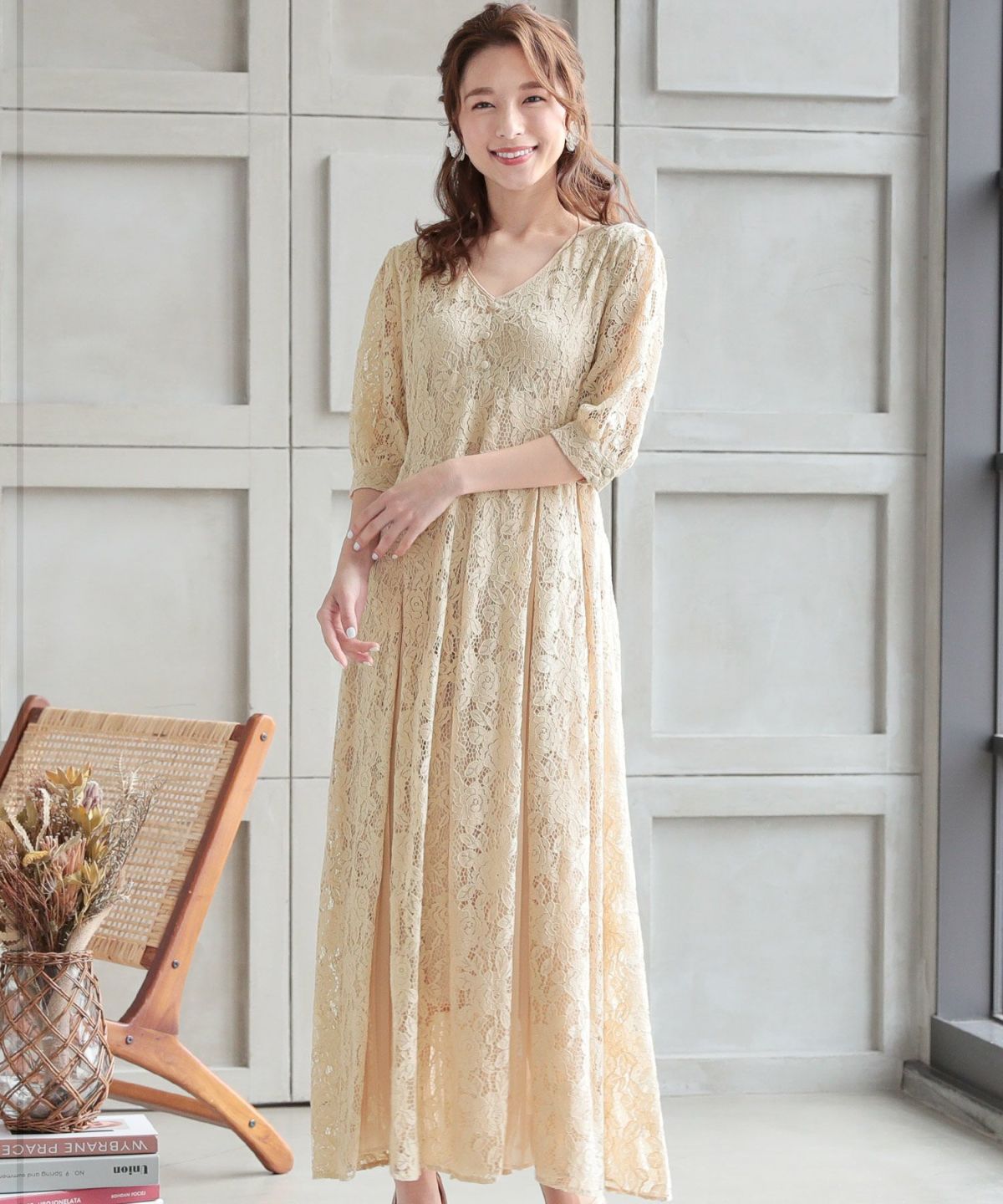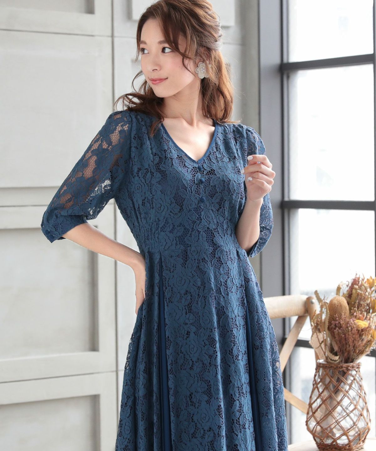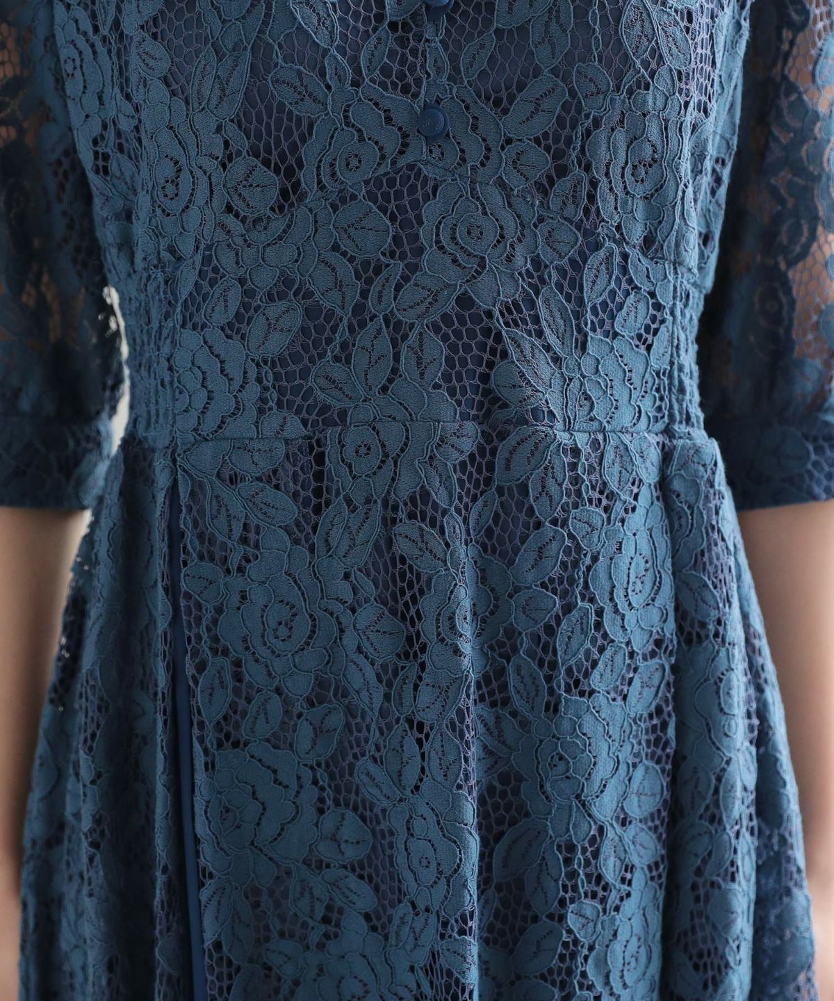 花咲くレースが可愛らしい レース&プリーツフラワードレス