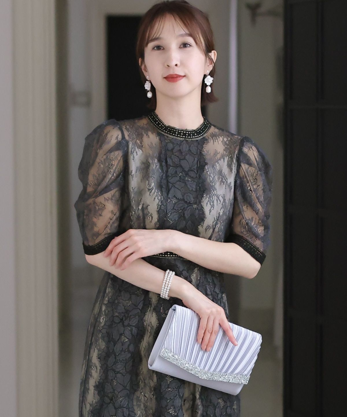■レース×ハシゴレース2種類のレースの組み合わせが可愛い配色レースのワンピース。アンティーク風のデザインがおしゃれなアイテムです。デコルテ~袖の程よい透け感が大人可愛い印象に。オケージョンシーンはもちろん特別なデートやお食事会などにもおすすめです。