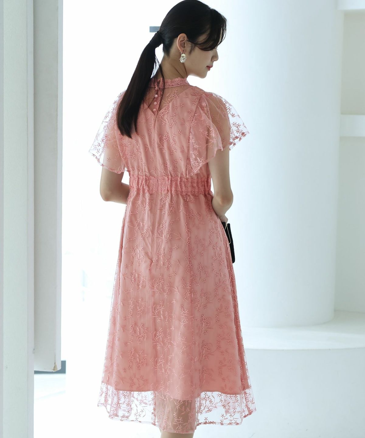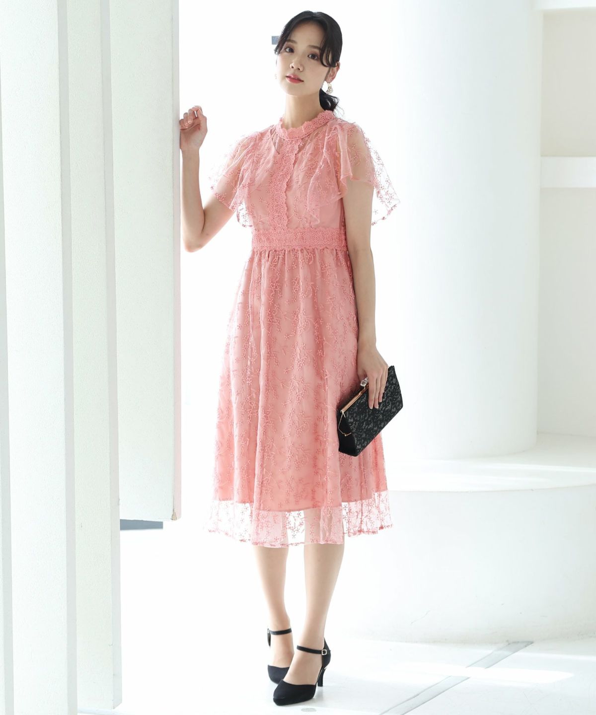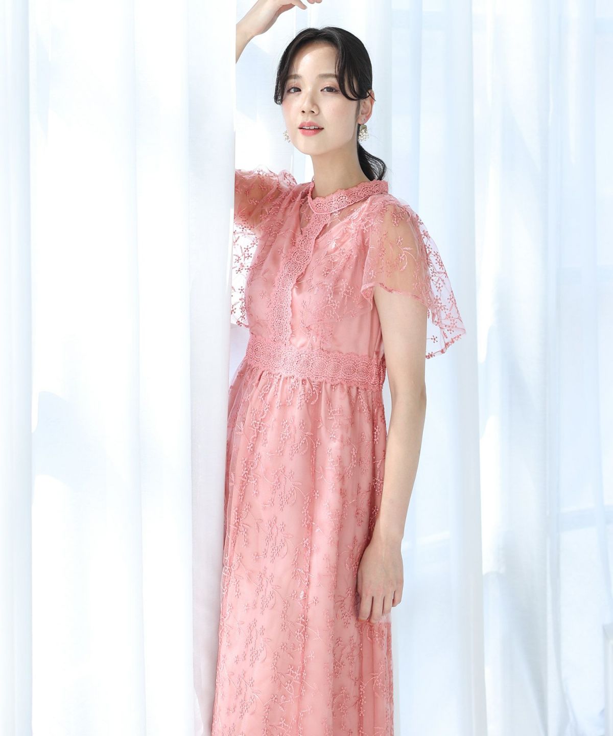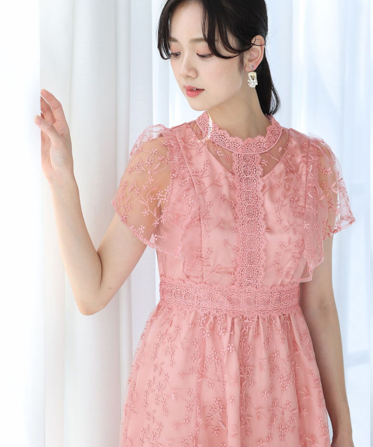 ■レース×刺繍光沢感のある刺繍が華やかな総レースワンピースです。スカラップレースのハイネックや程よい透け感がおしゃれ。甘めなデザインですが適度な肌見せで大人っぽい印象に。オケージョンはもちろん、女子会やお食事会にもおすすめです。