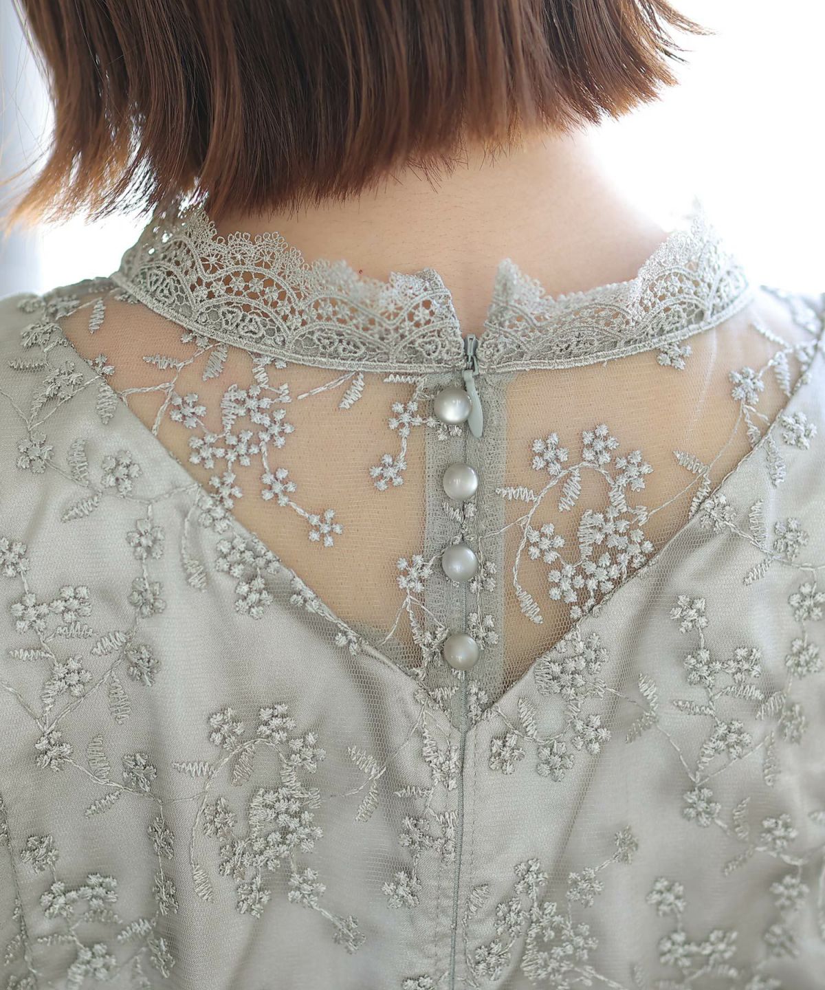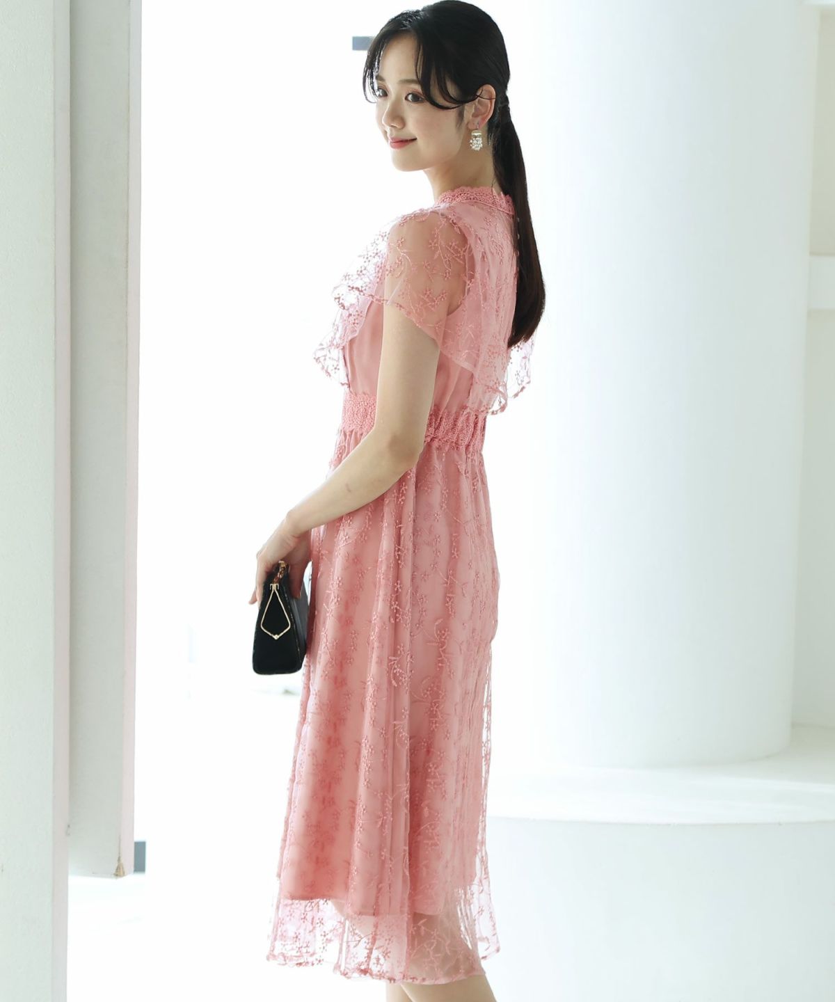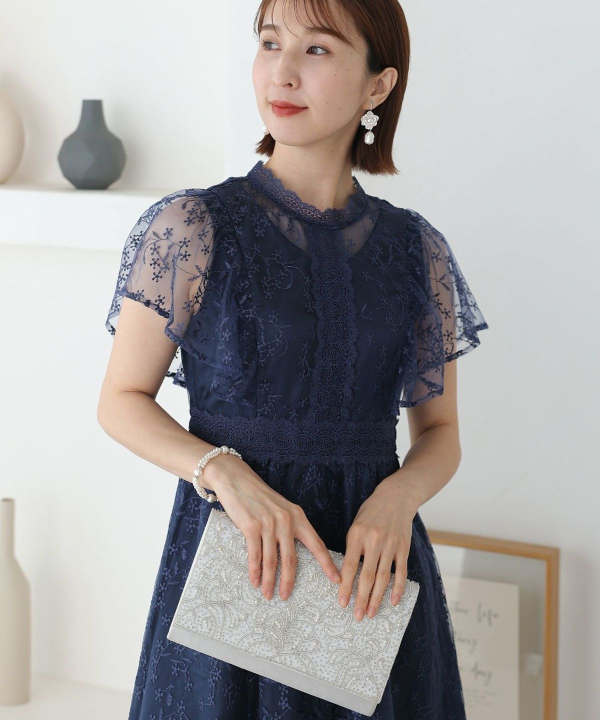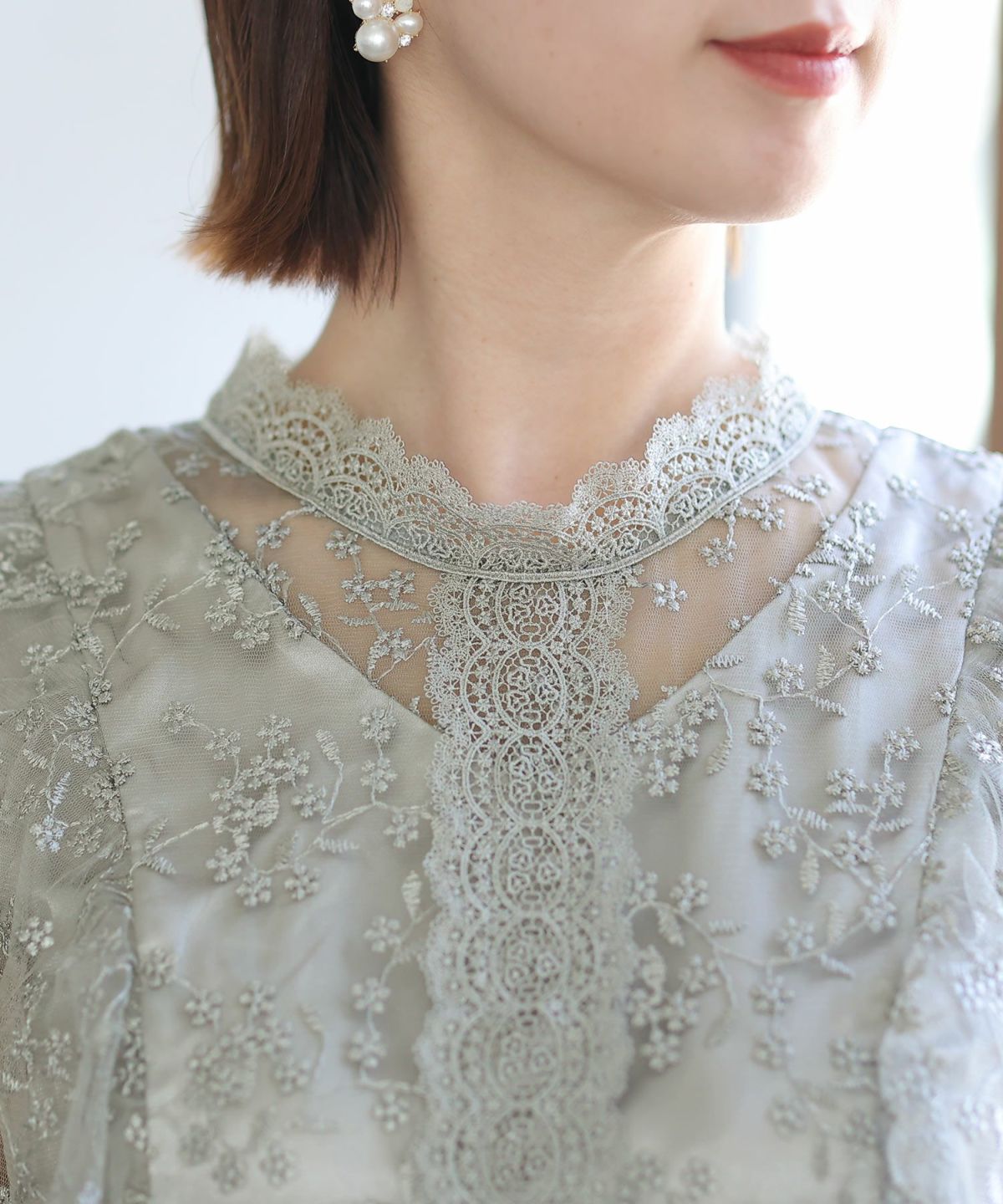 ■レース×刺繍光沢感のある刺繍が華やかな総レースワンピースです。スカラップレースのハイネックや程よい透け感がおしゃれ。甘めなデザインですが適度な肌見せで大人っぽい印象に。オケージョンはもちろん、女子会やお食事会にもおすすめです。