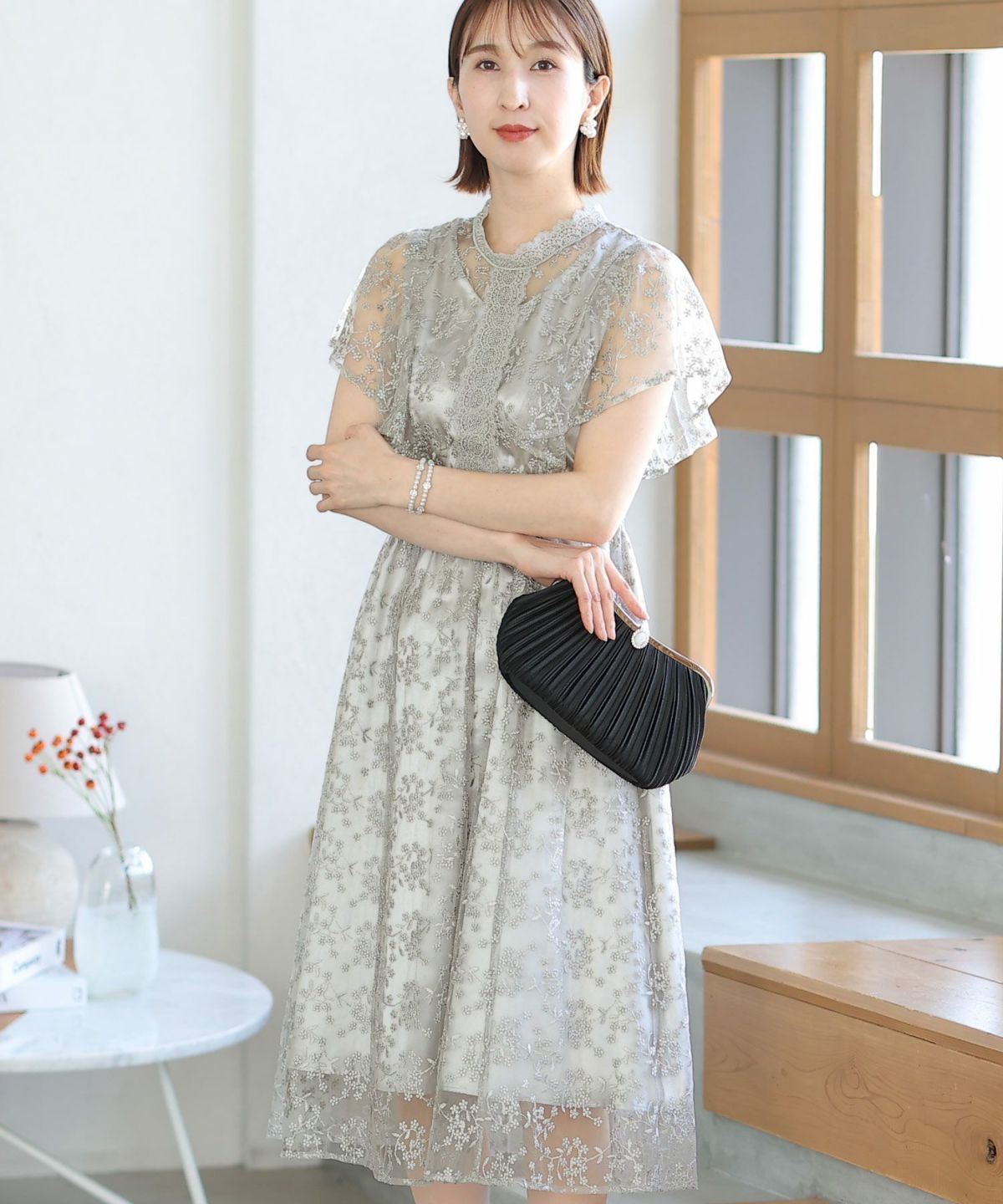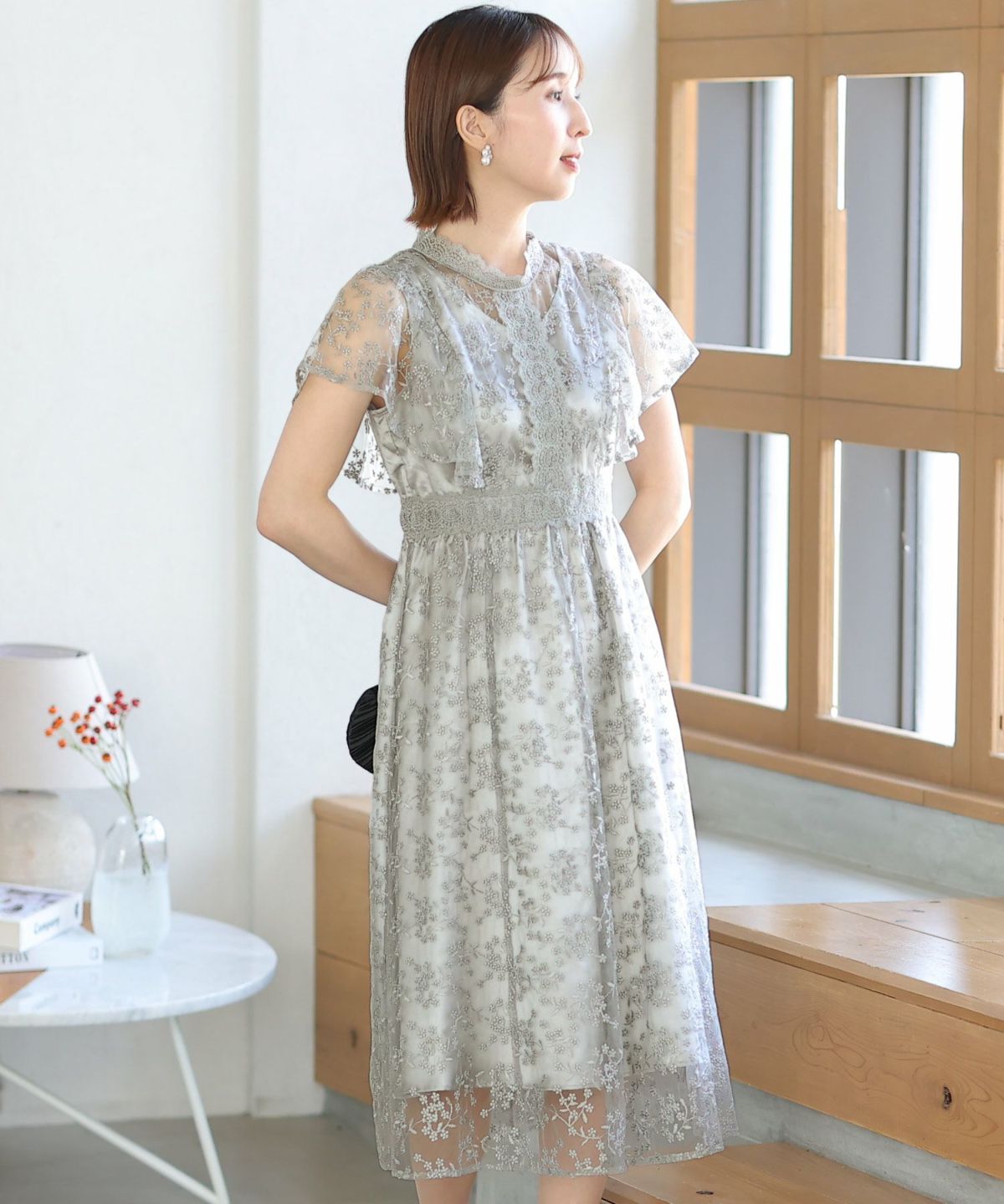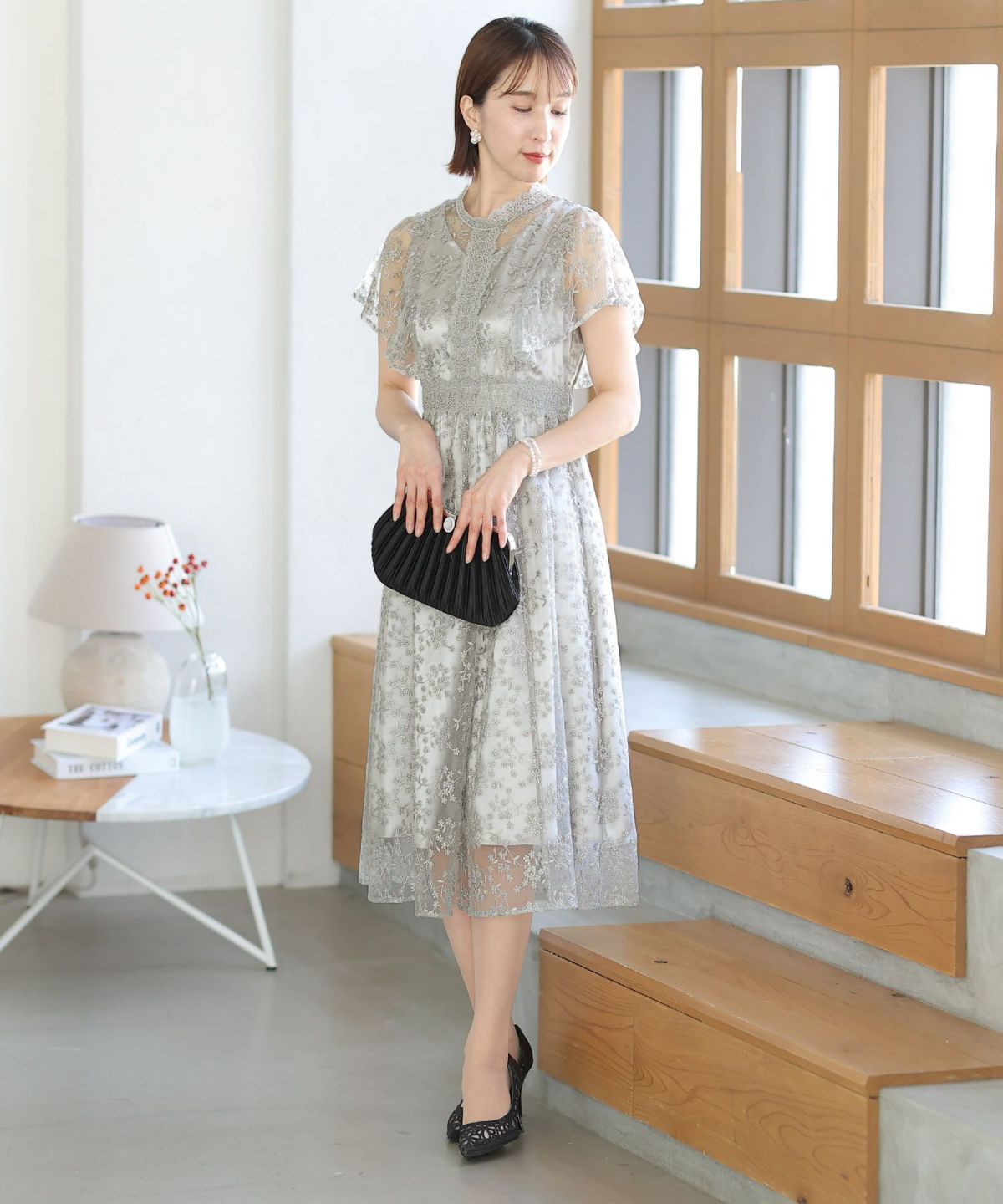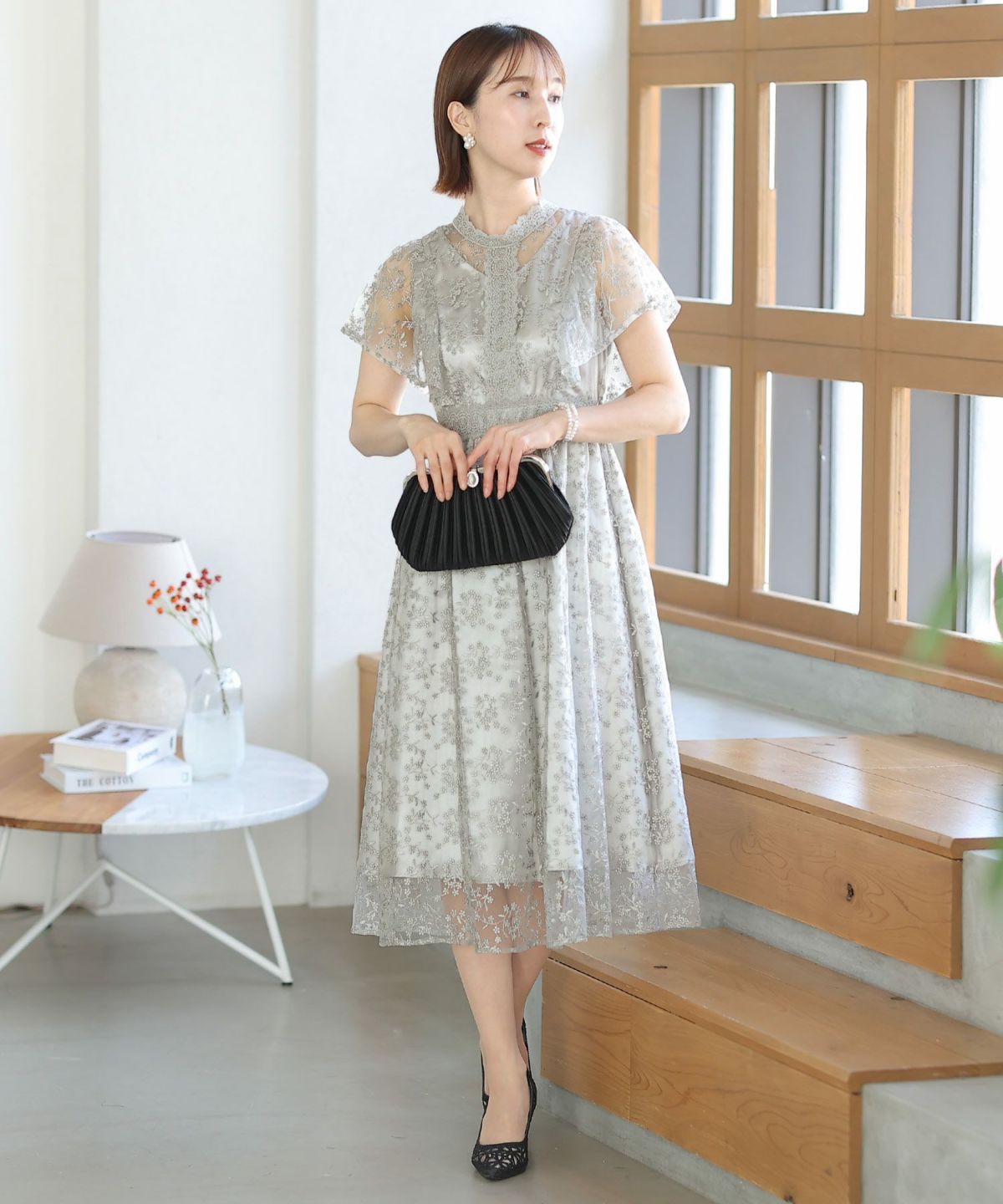 ■ハリのあるレース生地でエレガントな雰囲気にスカートの広がり方も上品で大人女性にぴったりのワンピースです。