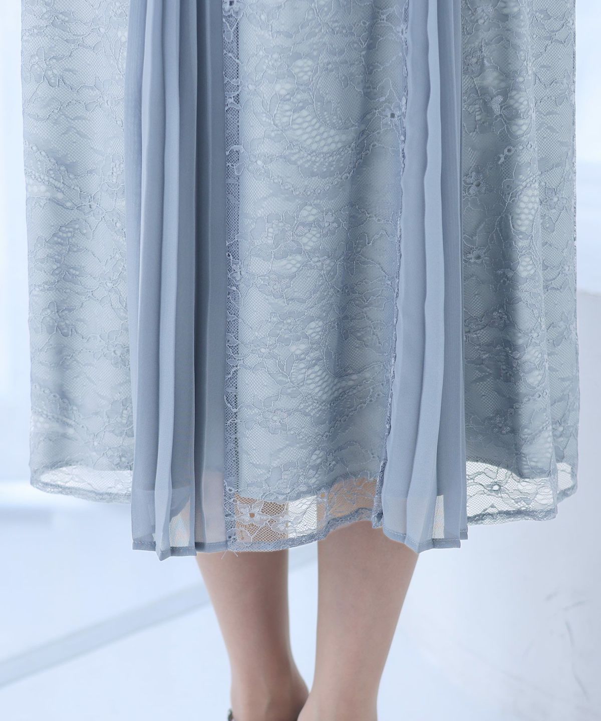 ■ストレスフリーな軽い着心地レースとプリーツが華やかなスカートは揺れ感もきれいで、女性らしさをプラスしてくれます。