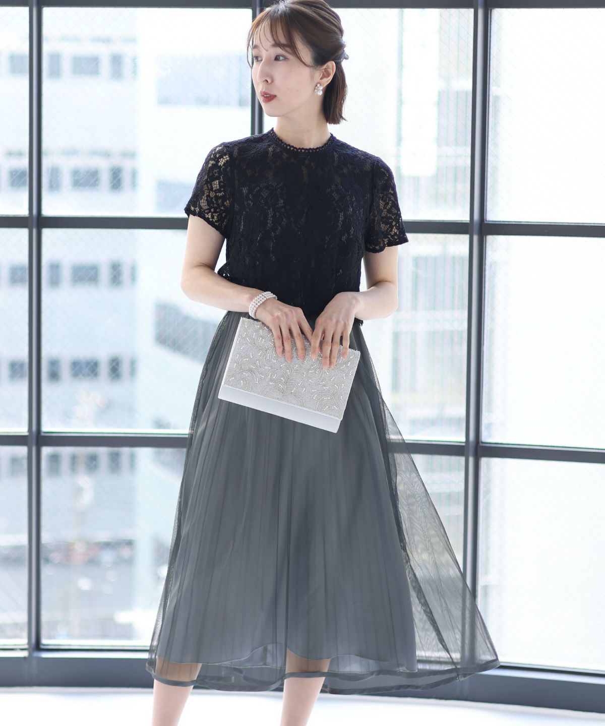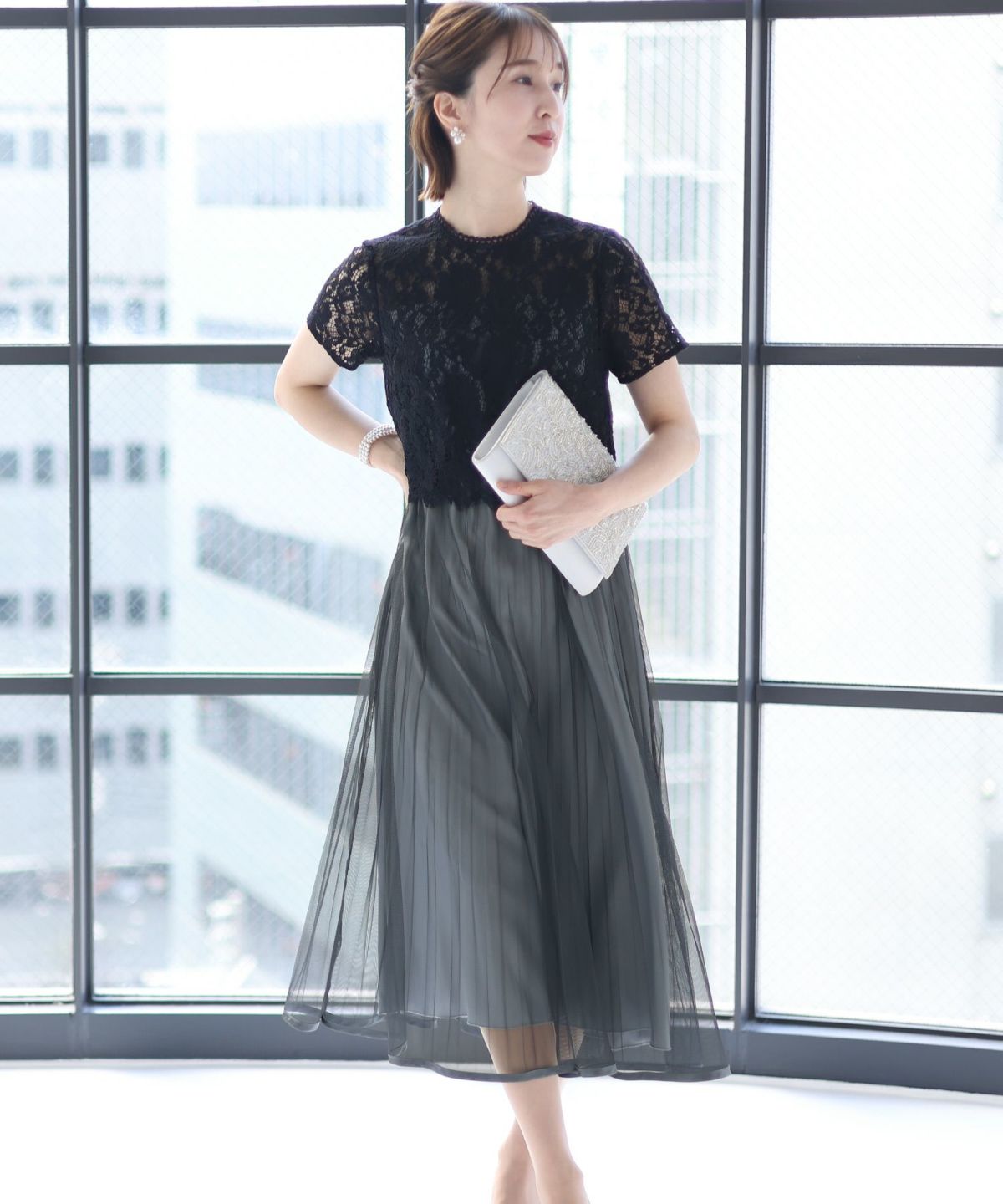 ■レース×チュールレースとチュールの切り替えが可愛いワンピースです。袖やデコルテの程よい透け感で上品な印象に。落ち着いたカラーのチュールスカートは甘すぎず大人女性にぴったり。オケージョンシーンや特別なお食事会にもおすすめ。