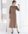 ■光沢感のあるサテン生地が上品な印象に裾に少し広がりのあるワンピースなので、歩くと揺れ感がきれいで華やかさをプラスします。